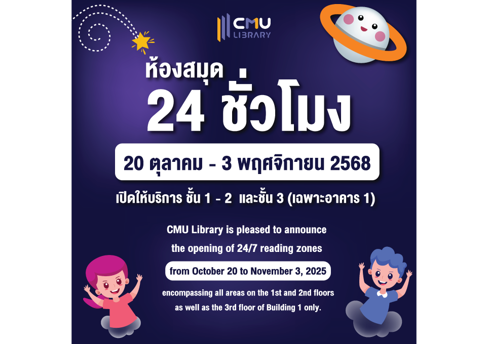 สำนักหอสมุดเปิดให้บริการพื้นที่นั่งอ่านหนังสือ 24 ชั่วโมง ระหว่างวันที่ 20 ตุลาคม - 3 พฤศจิกายน 2568