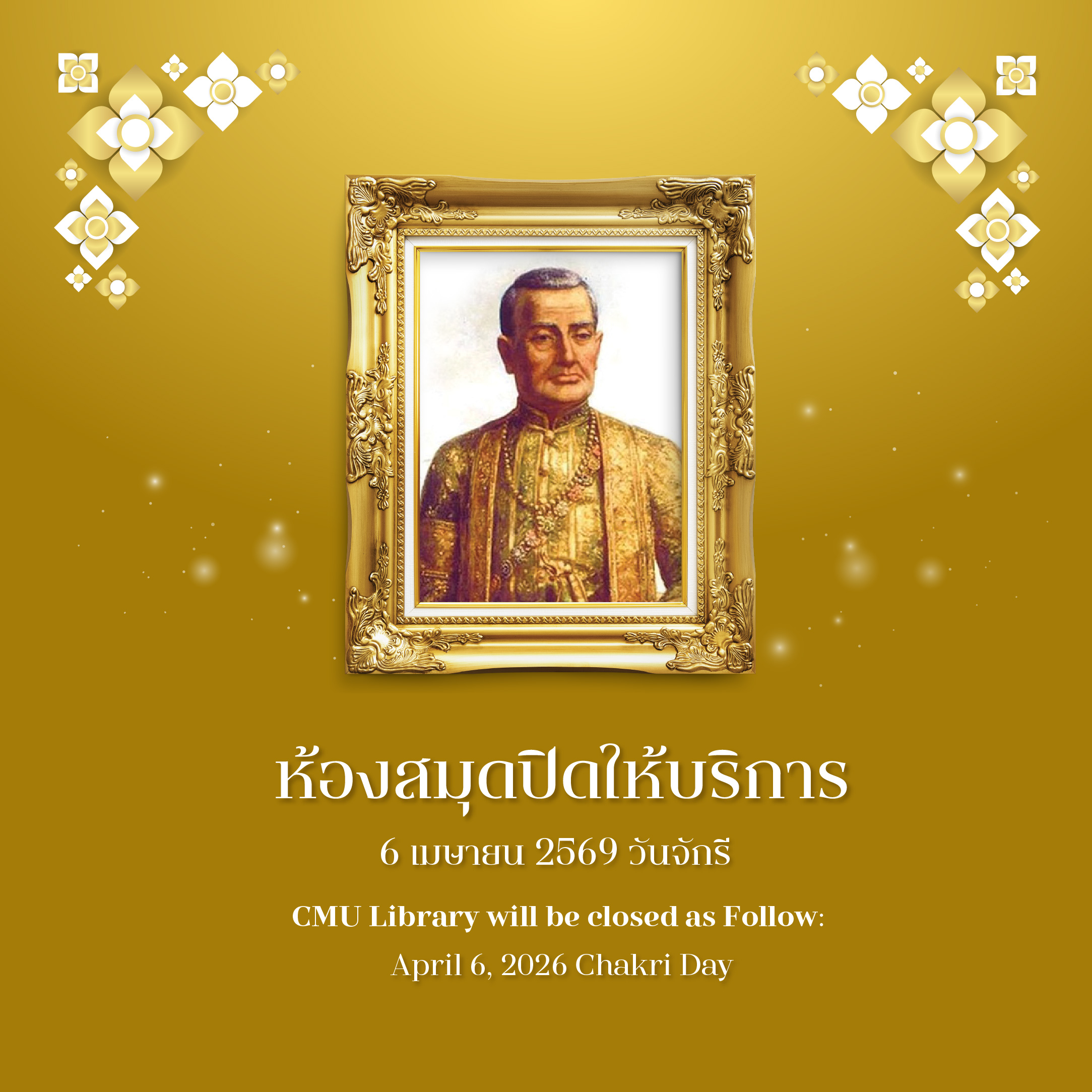 ห้องสมุดปิดบริการ ในวันจันทร์ที่ 6 เมษายน 2569 เนื่องในวันจักรี