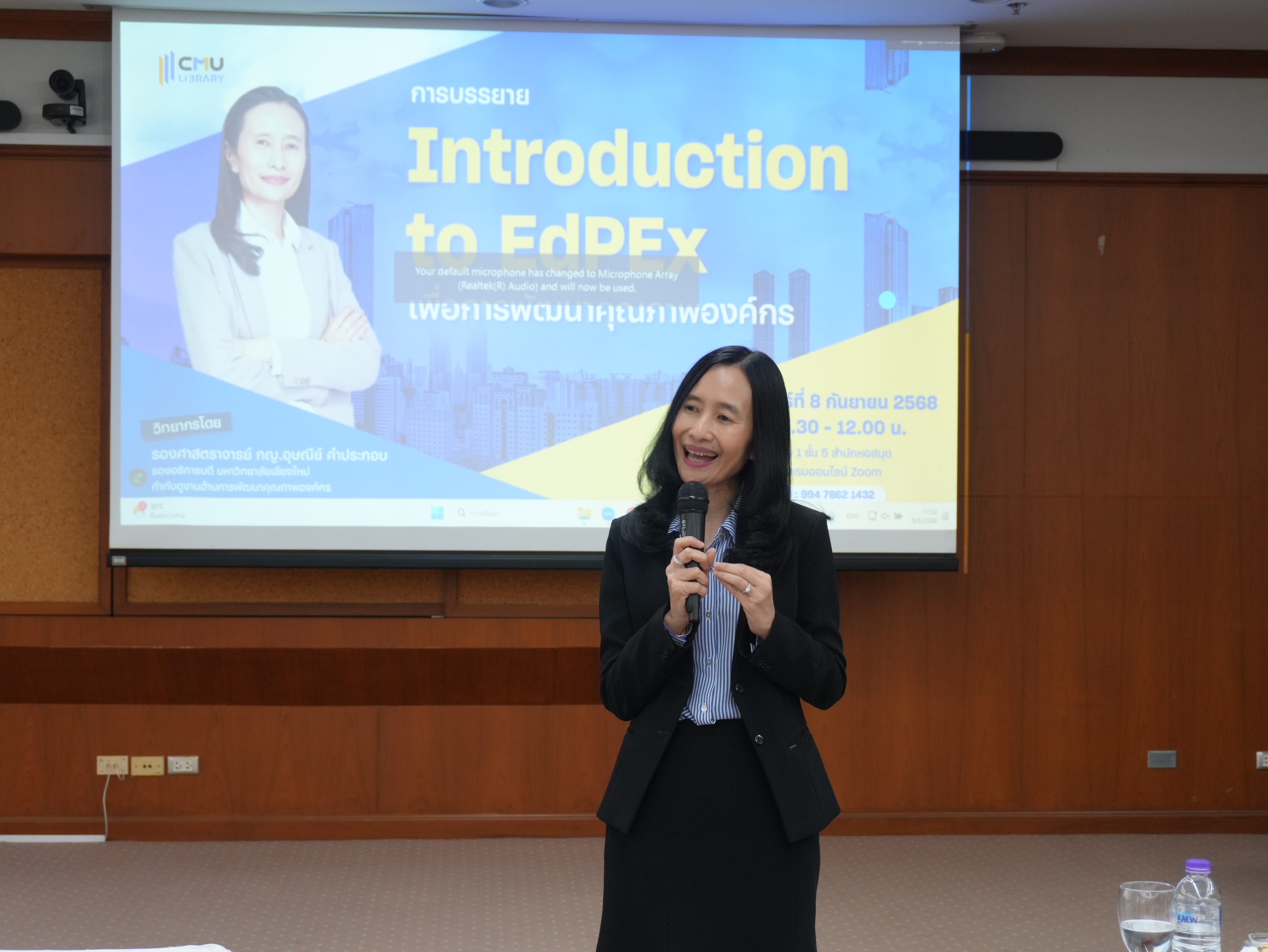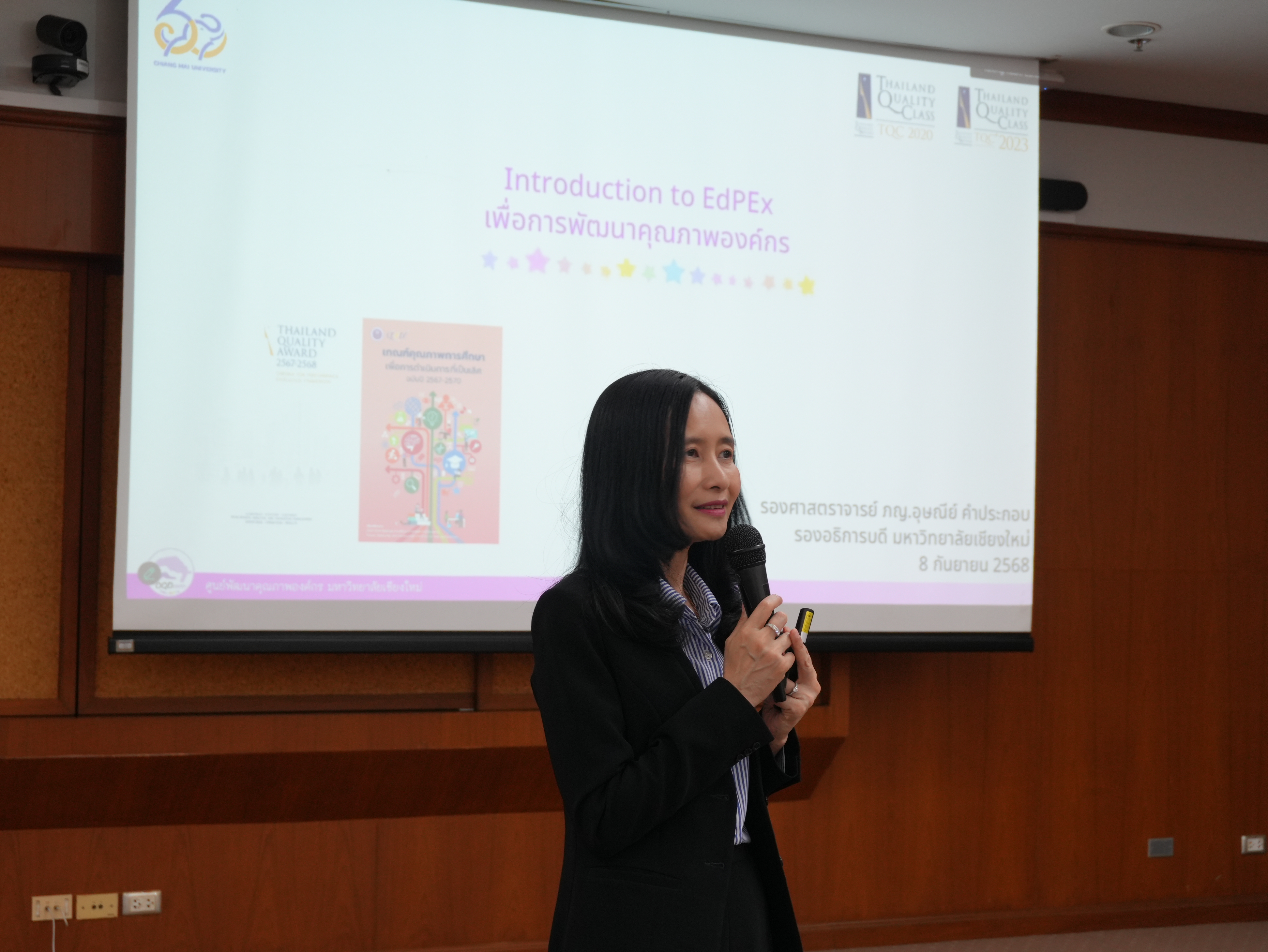 นายปราชญ์ สงวนศักดิ์ ผู้อำนวยการสำนักหอสมุด กล่าวเปิดการบรรยาย “Introduction to EdPEx เพื่อการพัฒนาคุณภาพองค์กร” โดยมี รองศาสตราจารย์ เภสัชกรหญิง อุษณีย์ คำประกอบ รองอธิการบดี มหาวิทยาลัยเชียงใหม่ กำกับดูงานด้านการพัฒนาคุณภาพองค์กร เป็นวิทยากร เพื่อให้ผู้บริหารและบุคลากรสำนักหอสมุดได้รับความรู้และมีความเข้าใจเกี่ยวกับเกณฑ์คุณภาพการศึกษา เพื่อการดำเนินการที่เป็นเลิศ (EdPEx) สามารถเชื่อมโยงและนำเกณฑ์คุณภาพ EdPEX เป็นเครื่องมือในการบริหารจัดการองค์กร นำสู่การปฏิบัติได้อย่างเป็นระบบ ณ ห้องประชุม 1 ชั้น 5 สำนักหอสมุด และผ่านโปรแกรมออนไลน์ Zoom เมื่อวันที่ 8 กันยายน พ.ศ. 2568