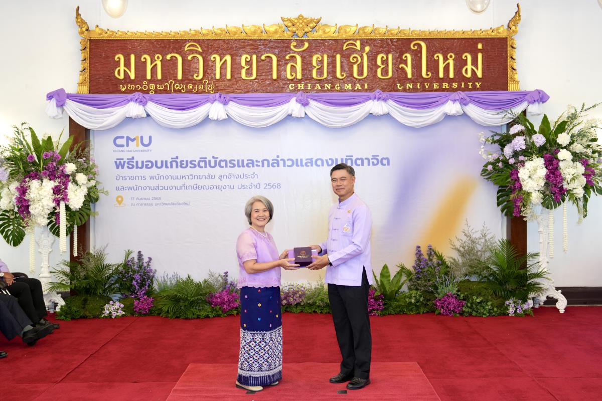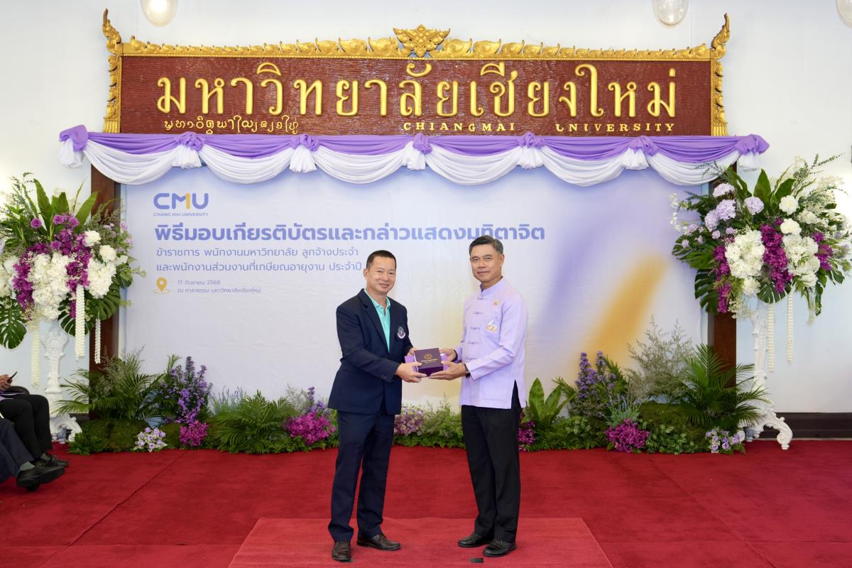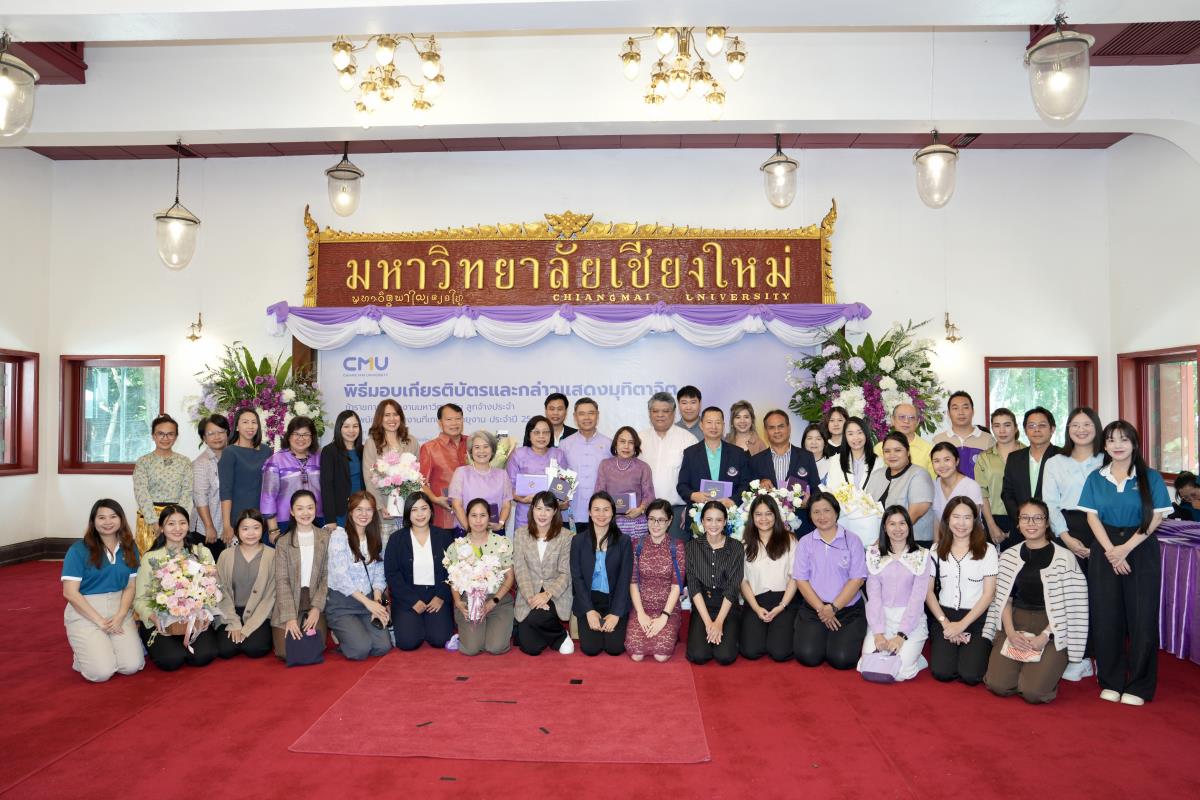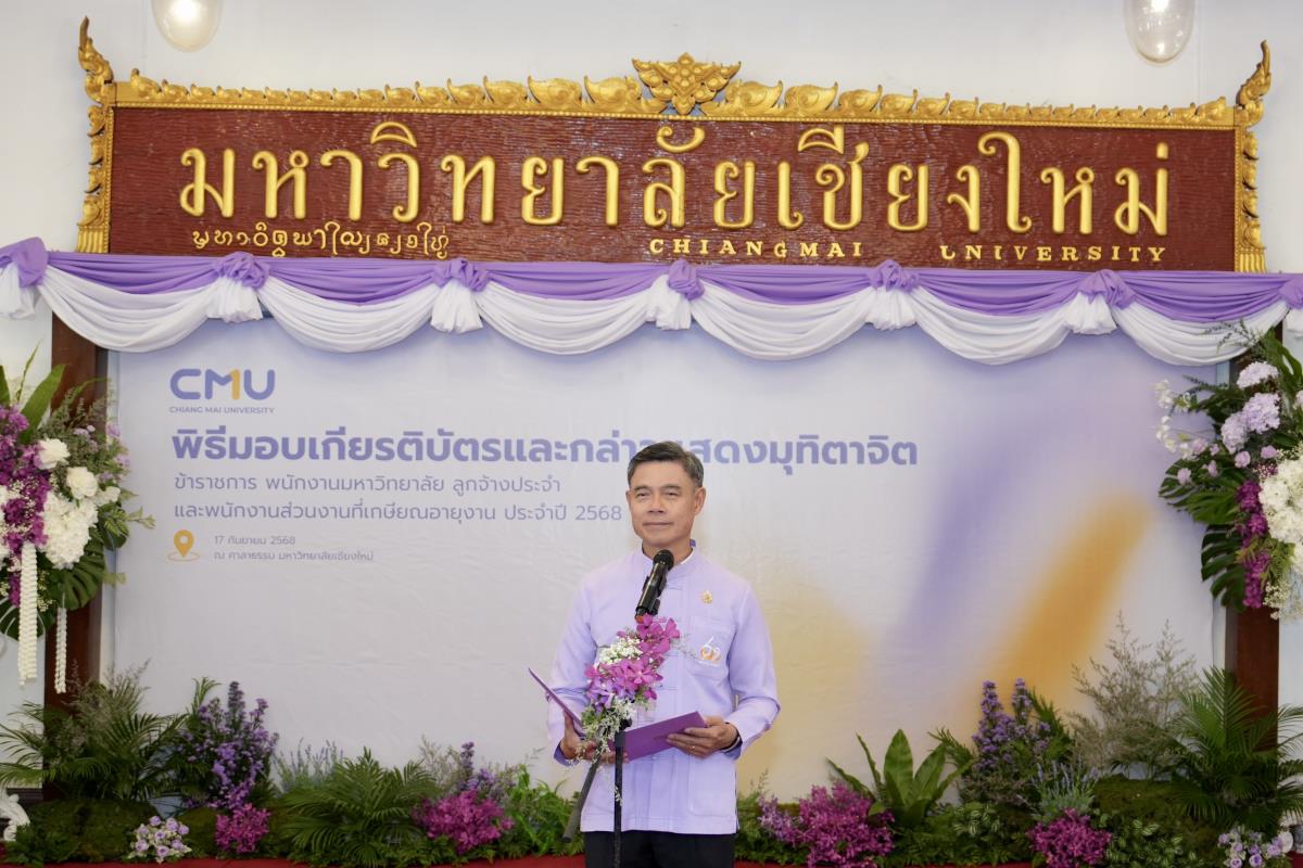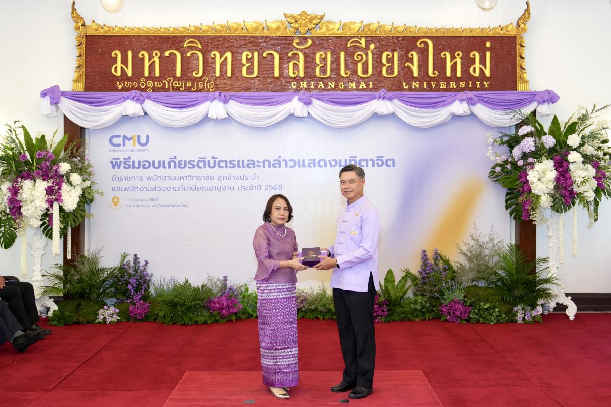 นายปราชญ์ สงวนศักดิ์ ผู้อำนวยการสำนักหอสมุด คณะผู้บริหาร พร้อมบุคลากรสำนักหอสมุด ร่วมงานพิธีมุทิตาจิตแก่ข้าราชการ พนักงานมหาวิทยาลัยและลูกจ้างประจำที่เกษียณอายุงานประจำปี 2568 ของมหาวิทยาลัยเชียงใหม่ โดยมี ศาสตราจารย์ ดร.นพ.พงษ์รักษ์ ศรีบัณฑิตมงคล อธิการบดีมหาวิทยาลัยเชียงใหม่ เป็นประธานในพิธีฯ เพื่อเชิดชูเกียรติ และระลึกถึงคุณงามความดี ที่ได้อุทิศตนปฏิบัติหน้าที่ด้วยแรงกาย แรงใจ มีความมานะ อุตสาหะ พากเพียรพยายาม มุ่งมั่นสรรค์สร้างและพัฒนามหาวิทยาลัยเชียงใหม่ตลอดมา ณ ศาลาธรรม มหาวิทยาลัยเชียงใหม่ เมื่อวันที่ 17 กันยายน พ.ศ. 2568