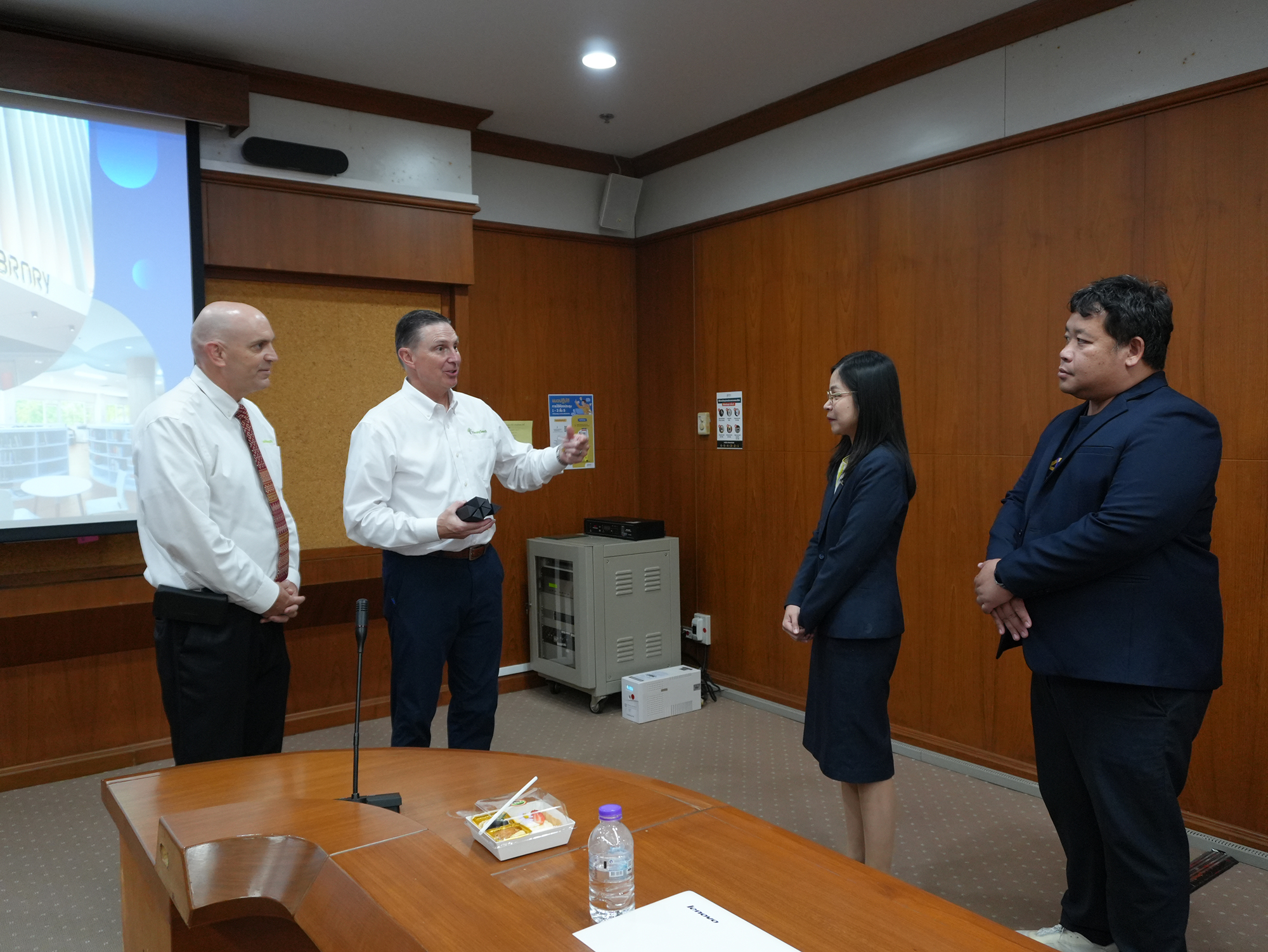 นางอรพรรณ การคนซื่อ รองผู้อำนวยการสำนักหอสมุด และนางสาวจุฑามาศ บัวเงา หัวหน้าฝ่ายสารสนเทศล้านนาและภาคเหนือ ให้การต้อนรับพร้อมให้การบรรยายความก้าวหน้าและแลกเปลี่ยนเรียนรู้ในการดำเนินโครงการความร่วมมือระหว่างสำนักหอสมุดและ FamilySearch International และการดำเนินงานด้าน ดิจิไทซ์ (Digitize) ของสำนักหอสมุด ภายใต้โครงการความร่วมมือในการ แปลงหนังสืออนุสรณ์งานศพและไมโครฟิล์มเพื่อเป็นการอนุรักษ์และสืบสานองค์ความรู้ให้เข้าถึงได้ในรูปแบบดิจิทัลต่อไป ณ ห้องประชุม 1 ชั้น 5 สำนักหอสมุด เมื่อวันที่ 19 กันยายน พ.ศ. 2568