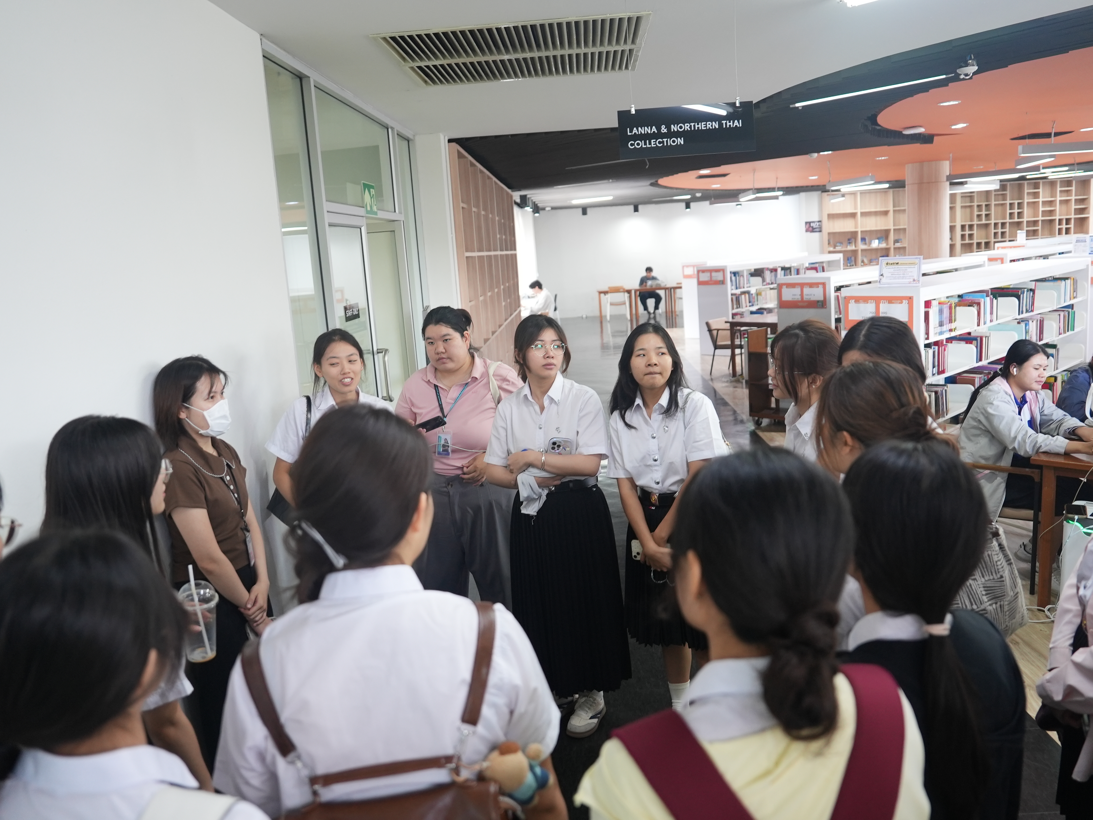 บุคลากรสำนักหอสมุดให้การต้อนรับและบรรยายสรุป นักศึกษาสาธารณรัฐประชาชนจีน จาก Hainan College of Foreign Studies และ Chengdu International Studies University นักศึกษาแลกเปลี่ยนจากสถาบันภาษา มหาวิทยาลัยเชียงใหม่ ในการเข้าเยี่ยมชมสำนักหอสมุด และหอศิลป์ปิ่นมาลา (หอประวัติมหาวิทยาลัยเชียงใหม่) ณ สำนักหอสมุด และหอศิลป์ปิ่นมาลา (หอประวัติมหาวิทยาลัยเชียงใหม่) เมื่อวันที่ 23 กันยายน พ.ศ. 2568