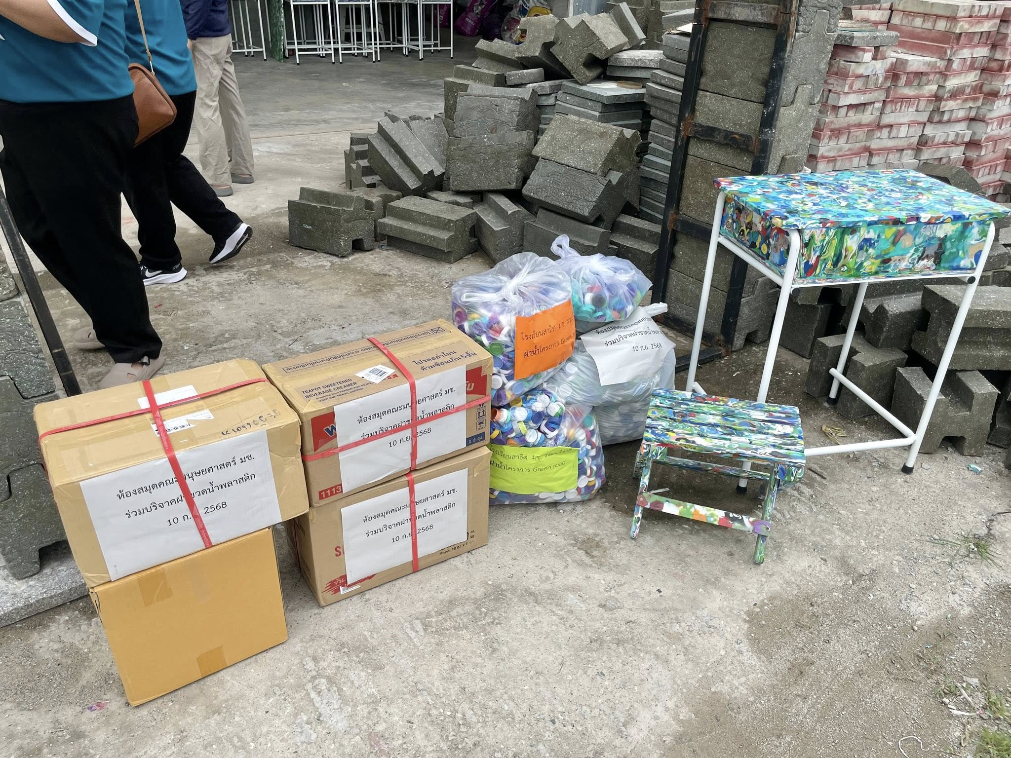 นางสาวธันย์ชนก อากรปรุ หัวหน้าฝ่ายห้องสมุดสาขาวิชามนุษยศาสตร์และสังคมศาสตร์ พร้อมบุคลากรฝ่ายห้องสมุดสาขาวิชามนุษยศาสตร์และสังคมศาสตร์ จัดกิจกรรม "บริจาคฝาขวดน้ำพลาสติก" ภายใต้โครงการ Collaboration for Green ระหว่างเดือนกรกฎาคม - สิงหาคม 2568 เพื่อเปิดพื้นที่ให้ผู้ใช้บริการได้มีบทบาทในการร่วมรักษาสิ่งแวดล้อมผ่านกิจกรรม เพื่อสร้างภาพลักษณ์ของห้องสมุดให้เป็นพื้นที่ที่ทันสมัย เป็นมิตรกับสิ่งแวดล้อม และใส่ใจประเด็นสังคม โดยได้ส่งมอบฝาขวดน้ำจากการจัดกิจกรรมให้กับ โครงการกรีนโรด (Green Road) เพื่อนำไปรีไซเคิลเป็นโต๊ะและเก้าอี้สำหรับโรงเรียนที่ขาดแคลน ณ โครงการกรีนโรด ต.มะเขือแจ้ อ.เมือง จ.ลำพูน เมื่อวันที่ 10 กันยายน พ.ศ. 2568