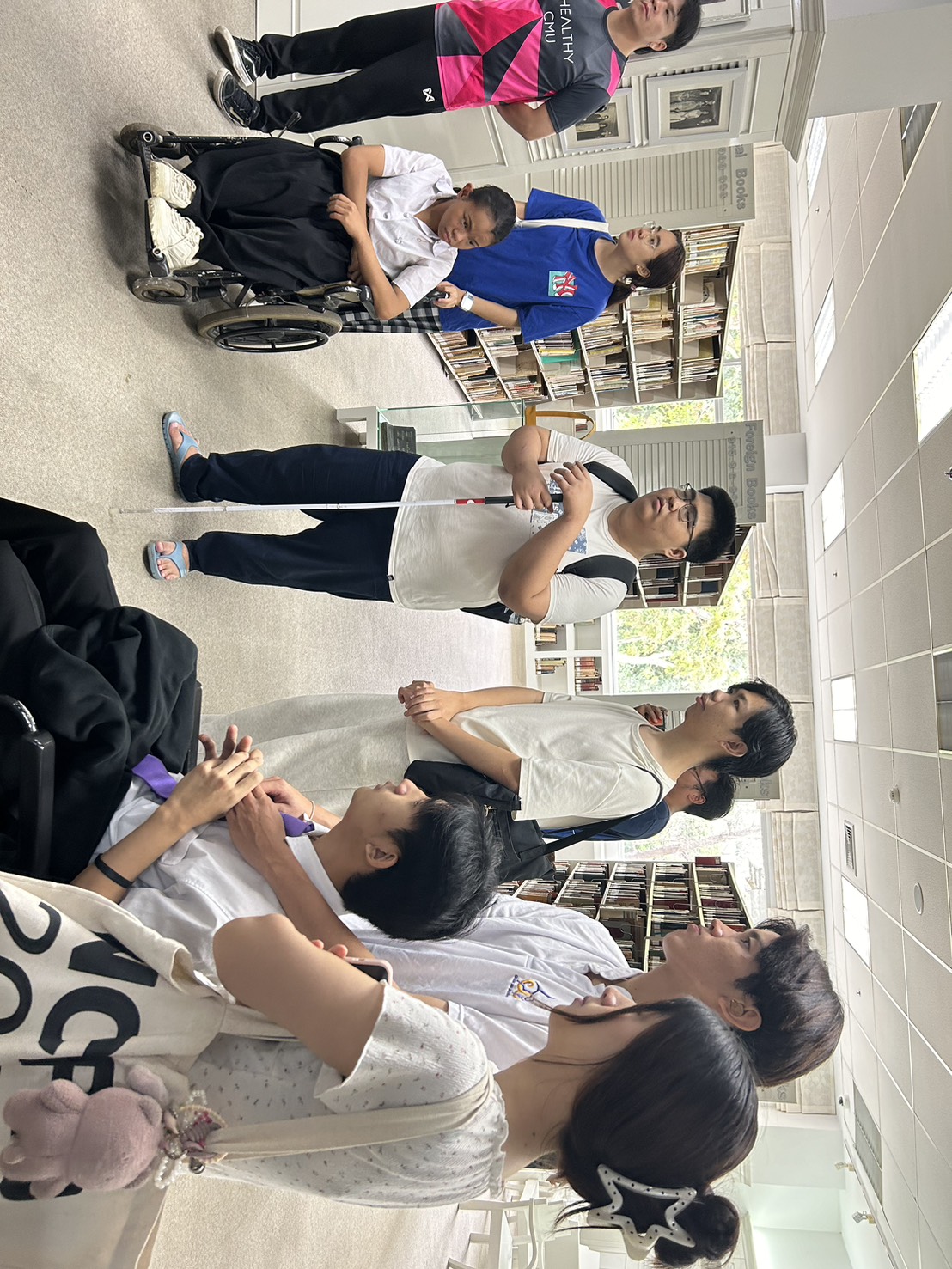 บุคลากรสำนักหอสมุดให้การต้อนรับนักศึกษาพิการและบุคลากรศูนย์บริการสนับสนุนนักศึกษาพิการ มหาวิทยาลัยเชียงใหม่ ในการเข้าร่วมกิจกรรม Library on Tour เยี่ยมชมสำนักหอสมุด และแนะนำการให้บริการพิเศษสำหรับนักศึกษาพิการ ตลอดจนร่วมแลกเปลี่ยนความคิดเห็นในการพัฒนาสำนักหอสมุดให้สามารถเข้าถึงบริการและสร้างพื้นที่สำหรับผู้ใช้บริการทุกประเภทอย่างทั่วถึง ณ สำนักหอสมุด เมื่อวันที่ 8 ตุลาคม พ.ศ. 2568