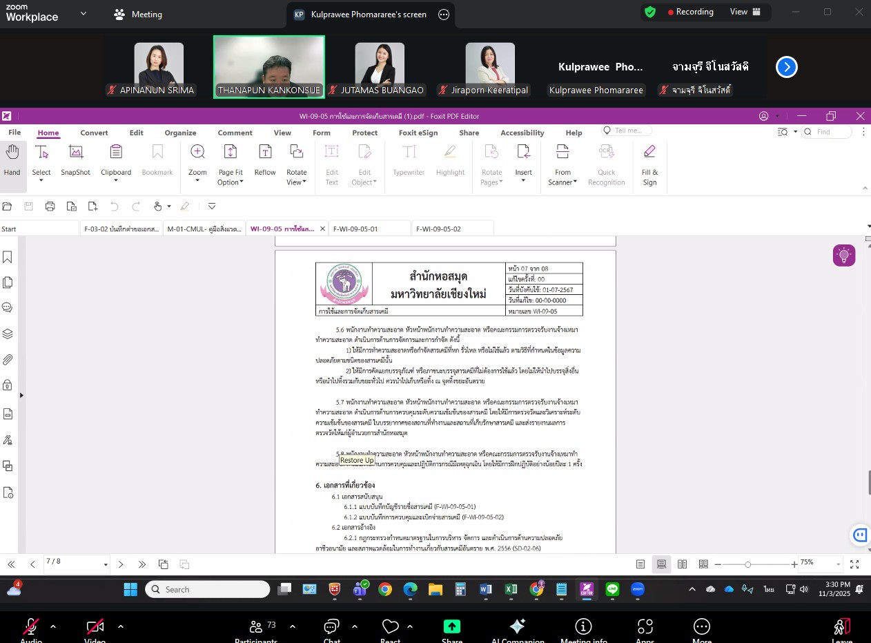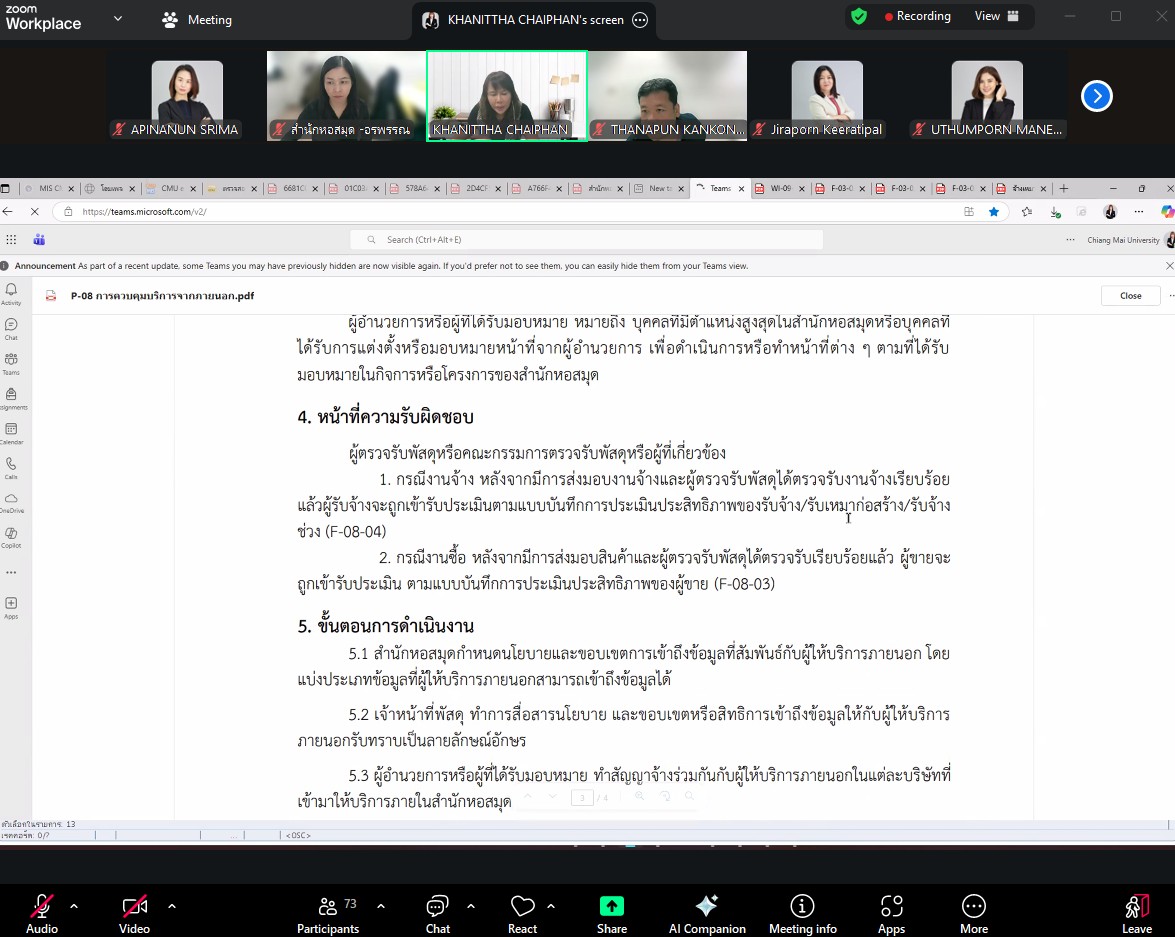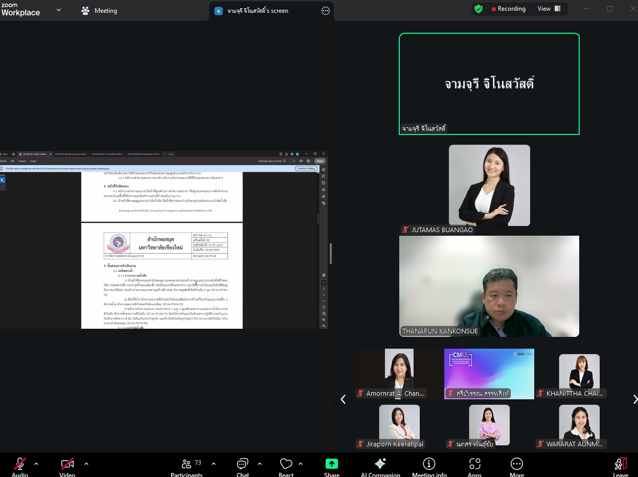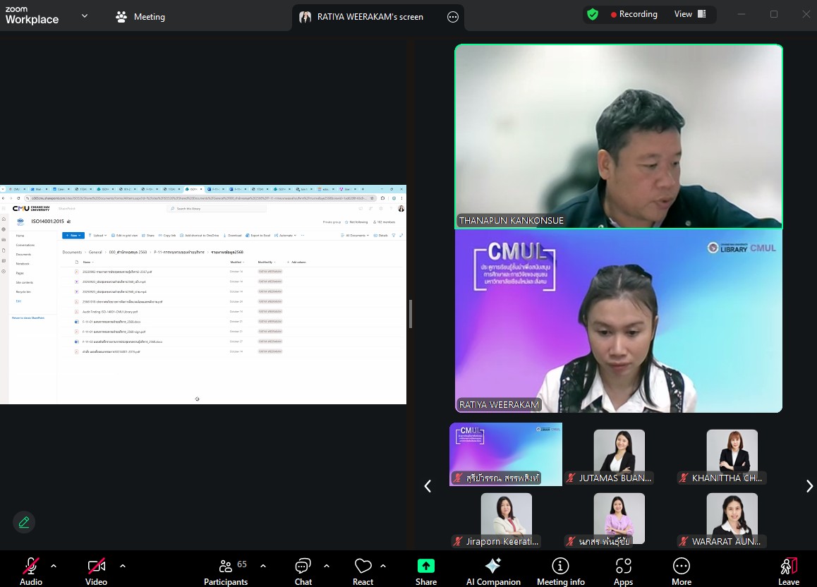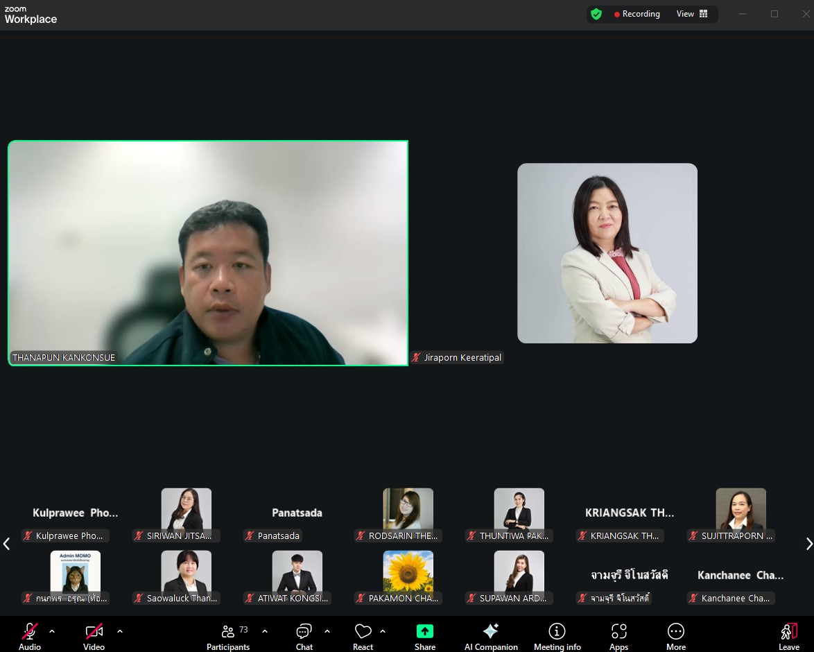 สำหรับการ Surveillance Audit ระบบมาตรฐานการจัดการสิ่งแวดล้อม ISO 14001 : 2015 ได้แก่ ประเด็นสำคัญในการเตรียมความพร้อม Surveillance Audit มาตรการด้านสิ่งแวดล้อมที่ปรับปรุงใหม่ และการดำเนินการของแต่ละ P / WI ในปี พ.ศ. 2568 ผ่านโปรแกรมออนไลน์ Zoom เมื่อวันที่ 3 พฤศจิกายน พ.ศ. 2568