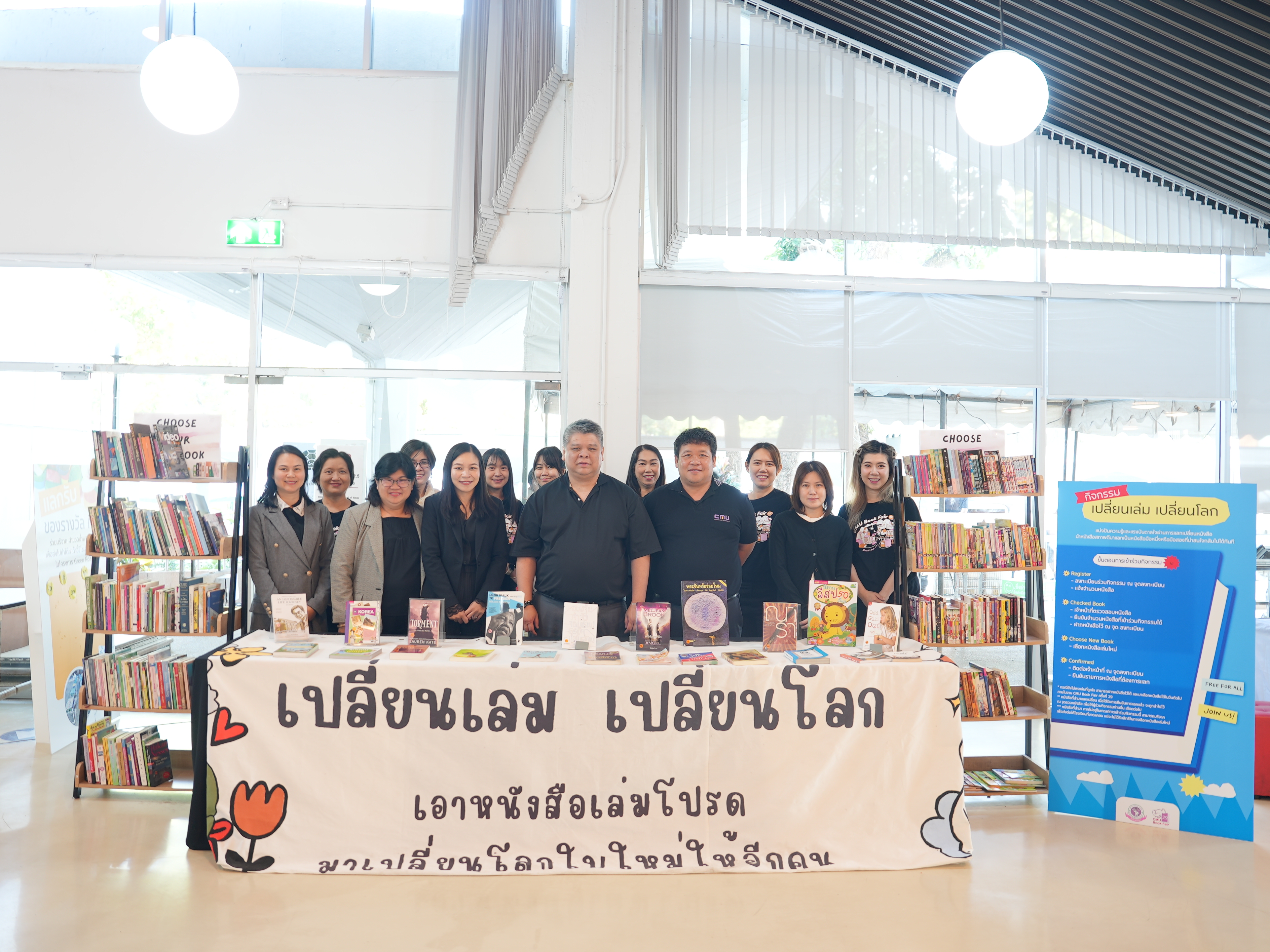 สำนักหอสมุดจัดกิจกรรมการมีส่วนร่วมของชุมชนและสังคม ในงานสัปดาห์หนังสือแห่งปี CMU Book Fair ครั้งที่ 29 ระหว่างวันที่ 25 พฤศจิกายน - 3 ธันวาคม 2568 กิจกรรมภายในงานประกอบ (1) กิจกรรม “เปลี่ยนเล่ม เปลี่ยนโลก” เชิญชวนนำหนังสือทุกประเภทที่อยู่ในสภาพดี ไม่ฉีกขาด ตามเงื่อนไขที่กำหนด มาแลกเปลี่ยนกันภายในงาน โดยภายในงานจะมีหนังสือกองกลางให้เลือก ทั้งหนังสือมือสองสภาพดี และหนังสือใหม่มือหนึ่งที่สำนักหอสมุดจัดหามาเพิ่มเติม เพื่อหมุนเวียนหนังสือดี ๆ สู่มือใหม่ และสร้างชุมชนแห่งการอ่านที่ยั่งยืน (2) กิจกรรม “Game ไม่เก่า เพราะเรา SHARE” เปิดรับบริจาค Boardgame สภาพดี ไม่ชำรุดหรือสูญหาย อุปกรณ์ประกอบครบถ้วน เพื่อส่งต่อให้โรงเรียนในโครงการ เช่น โรงเรียนบ้านป่าก้าง โรงเรียนวัดป่าแดด และโรงเรียนแม่หอพระวิทยาคม รับบอร์ดเกมทุกประเภท ทั้งเกมเพื่อความสนุกและเกมเพื่อการเรียนรู้ จัดตั้งแต่วันนี้ ถึง 3 ธันวาคม 2568 (3) กิจกรรม “ฝาขวดน้ำ แลกของรางวัล”เชิญชวนร่วมบริจาคฝาขวดน้ำพลาสติกที่เป็นฝาขวดน้ำดื่มเท่านั้น เพื่อนำมาแลกรับของรางวัลที่เป็นมิตรกับสิ่งแวดล้อม ฝาทุกชิ้นจะถูกส่งต่อให้โครงการ “โต๊ะนักเรียนรีไซเคิล (Green Road)” เพื่อนำไปผลิตโต๊ะและเก้าอี้มอบให้โรงเรียนที่ขาดแคลน (4) กิจกรรม “รับบริจาคกระดาษหน้าเดียว” เปิดรับบริจาคกระดาษหน้าเดียว นำไปรีไซเคิล และส่งต่อให้กับโรงเรียนสอนคนตาบอดภาคเหนือในพระบรมราชินูปถัมภ์ จังหวัดเชียงใหม่ เพื่อนำไปผลิตสมุดอักษรเบรลล์ให้แก่นักเรียนผู้พิการทางสายตา และกิจกรรม “Mini Tour @ CMU Library” บริการนำชมการให้บริการและพื้นที่ให้บริการสำนักหอสมุด มหาวิทยาลัยเชียงใหม่ เพื่อให้ผู้เข้าร่วมกิจกรรมได้รู้รับทราบบริการทรัพยากร และสิ่งอำนวยความสะดวกของสำนักหอสมุดมากขึ้น ณ ชั้น 1 สำนักหอสมุด ระหว่างวันที่ 25 พฤศจิกายน - 3 ธันวาคม พ.ศ. 2568