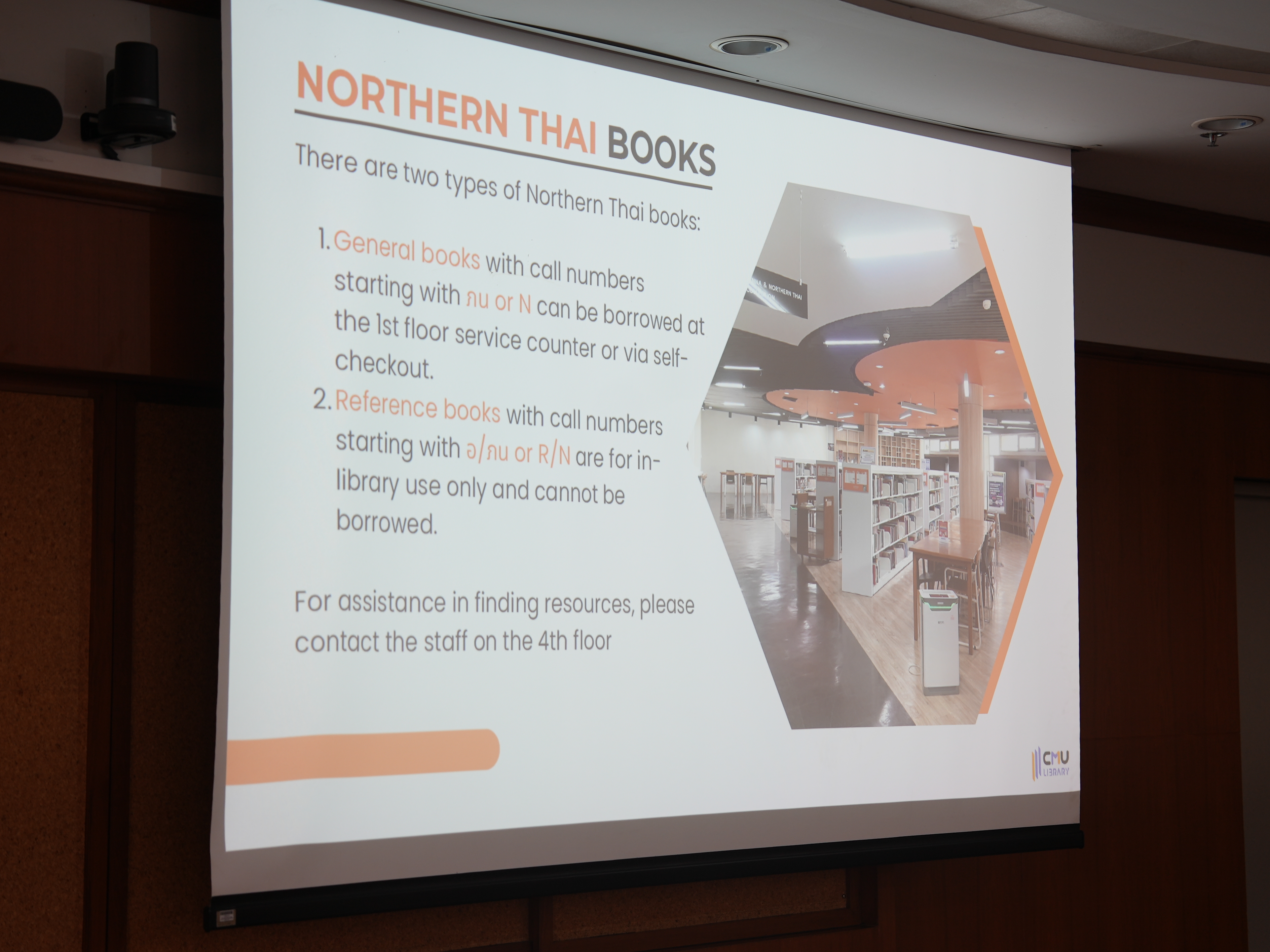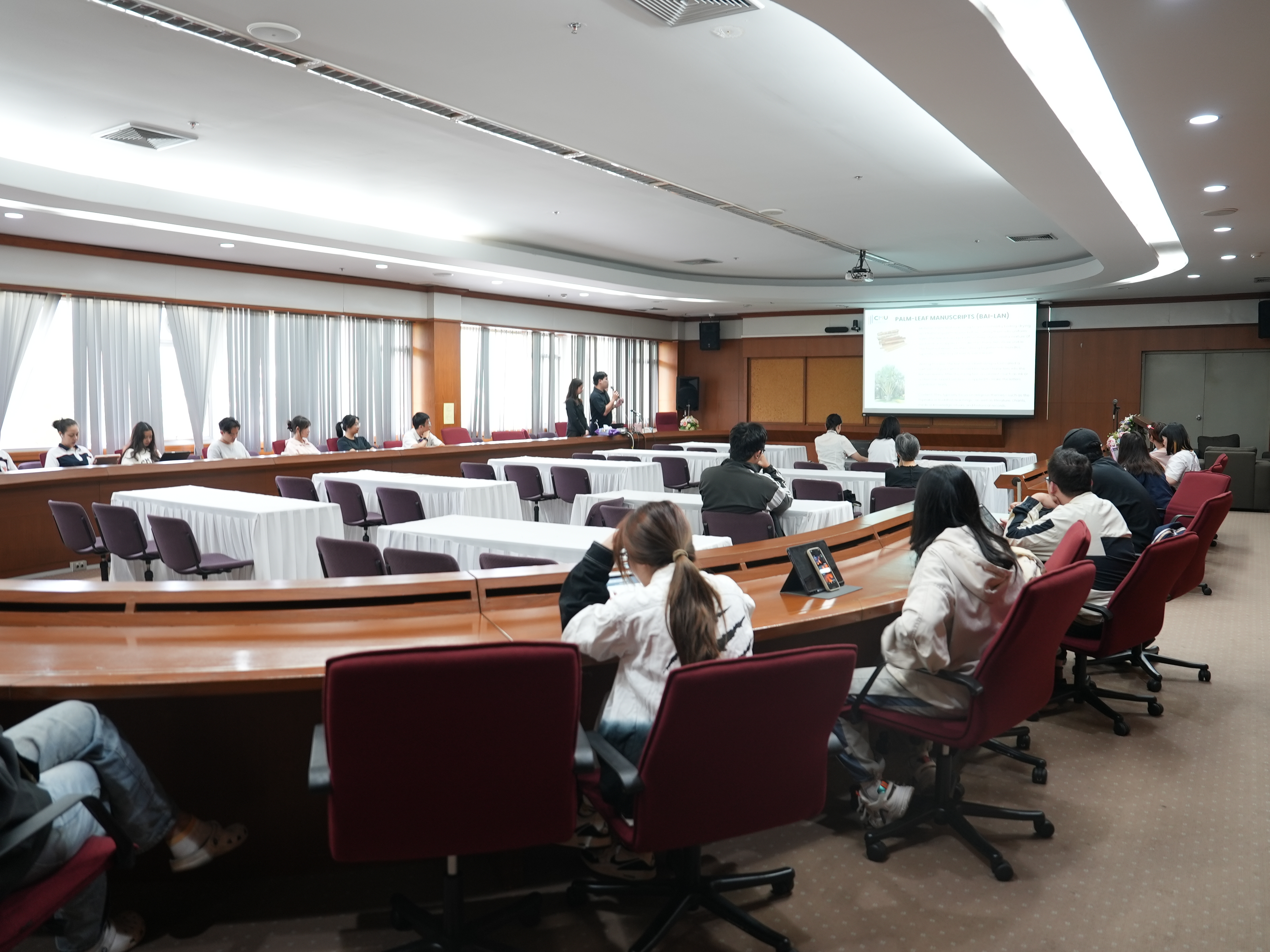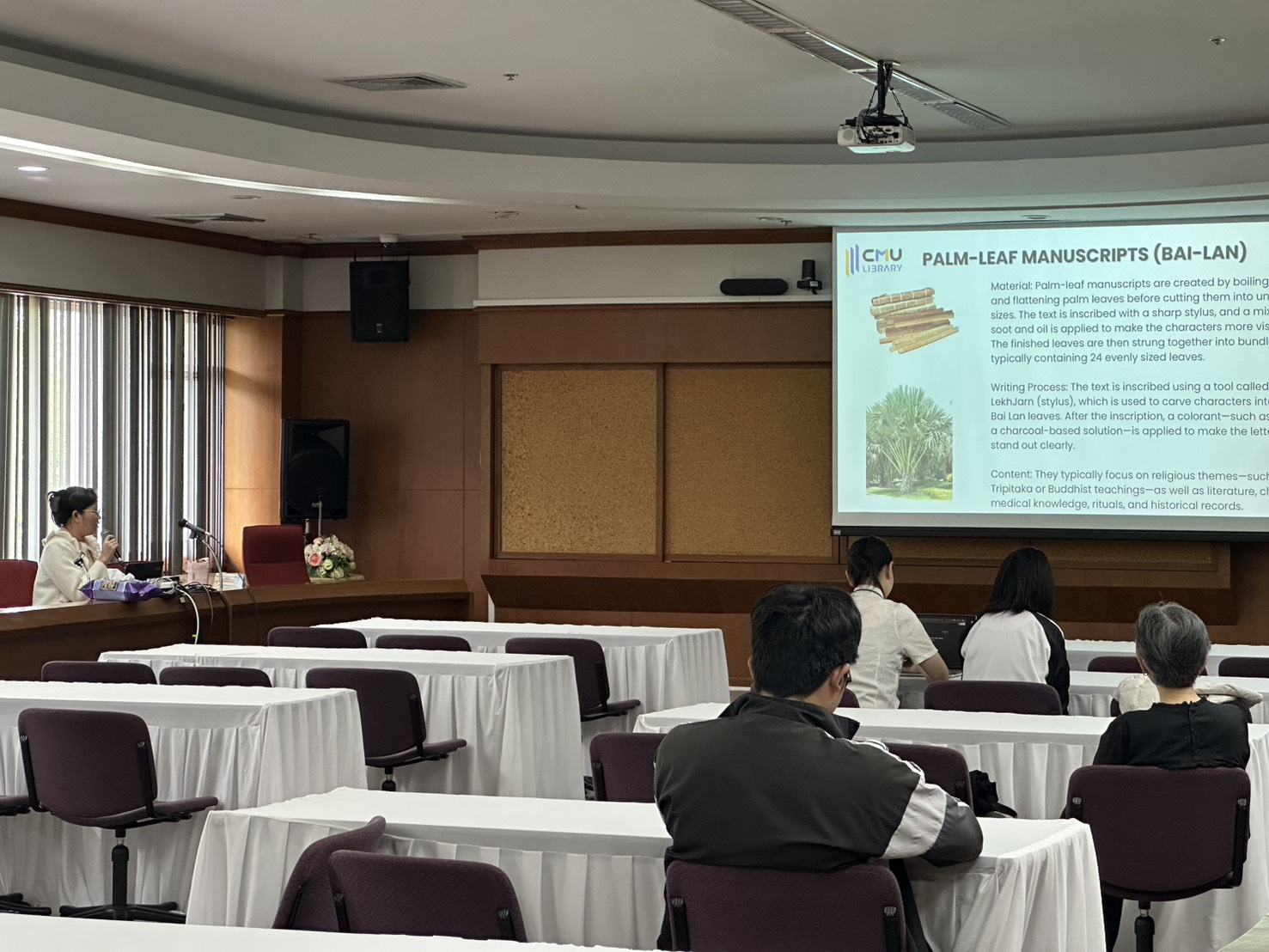 บุคลากรฝ่ายสารสนเทศล้านนาและภาคเหนือ สำนักหอสมุด ให้การต้อนรับและบรรยาย นักศึกษาสาขาวิชาสังคมวิทยาและมานุษยวิทยา คณะสังคมศาสตร์ มหาวิทยาลัยเชียงใหม่ ในการรับฟังการบรรยายและเข้าเยี่ยมชมคลังข้อมูลเอกสารล้านนาที่สำนักหอสมุดเก็บรวบรวมไว้ในรูปแบบเอกสารมรดกหรือเอกสารใบลาน ณ ห้องประชุม 1 ชั้น 5 สำนักหอสมุด เมื่อวันที่ 9 ธันวาคม พ.ศ. 2568