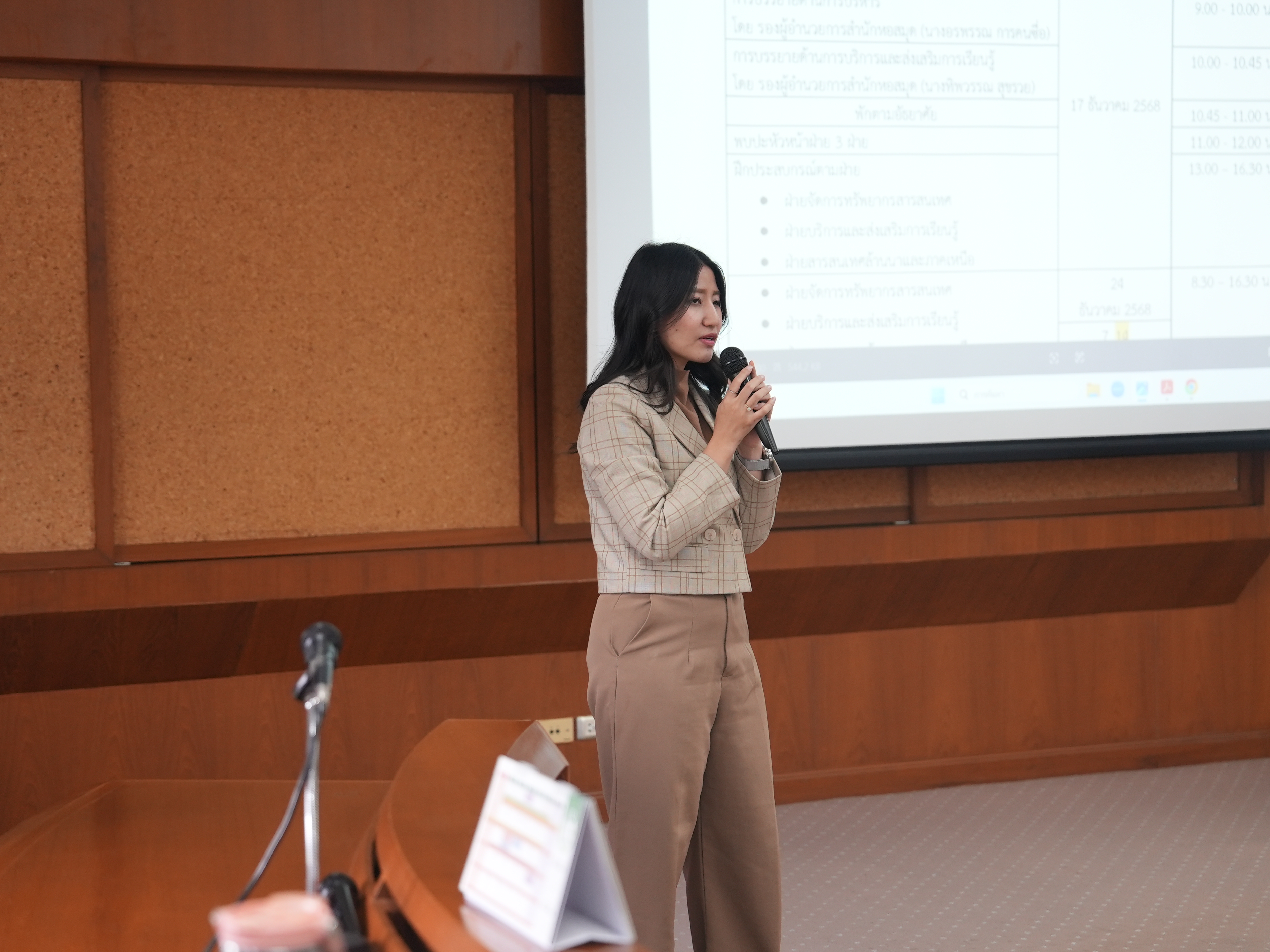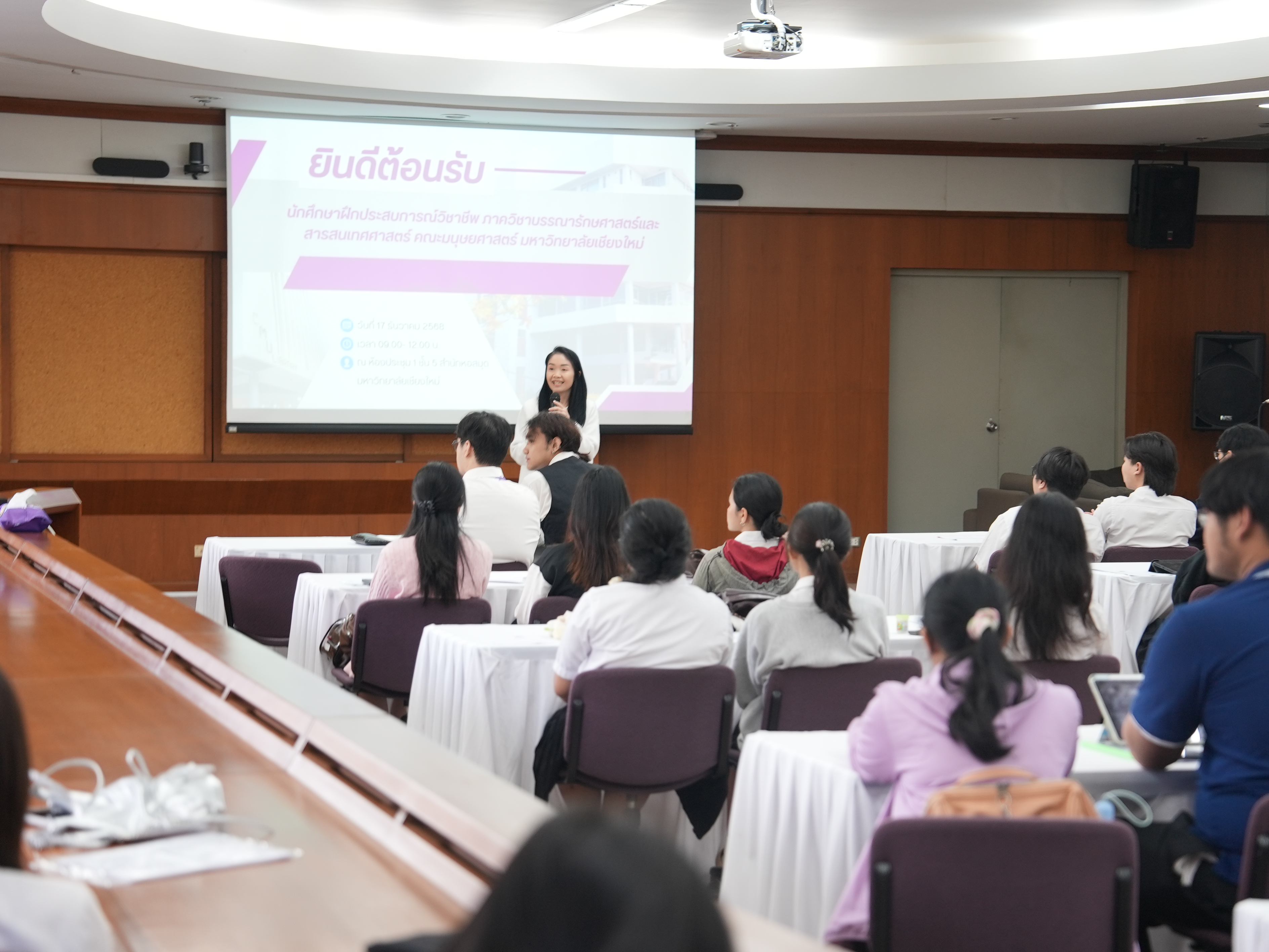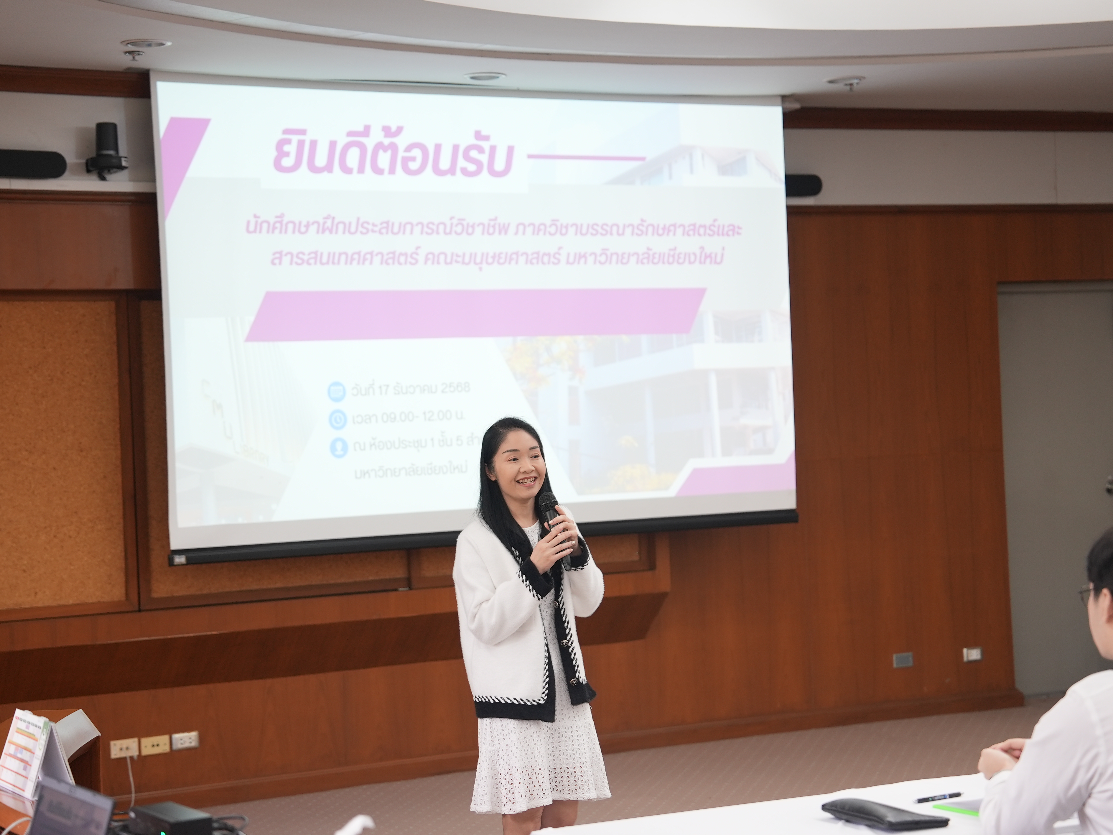 นางทิพวรรณ สุขรวย รองผู้อำนวยการสำนักหอสมุด พร้อมบุคลากรสำนักหอสมุด ให้การต้อนรับและบรรยายสรุปด้านการบริหารงาน ด้านการบริการและส่งเสริมการเรียนรู้ ตลอดจนชี้แจงการเข้ารับฝึกประสบการณ์วิชาชีพห้องสมุด แก่นักศึกษาวิชาเอกสารสนเทศศึกษา ชั้นปีที่ 3 ภาควิชาบรรณารักษศาสตร์และสารสนเทศศาสตร์ คณะมนุษยศาสตร์ มหาวิทยาลัยเชียงใหม่ โดยเข้ารับการฝึกประสบการณ์วิชาชีพห้องสมุด ระหว่างวันที่ 17 ธันวาคม 2568 ถึง 11 มีนาคม 2569 ณ ห้องประชุม 1 ชั้น 5 สำนักหอสมุด เมื่อวันที่ 17 ธันวาคม พ.ศ. 2568