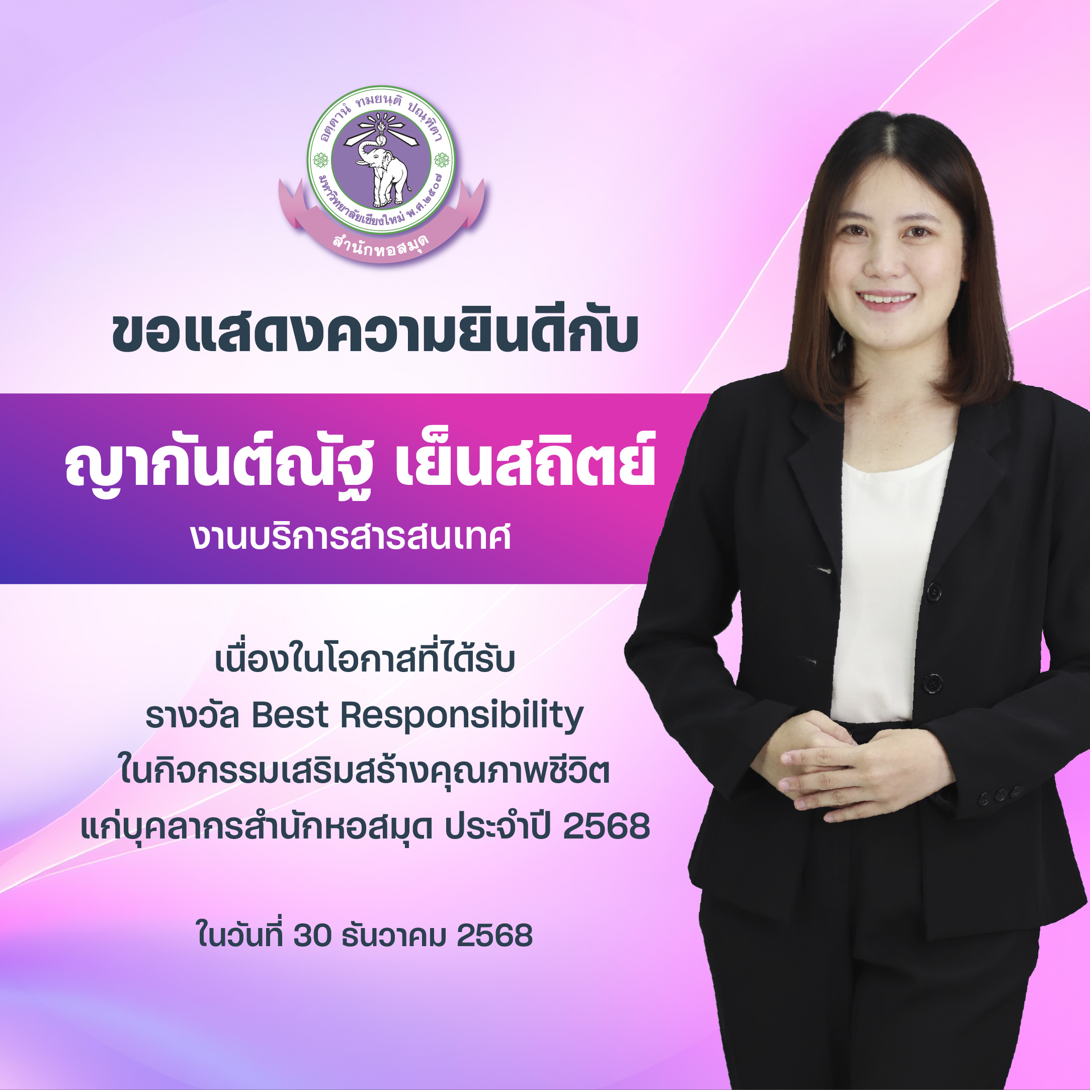 - นางสาวญากันต์ณัฐ เย็นสถิตย์ Best Responsibility