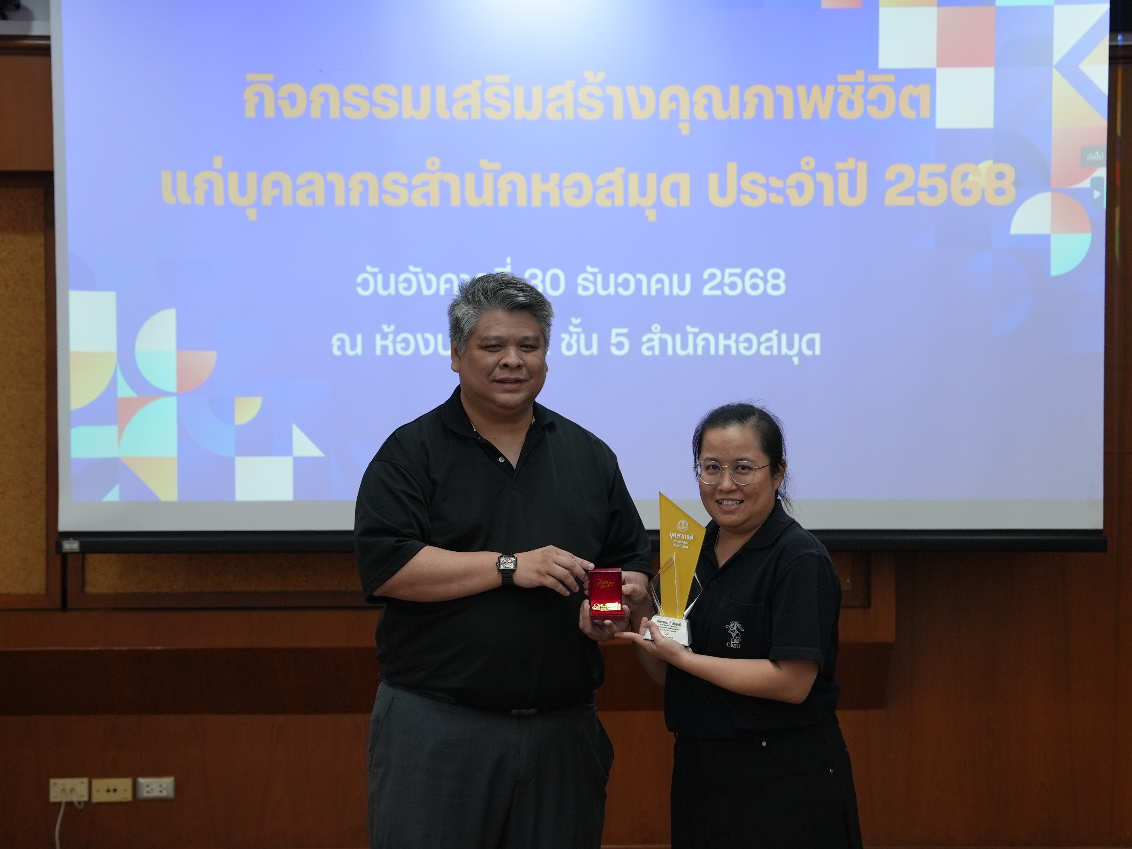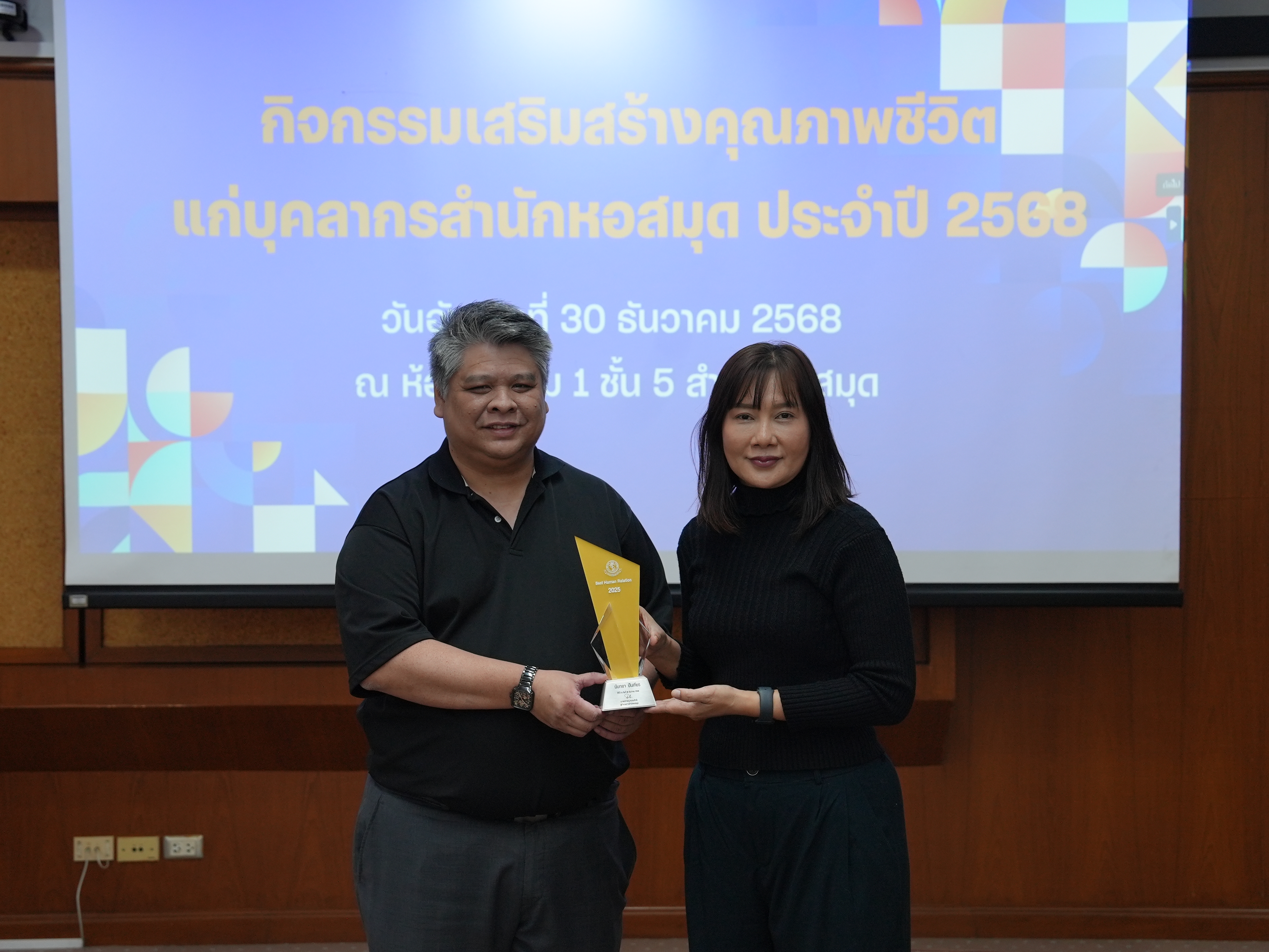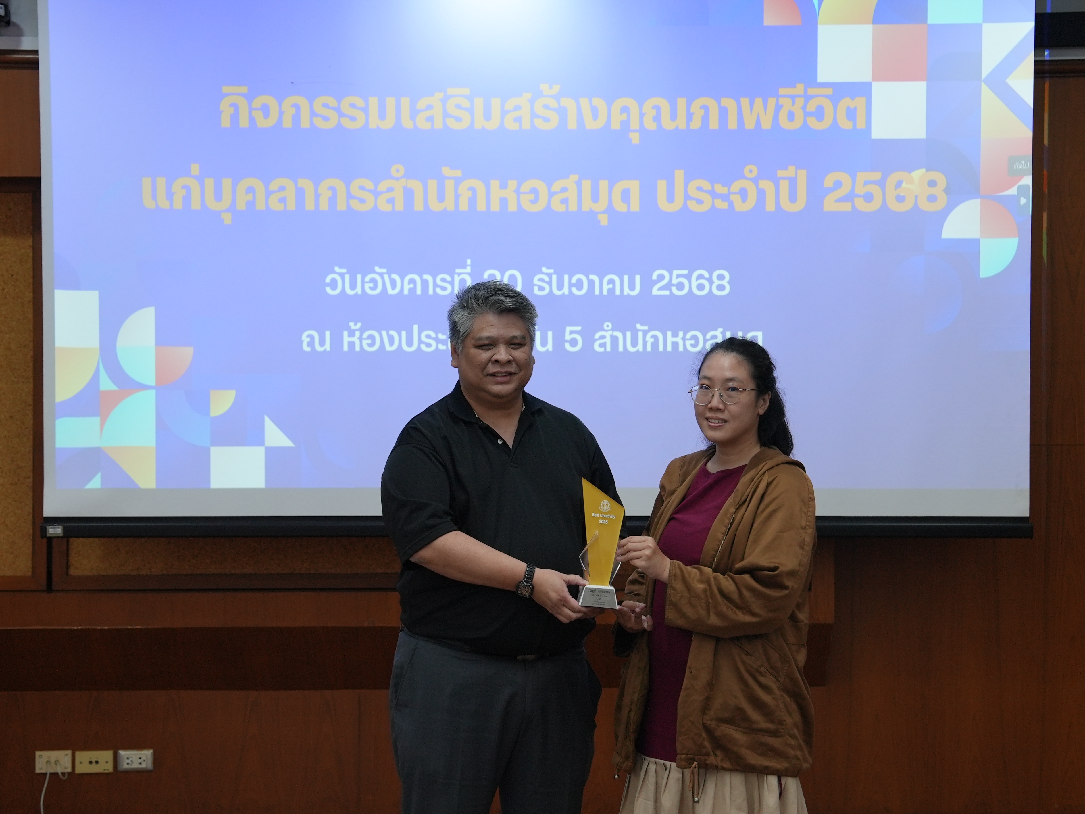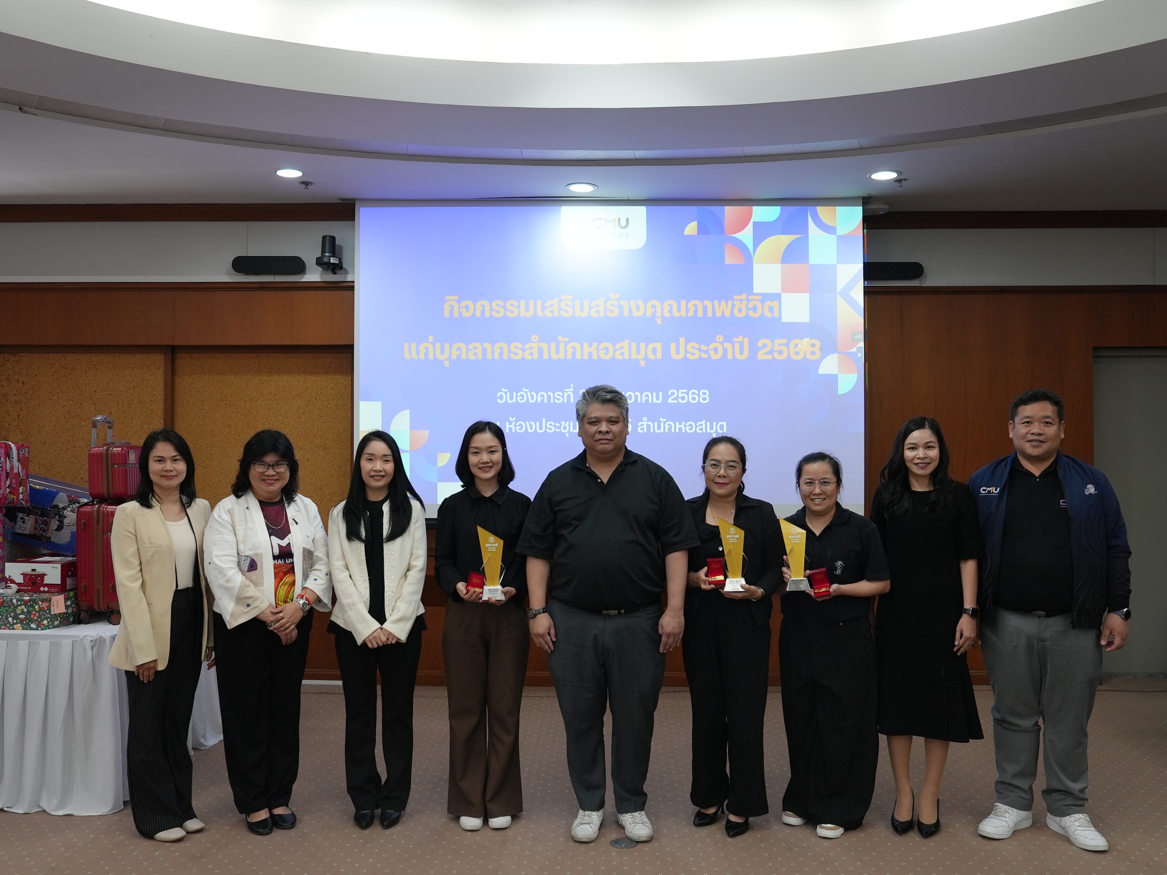 บุคลากรสำนักหอสมุดรับรางวัลบุคลากรดี และรางวัลผู้มีผลงานดีเฉพาะด้าน ในกิจกรรมเสริมสร้างคุณภาพชีวิตแก่บุคลากรสำนักหอสมุด ประจำปี 2568