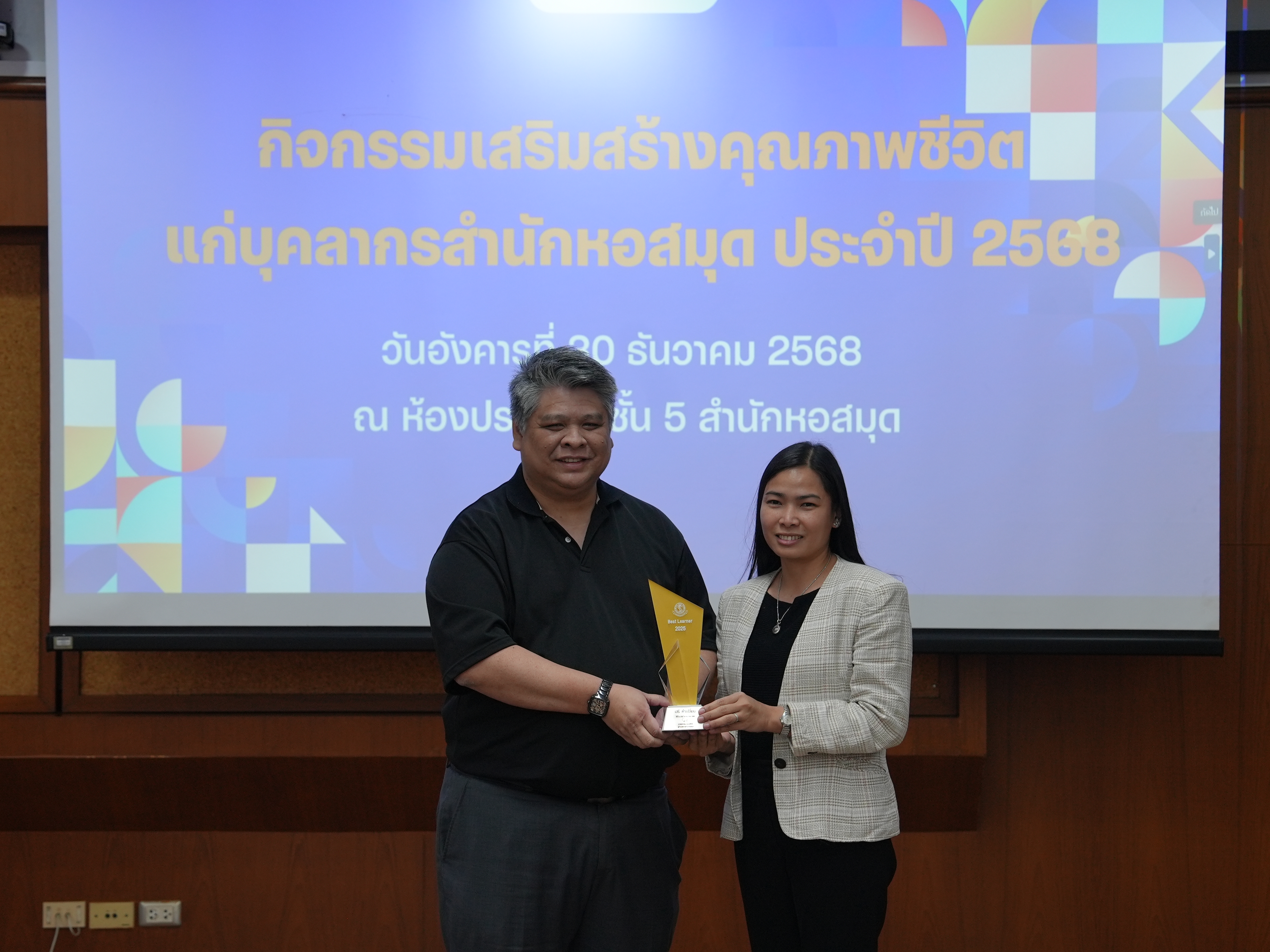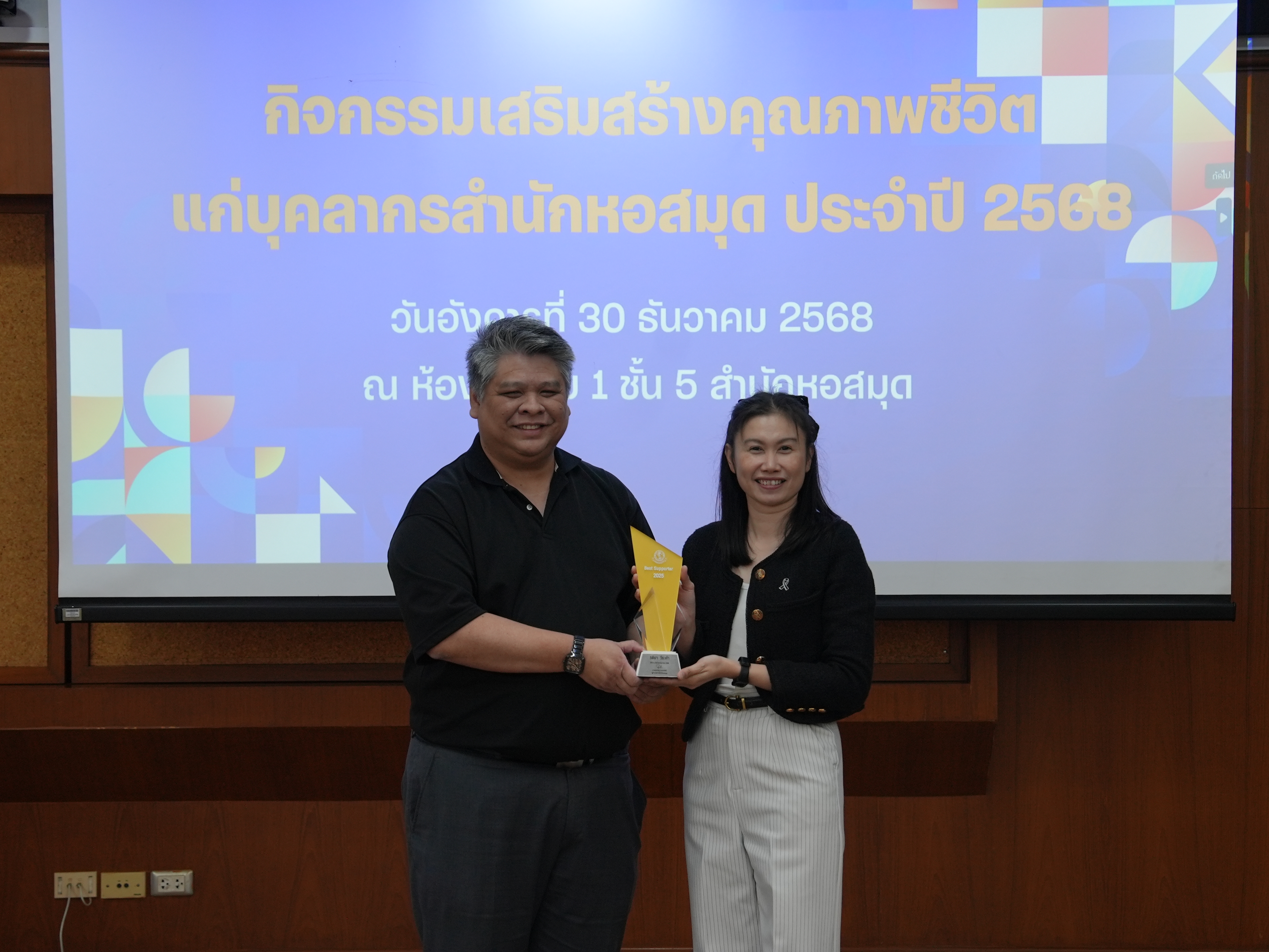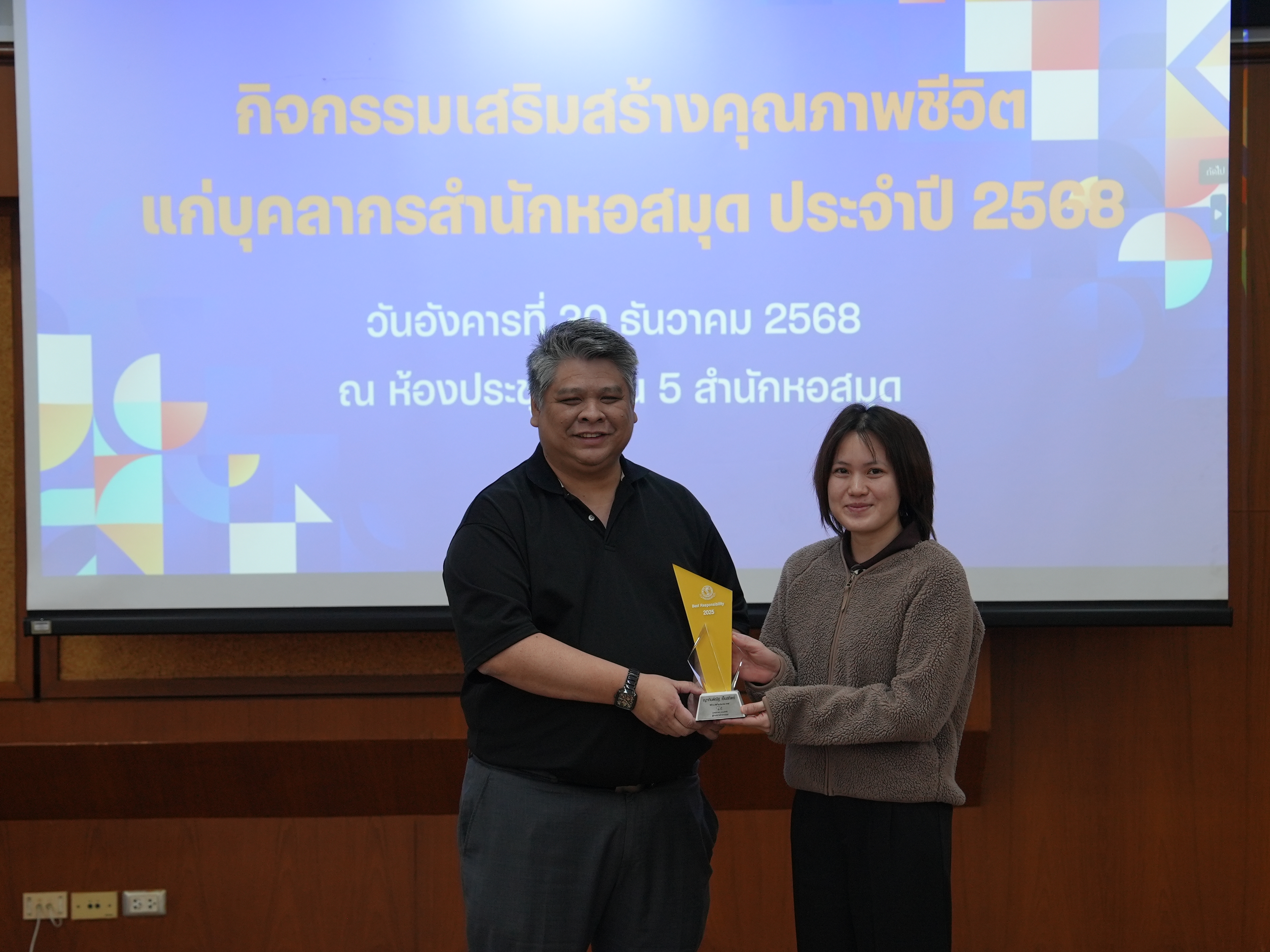บุคลากรสำนักหอสมุดรับรางวัลบุคลากรดี และรางวัลผู้มีผลงานดีเฉพาะด้าน ในกิจกรรมเสริมสร้างคุณภาพชีวิตแก่บุคลากรสำนักหอสมุด ประจำปี 2568