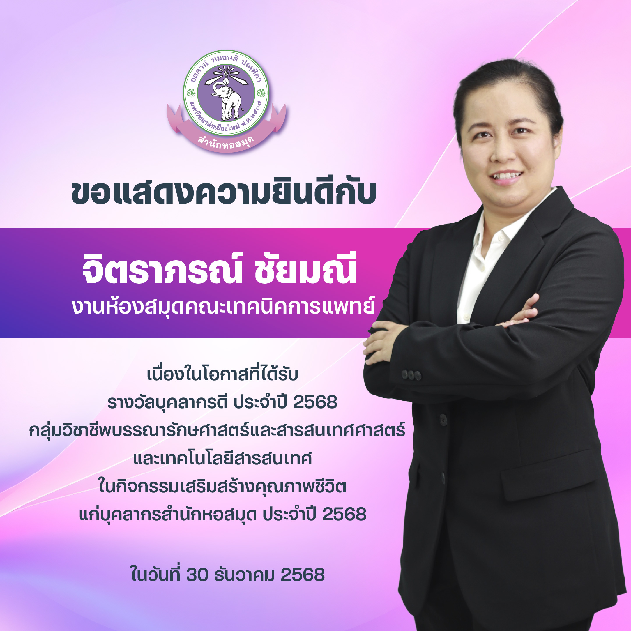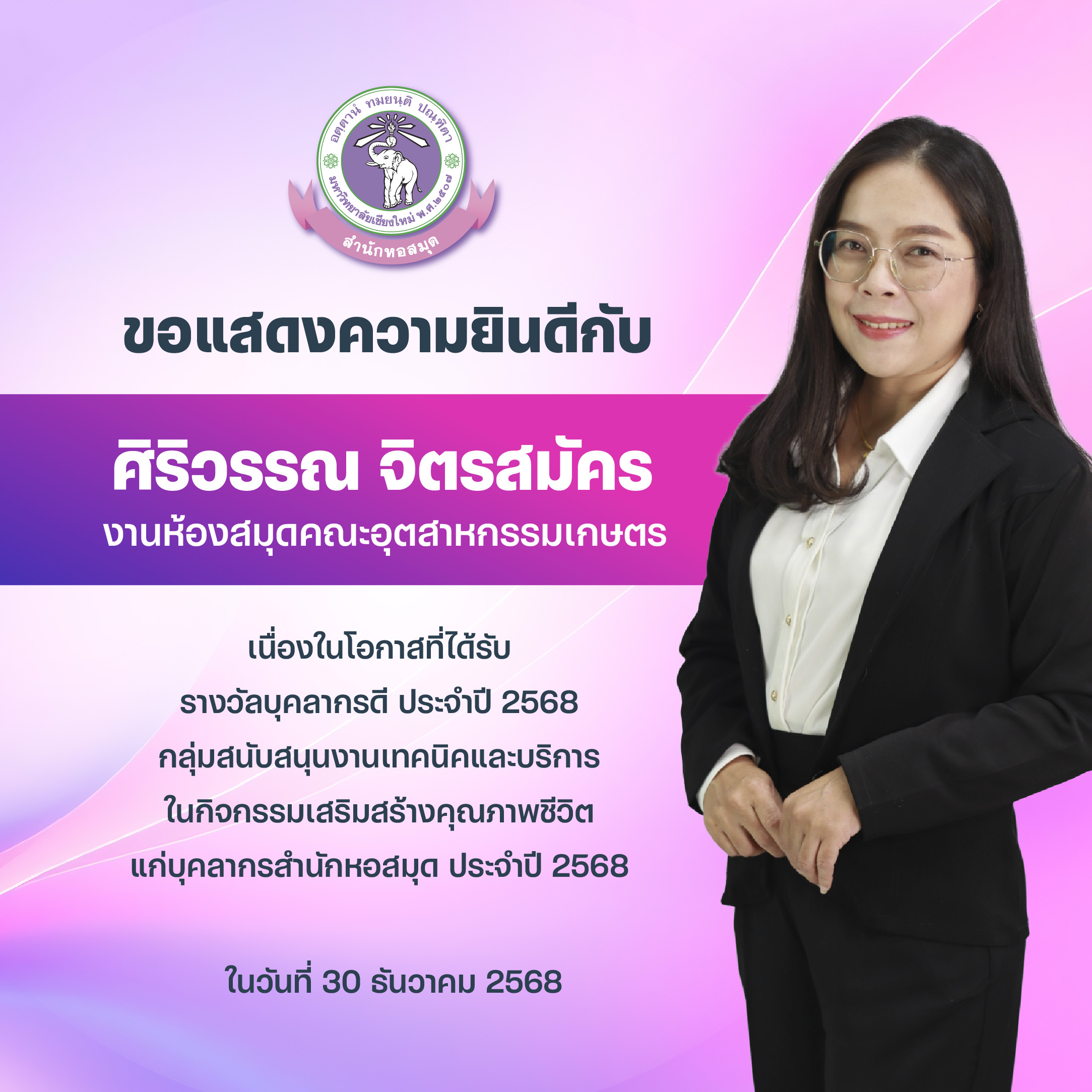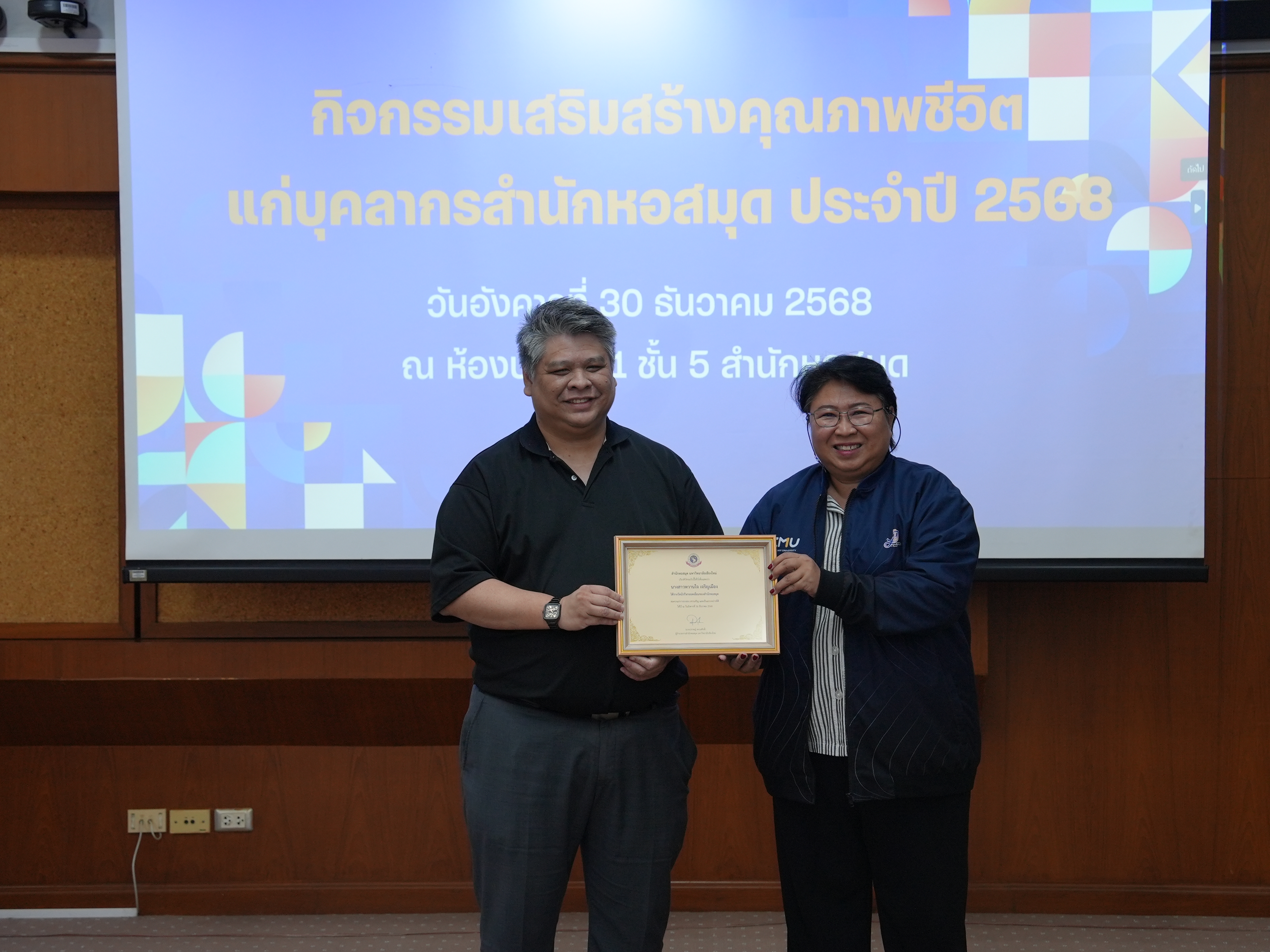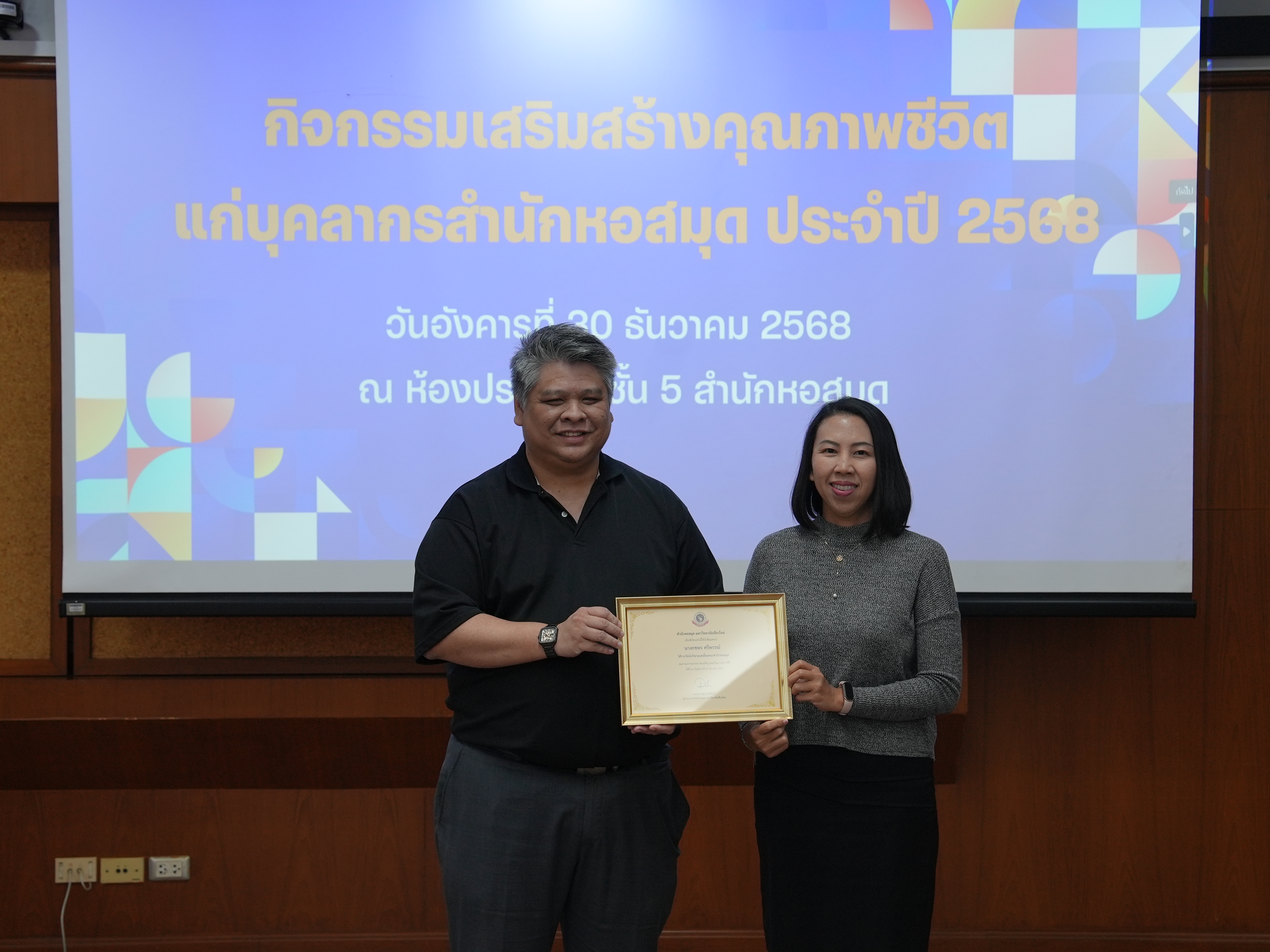 บุคลากรสำนักหอสมุดรับรางวัลบุคลากรดี และรางวัลผู้มีผลงานดีเฉพาะด้าน ในกิจกรรมเสริมสร้างคุณภาพชีวิตแก่บุคลากรสำนักหอสมุด ประจำปี 2568