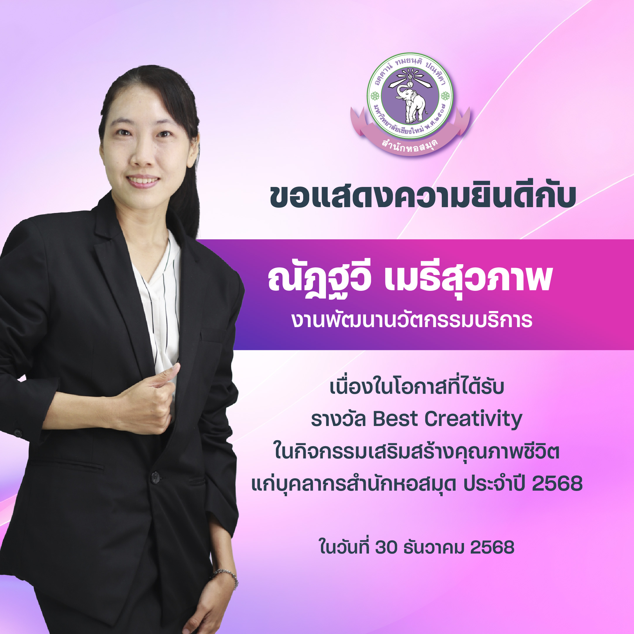 - นางสาวณัฎฐวี เมธีสุวภาพ Best Creativity