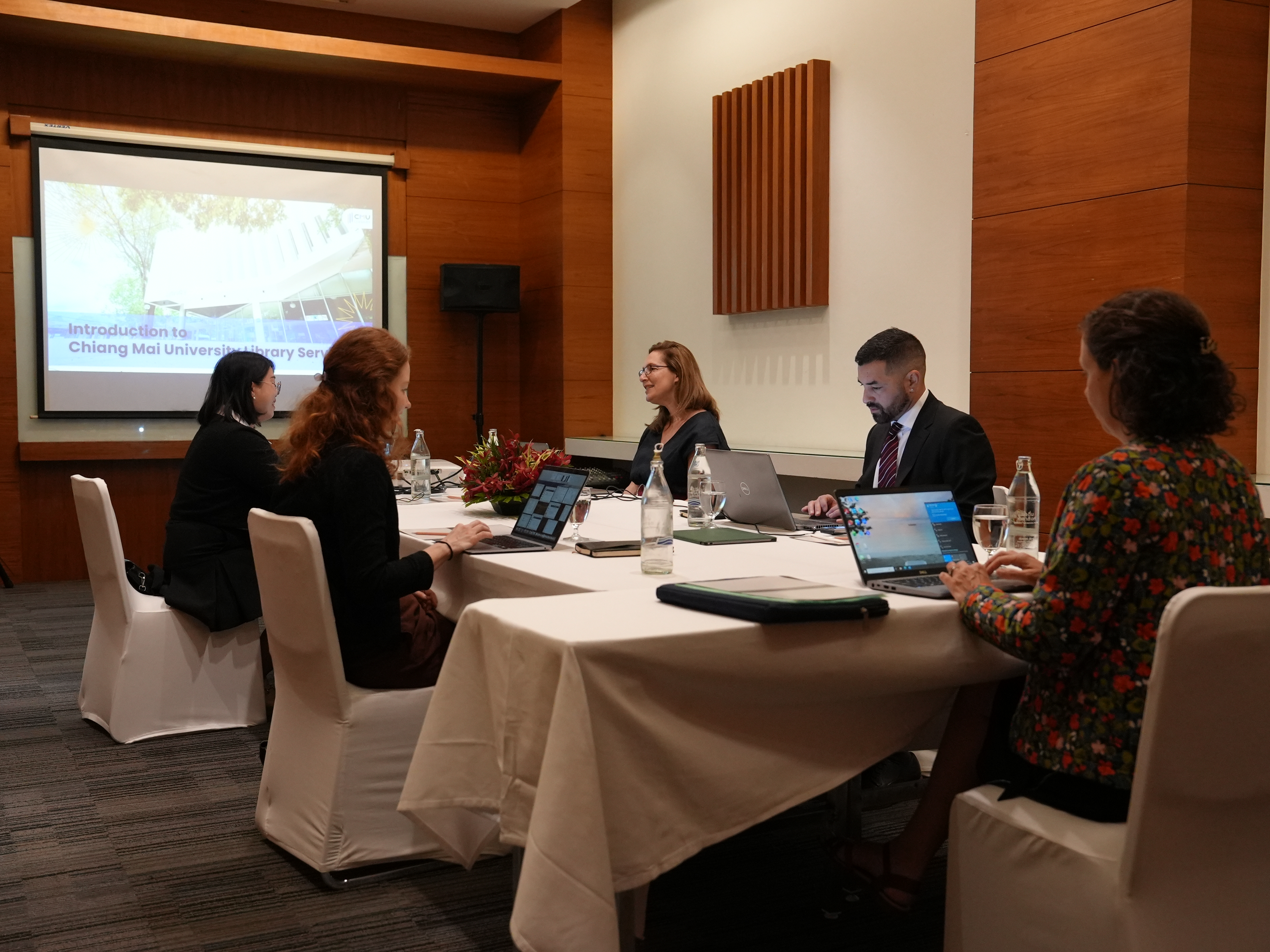 นางสาวสุรินทรา หล้าสกูล บรรณารักษ์สำนักหอสมุด เป็นวิทยากรให้การบรรยายด้านบริการและส่งเสริมการเรียนรู้ ให้กับคณะผู้บริหาร London School of Hygiene & Tropical Medicine (LSHTM) ในกิจกรรม Planetary and Sustainable Health Workshop ระหว่างมหาวิทยาลัยเชียงใหม่ กับ London School of Hygiene & Tropical Medicine (LSHTM) จัดโดย สำนักพัฒนาคุณภาพการศึกษา ณ Kantary Hills Hotel เมื่อวันที่ 26 มกราคม พ.ศ. 2569