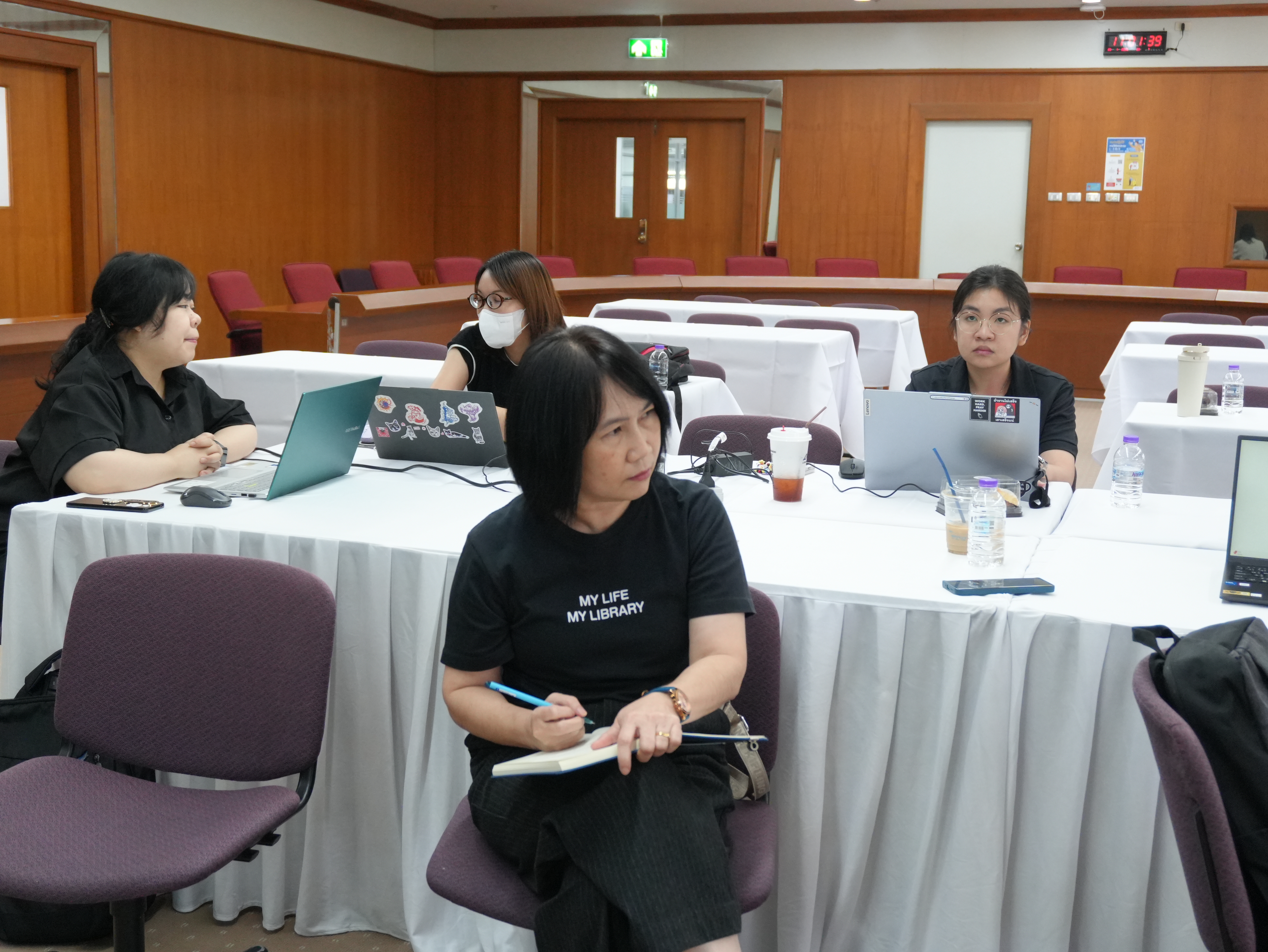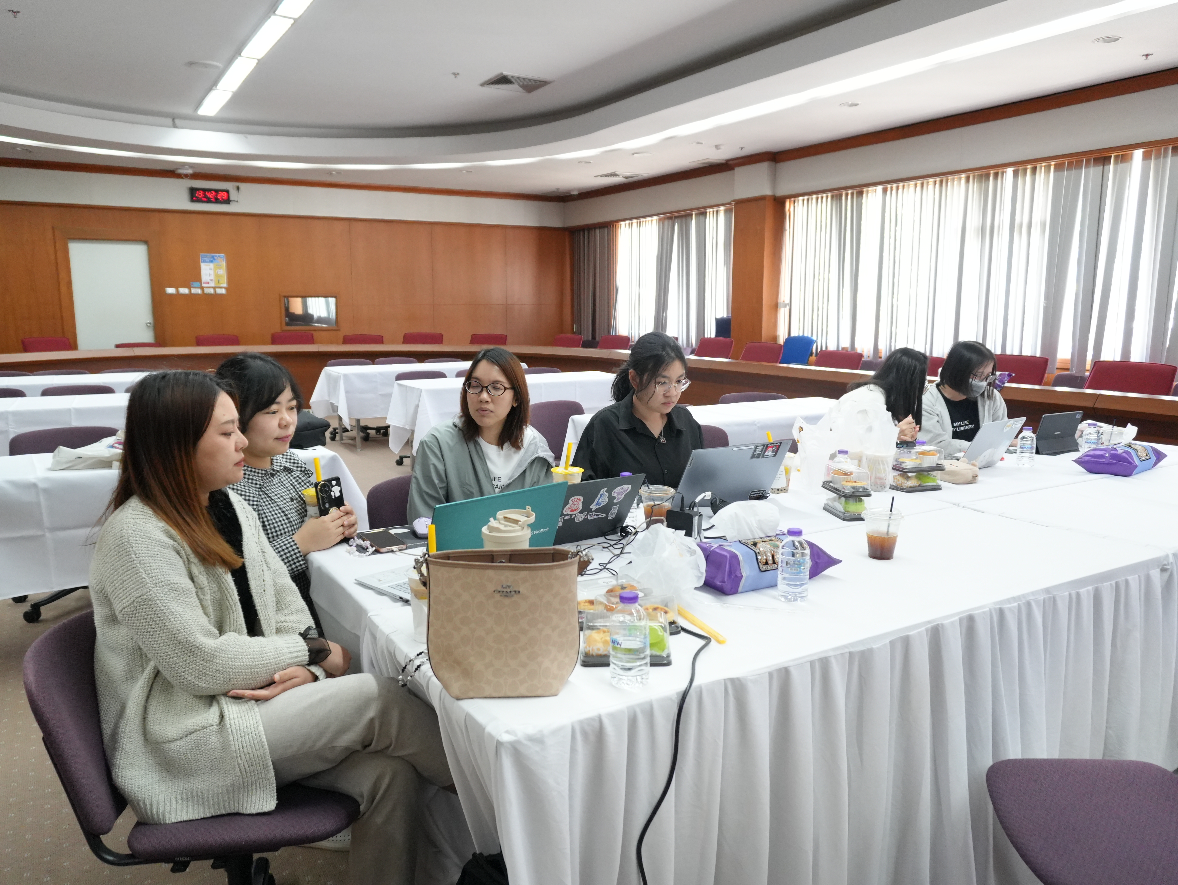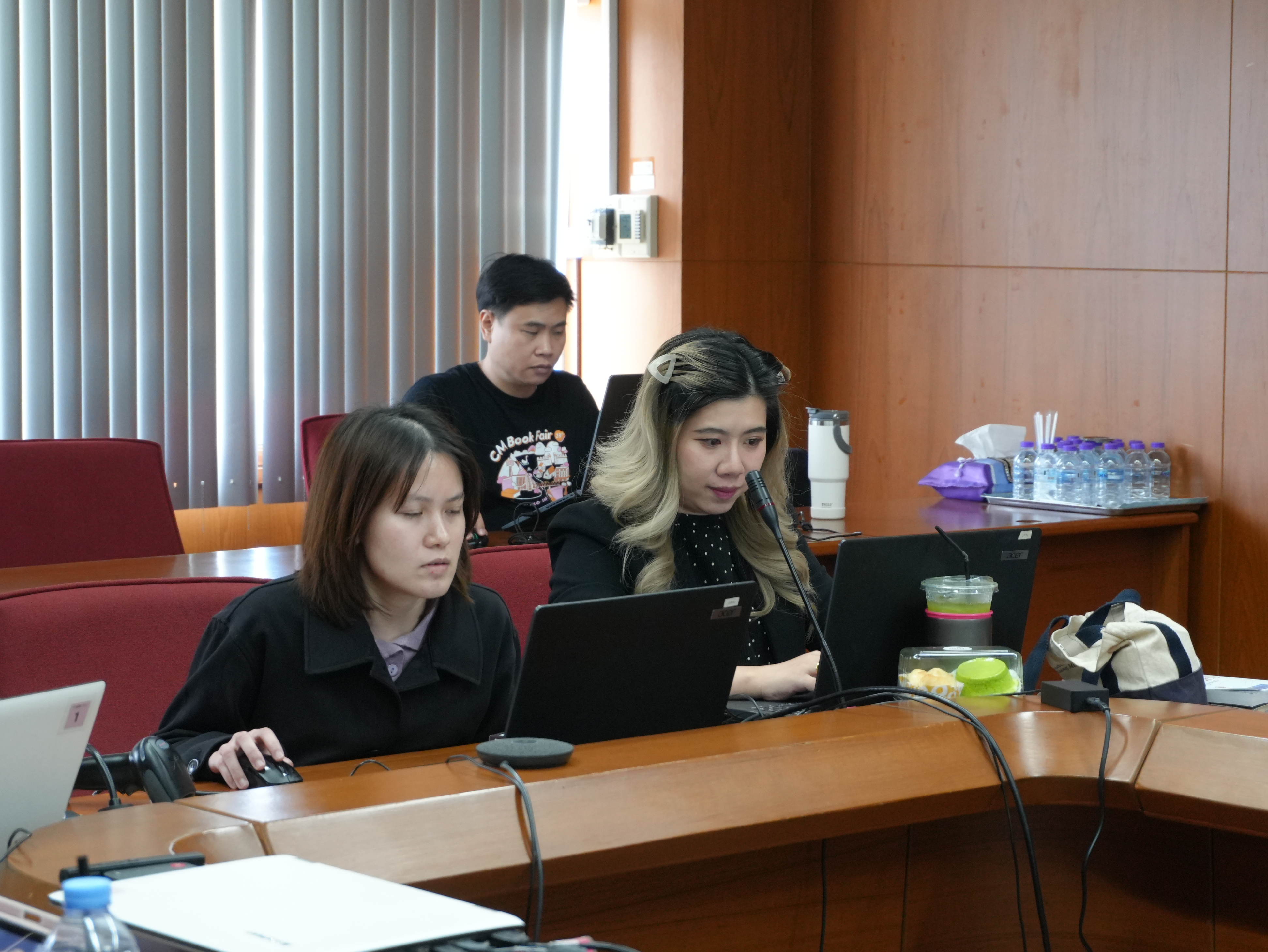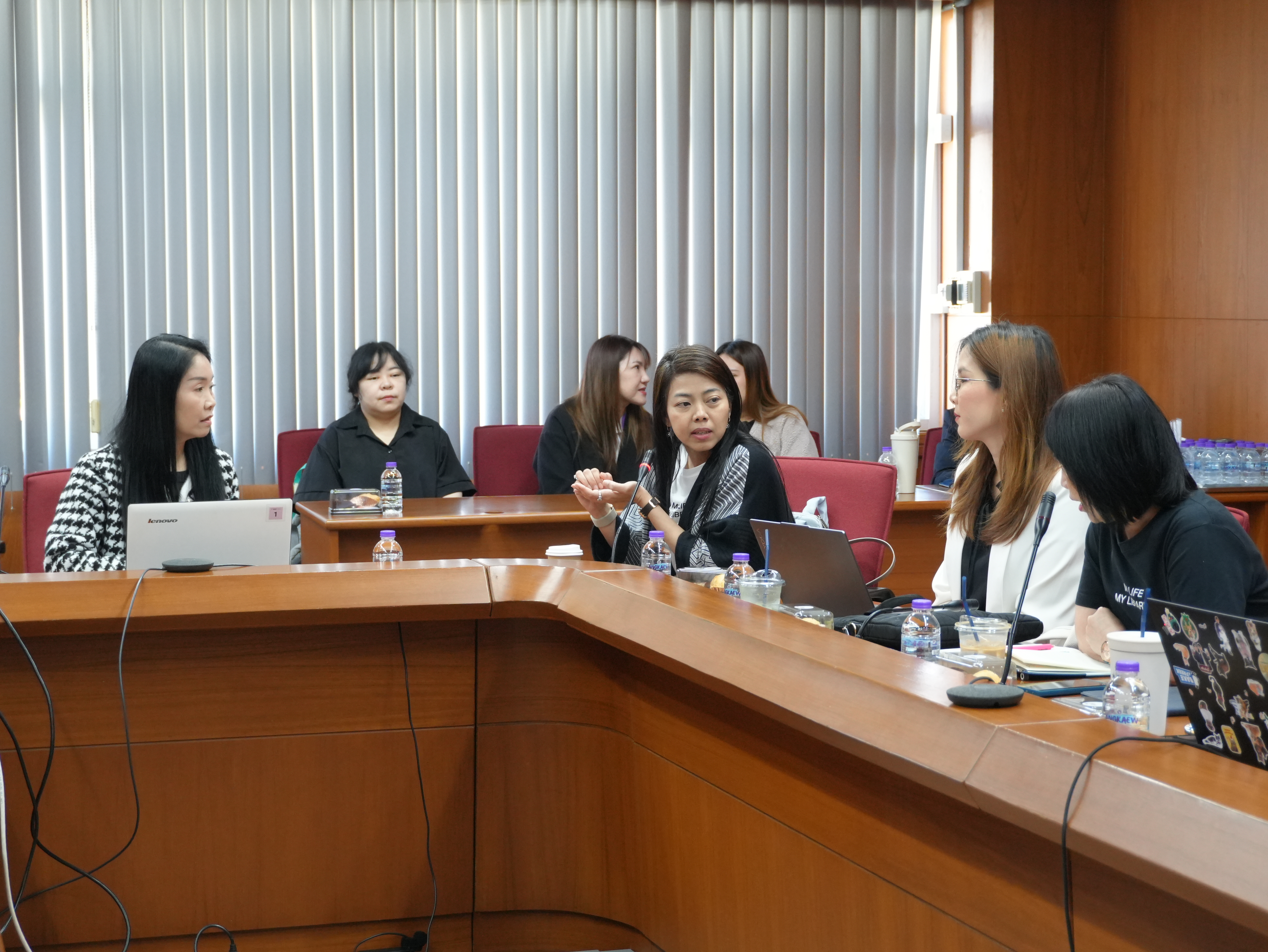 นางอรพรรณ การคนซื่อ รองผู้อำนวยการสำนักหอสมุด และนางทิพวรรณ สุขรวย รองผู้อำนวยการสำนักหอสมุด พร้อมบุคลากรสำนักหอสมุด ให้การต้อนรับพร้อมให้การบรรยาย คณะผู้บริหารและบุคลากรหอสมุดมหาวิทยาลัยธรรมศาสตร์ ในการเข้าศึกษาดูงานการนำระบบห้องสมุดอัตโนมัติ Alma ณ ห้องประชุม 3 ชั้น 5 สำนักหอสมุด ระหว่างวันที่ 26 - 27 มกราคม พ.ศ. 2569