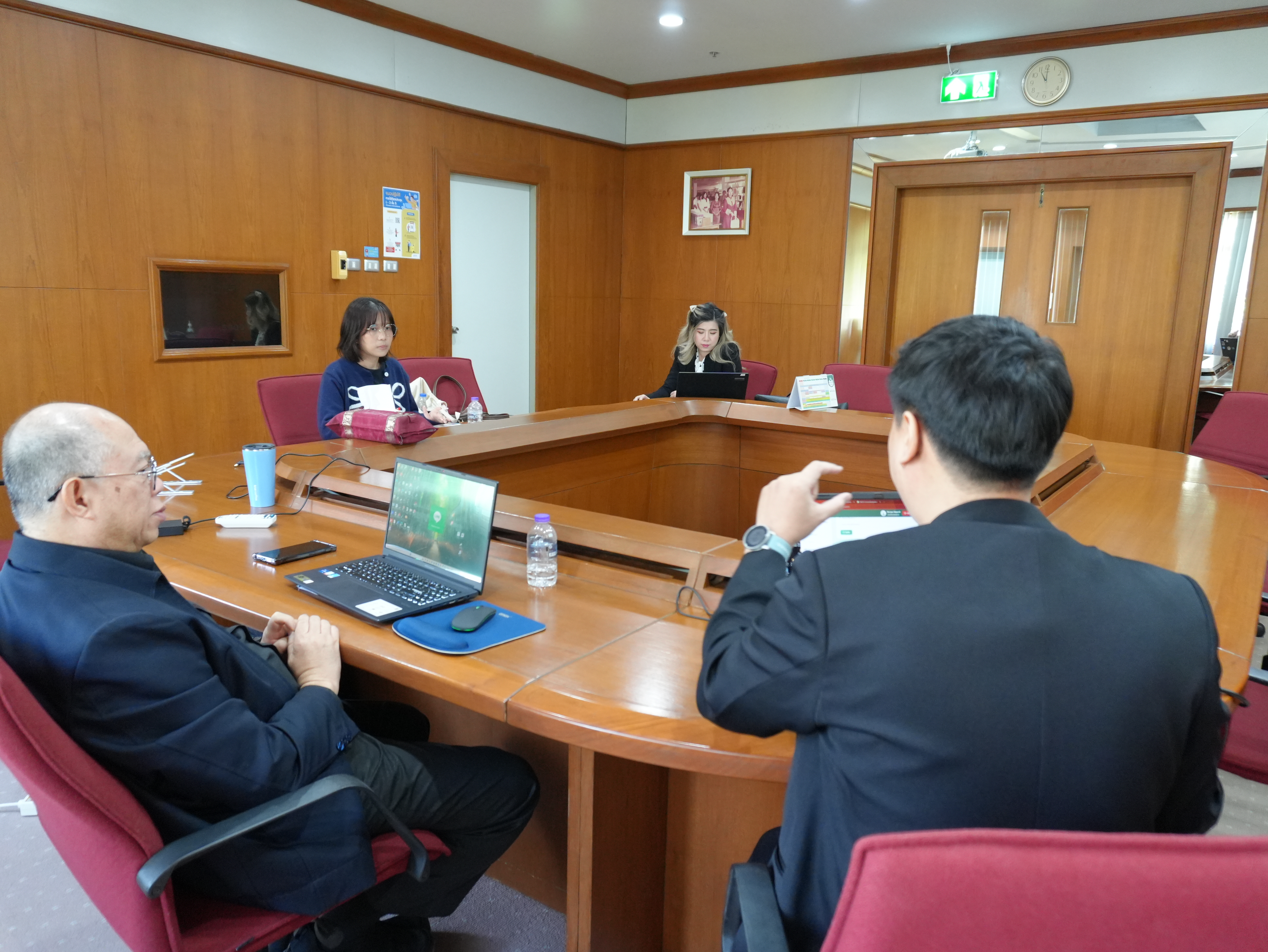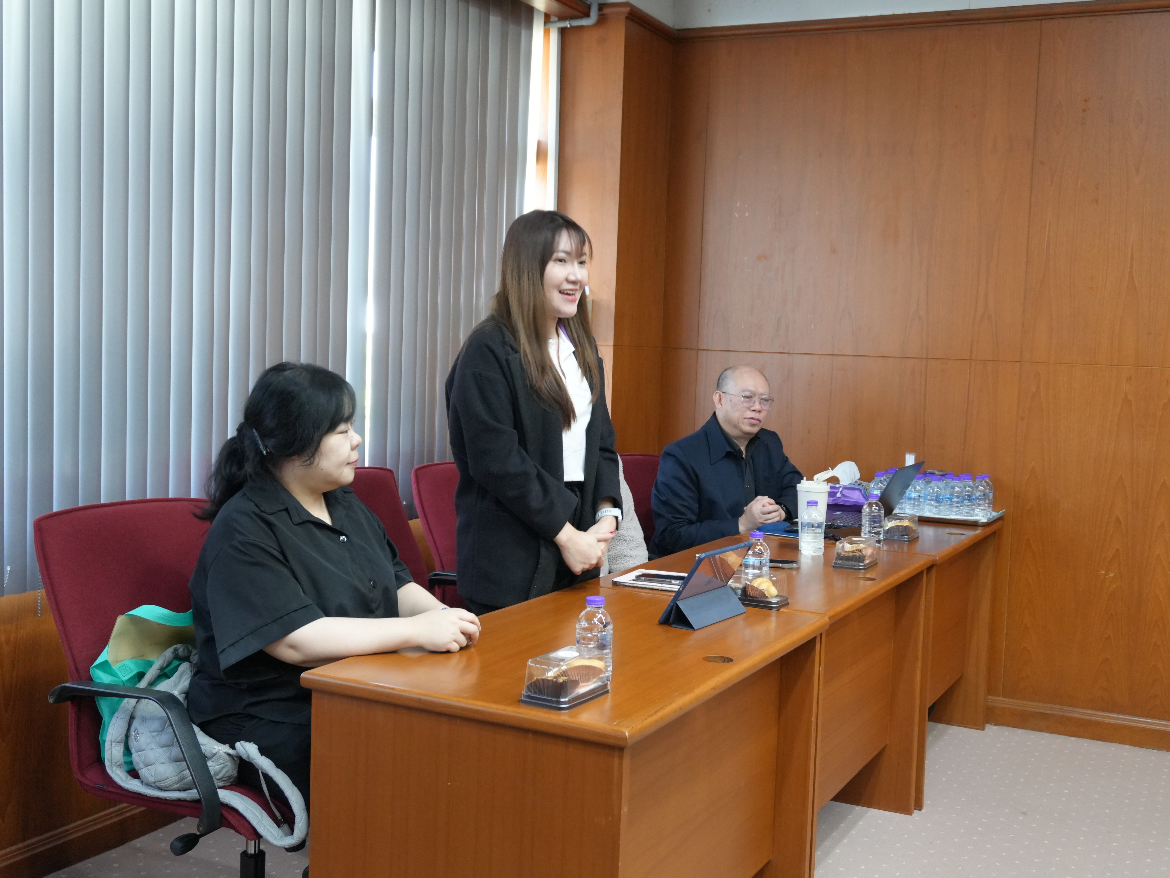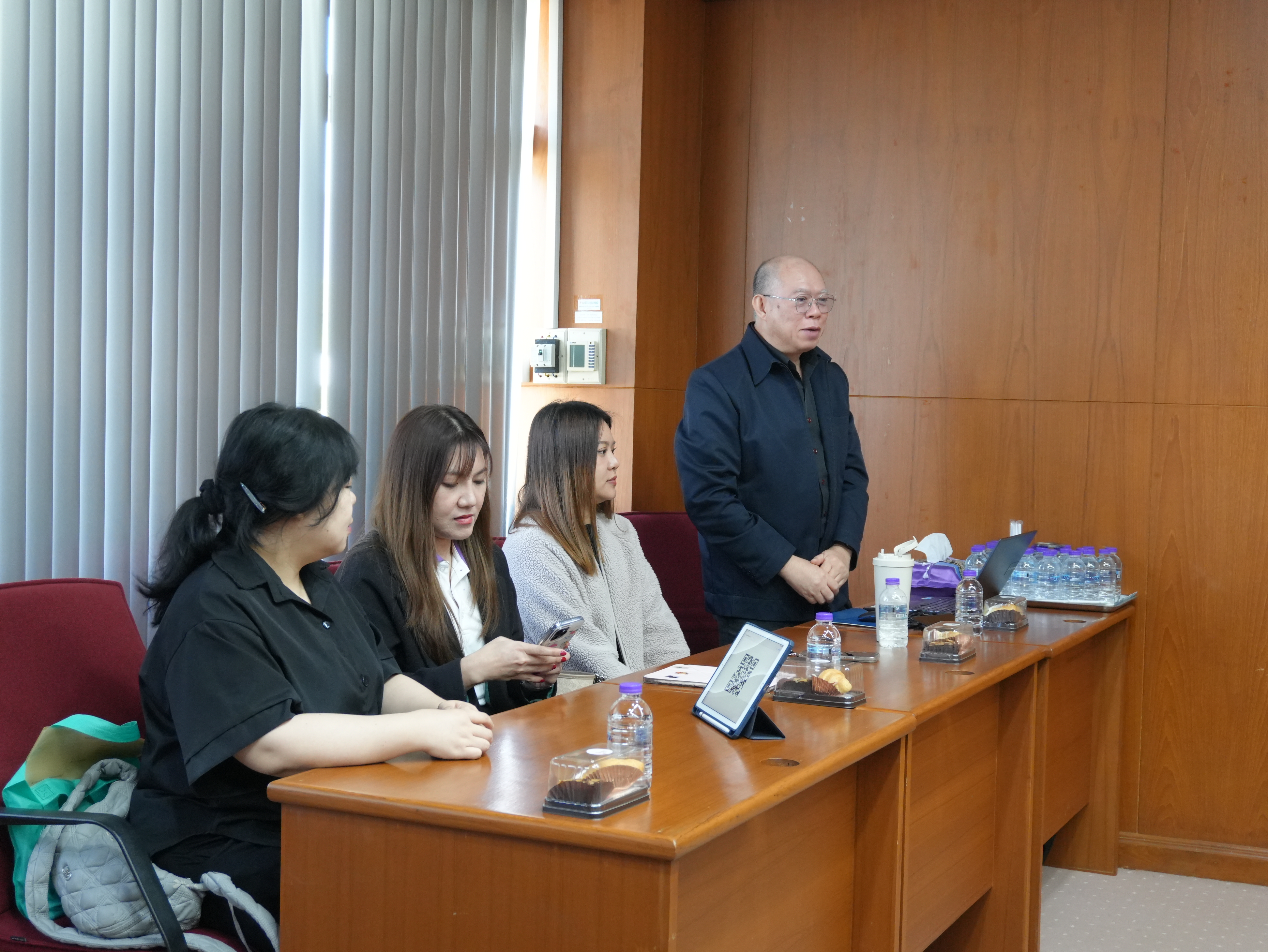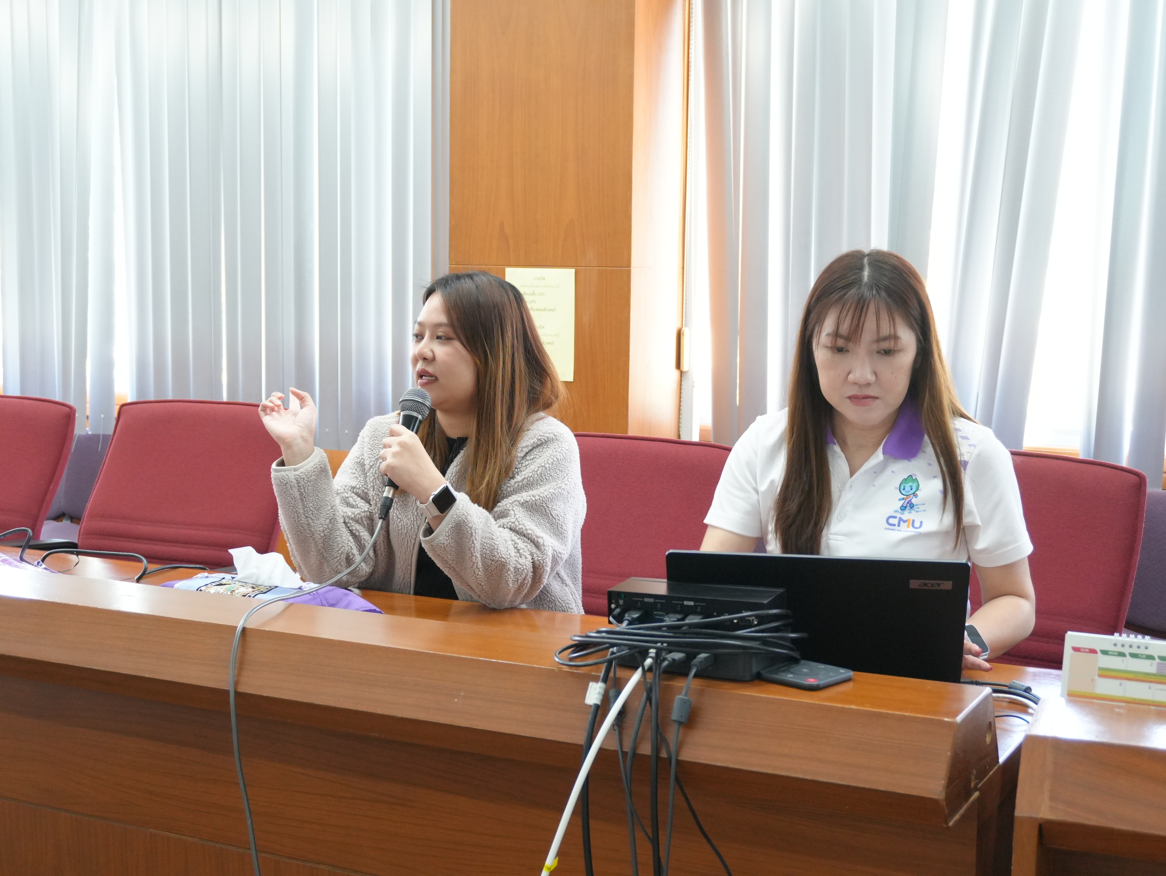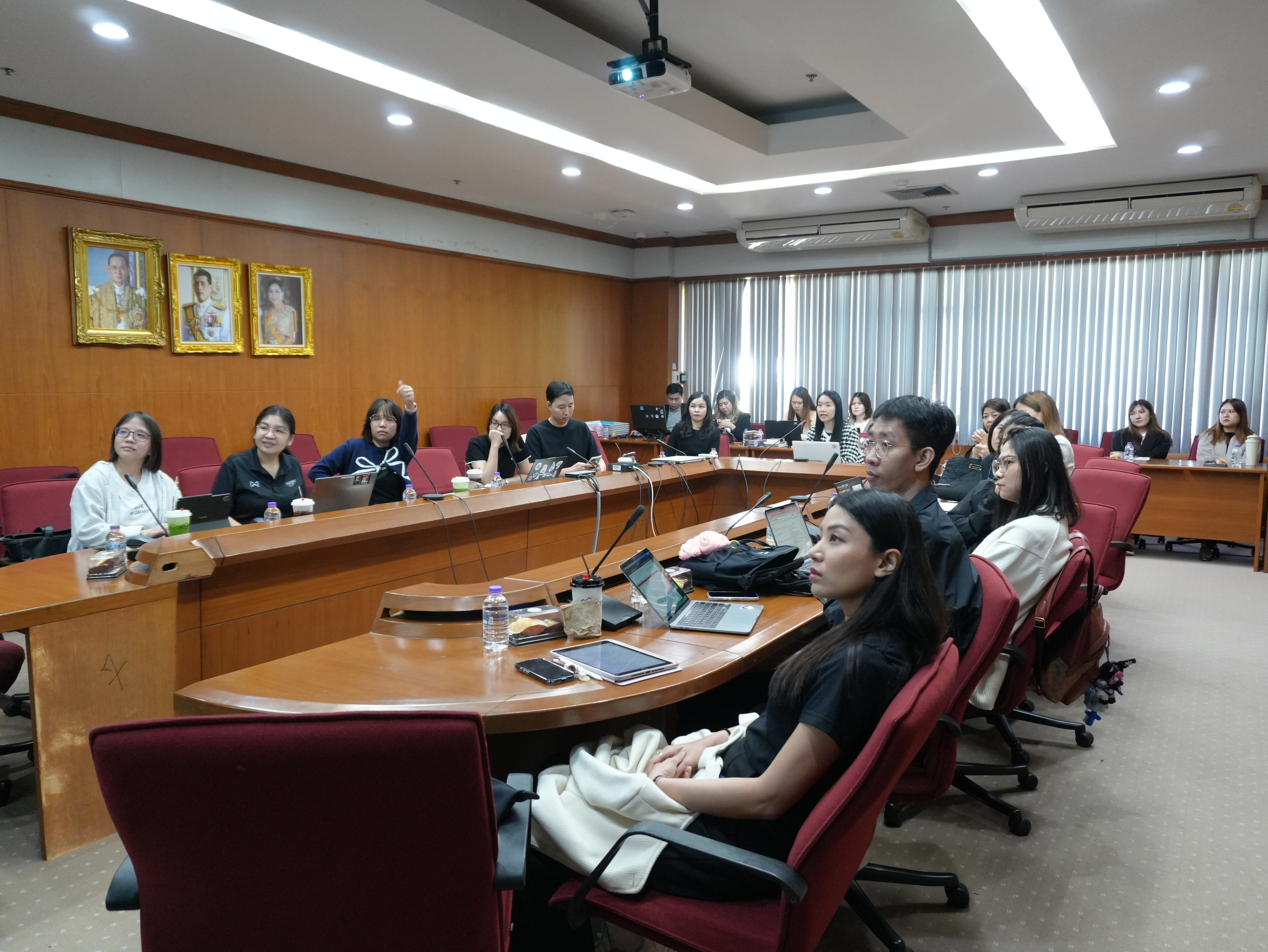 นางอรพรรณ การคนซื่อ รองผู้อำนวยการสำนักหอสมุด และนางทิพวรรณ สุขรวย รองผู้อำนวยการสำนักหอสมุด พร้อมบุคลากรสำนักหอสมุด ให้การต้อนรับพร้อมให้การบรรยาย คณะผู้บริหารและบุคลากรหอสมุดมหาวิทยาลัยธรรมศาสตร์ ในการเข้าศึกษาดูงานการนำระบบห้องสมุดอัตโนมัติ Alma ณ ห้องประชุม 3 ชั้น 5 สำนักหอสมุด ระหว่างวันที่ 26 - 27 มกราคม พ.ศ. 2569