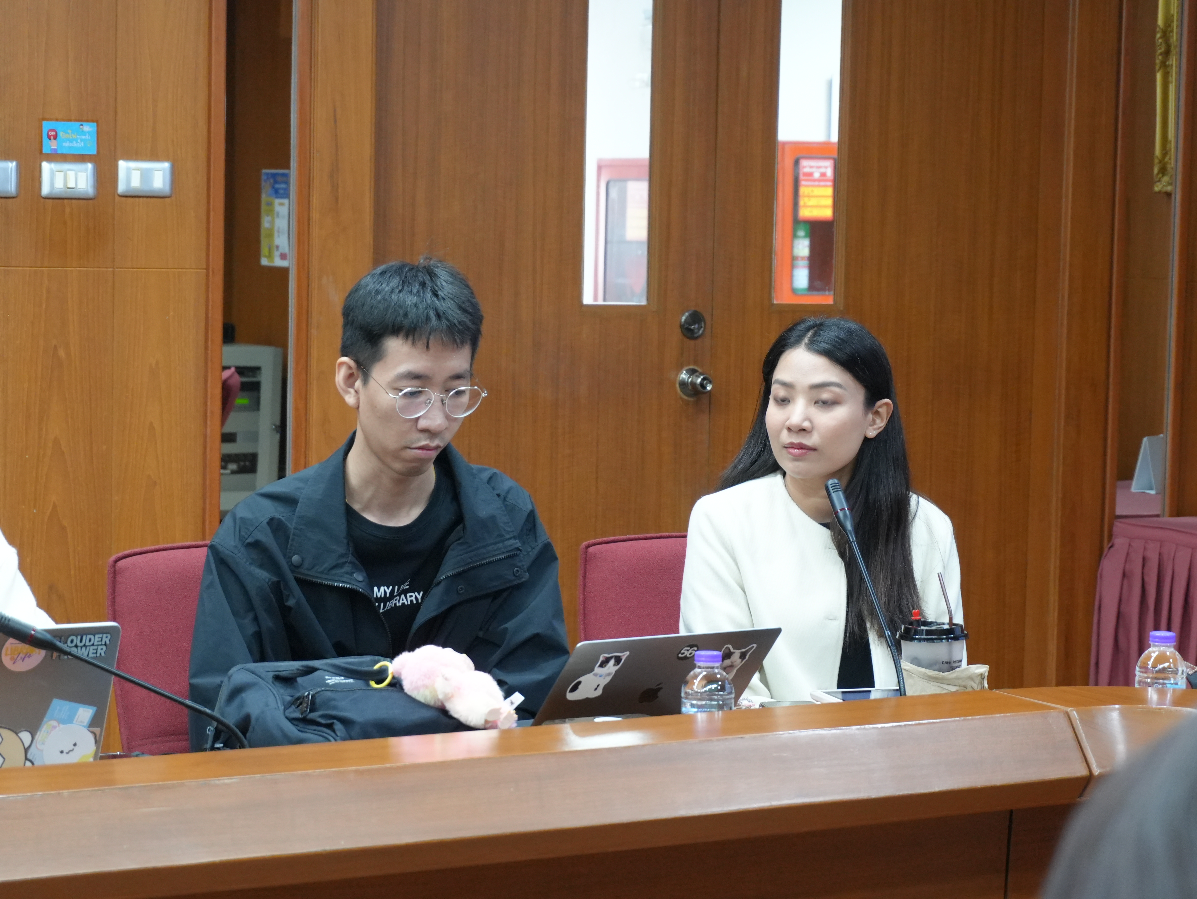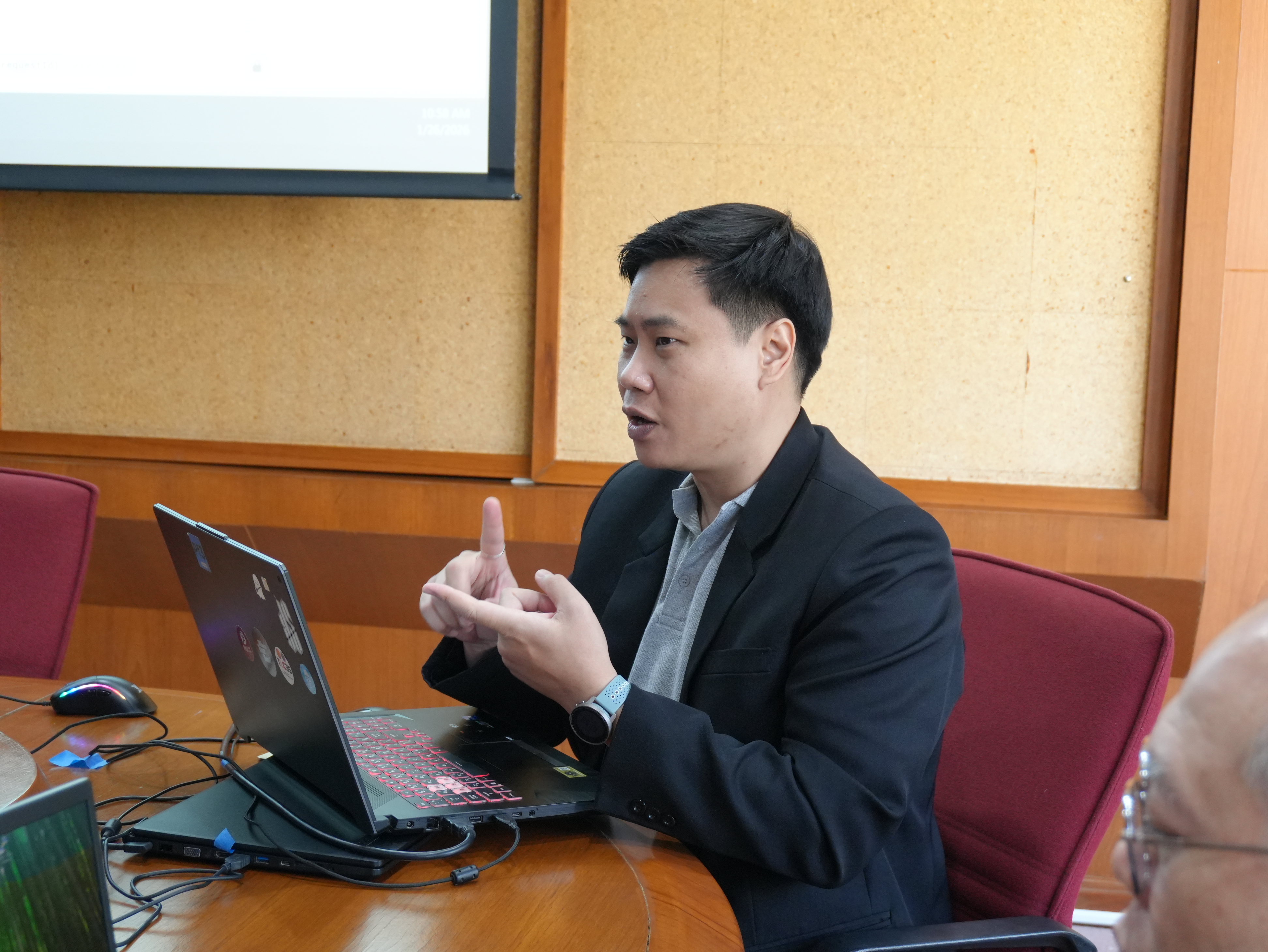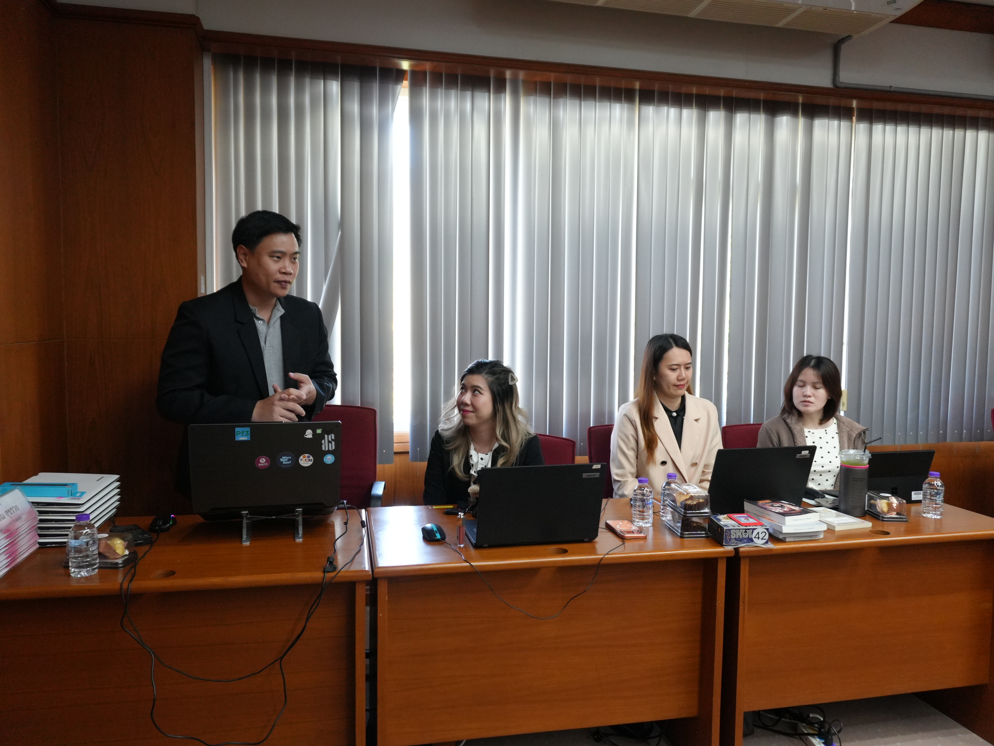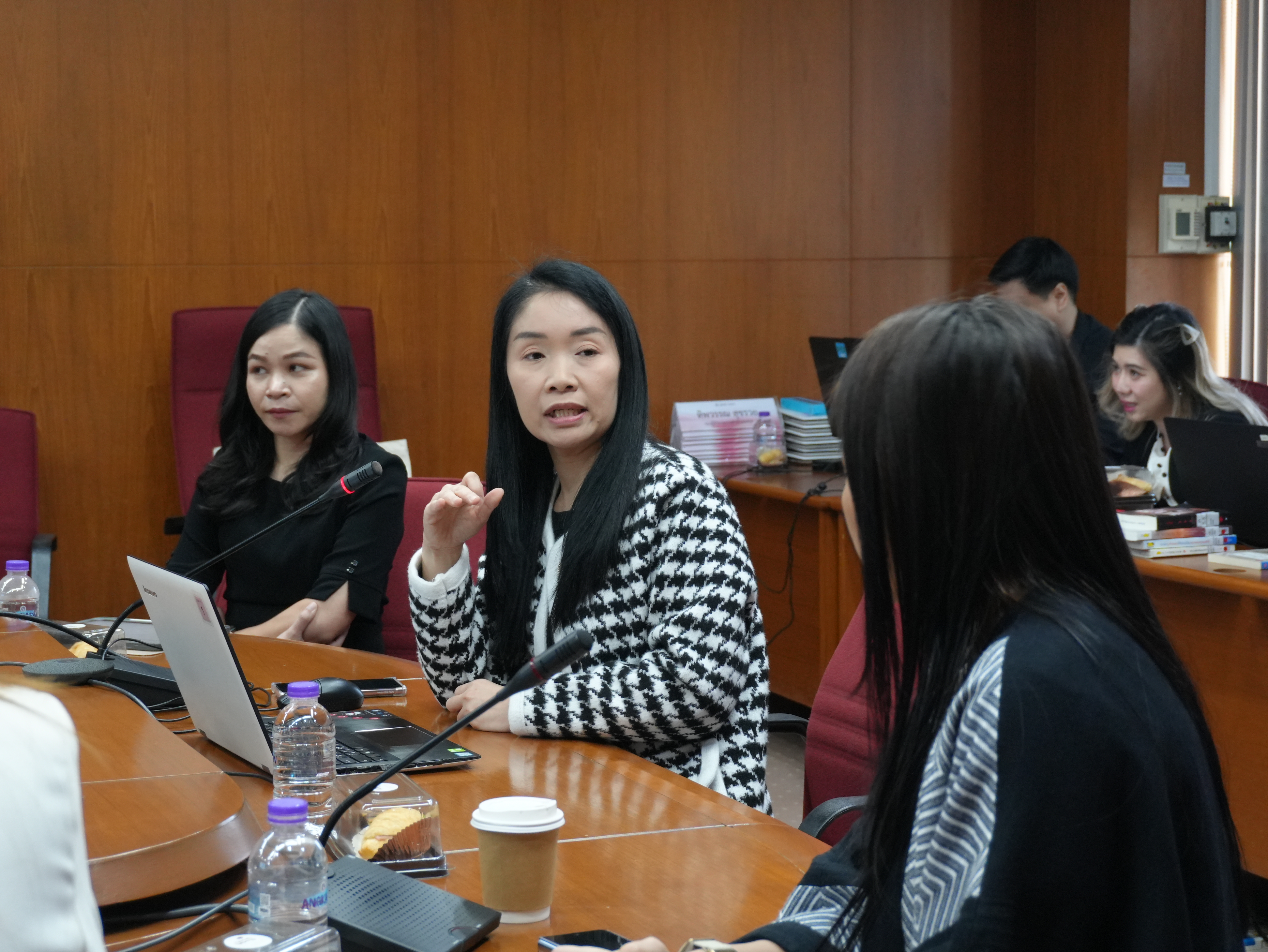นางอรพรรณ การคนซื่อ รองผู้อำนวยการสำนักหอสมุด และนางทิพวรรณ สุขรวย รองผู้อำนวยการสำนักหอสมุด พร้อมบุคลากรสำนักหอสมุด ให้การต้อนรับพร้อมให้การบรรยาย คณะผู้บริหารและบุคลากรหอสมุดมหาวิทยาลัยธรรมศาสตร์ ในการเข้าศึกษาดูงานการนำระบบห้องสมุดอัตโนมัติ Alma ณ ห้องประชุม 3 ชั้น 5 สำนักหอสมุด ระหว่างวันที่ 26 - 27 มกราคม พ.ศ. 2569