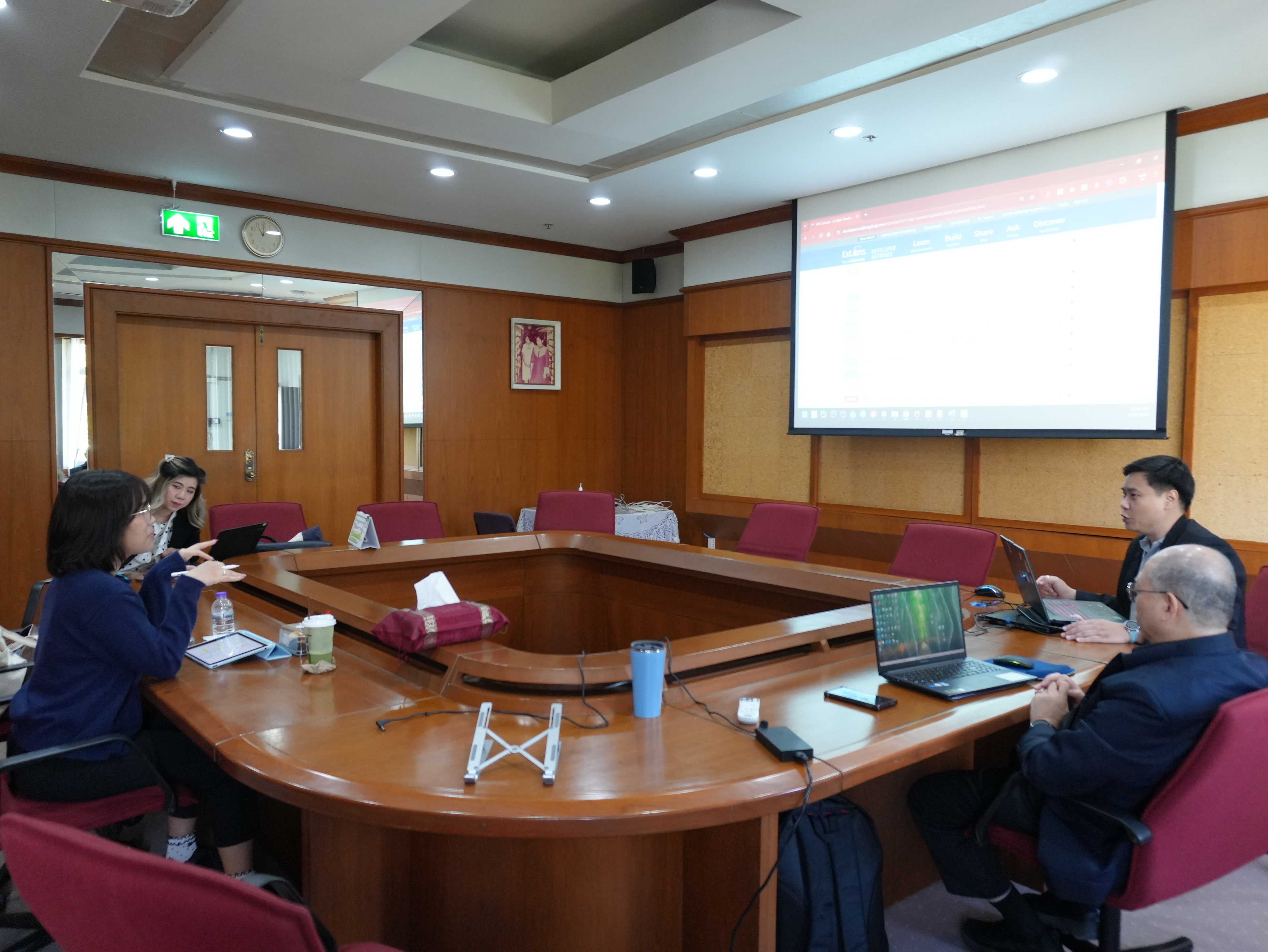 สำนักหอสมุดให้การต้อนรับคณะผู้บริหารและบุคลากรหอสมุดมหาวิทยาลัยธรรมศาสตร์ ในการเข้าศึกษาดูงานการนำระบบห้องสมุดอัตโนมัติ Alma