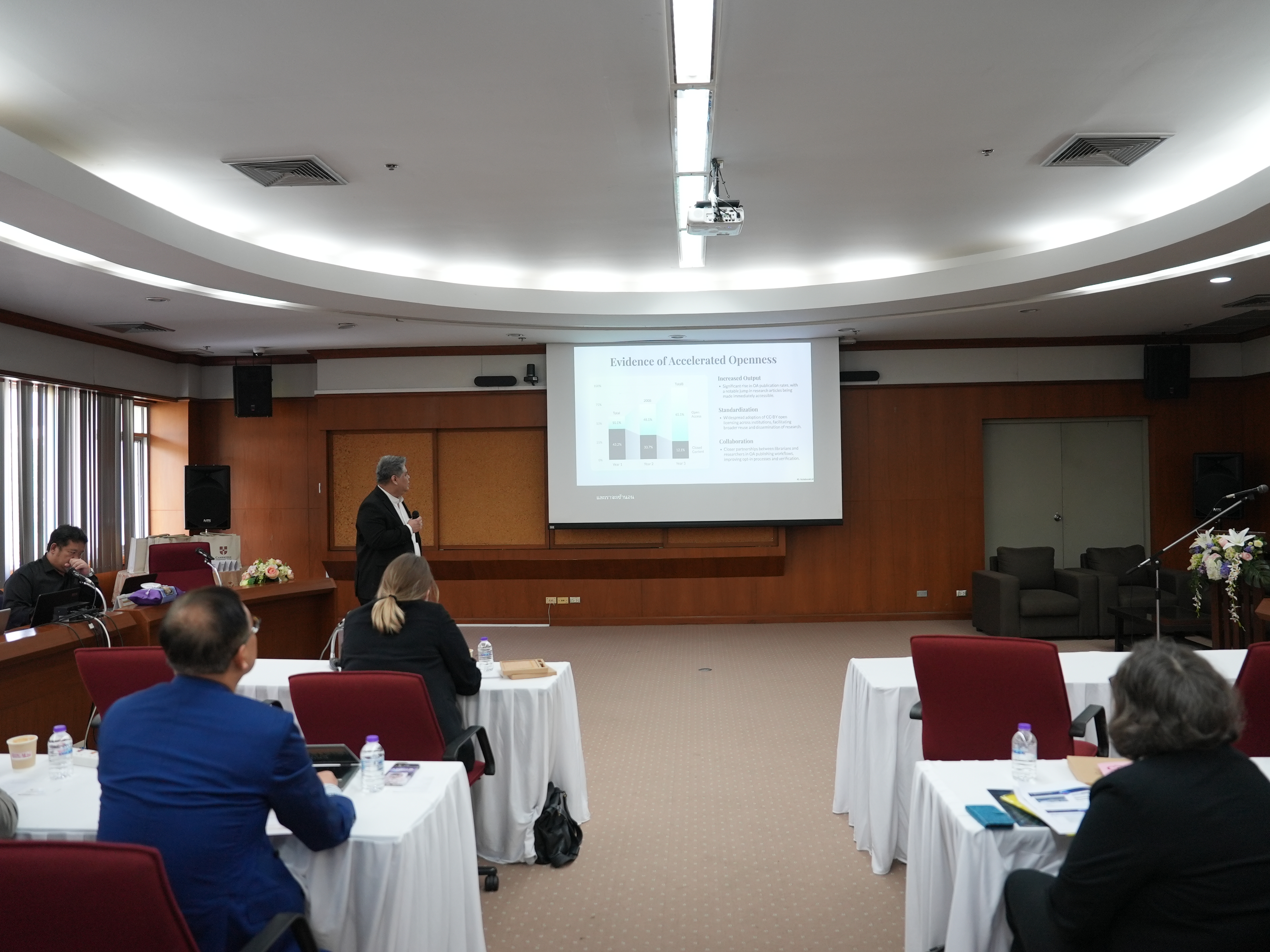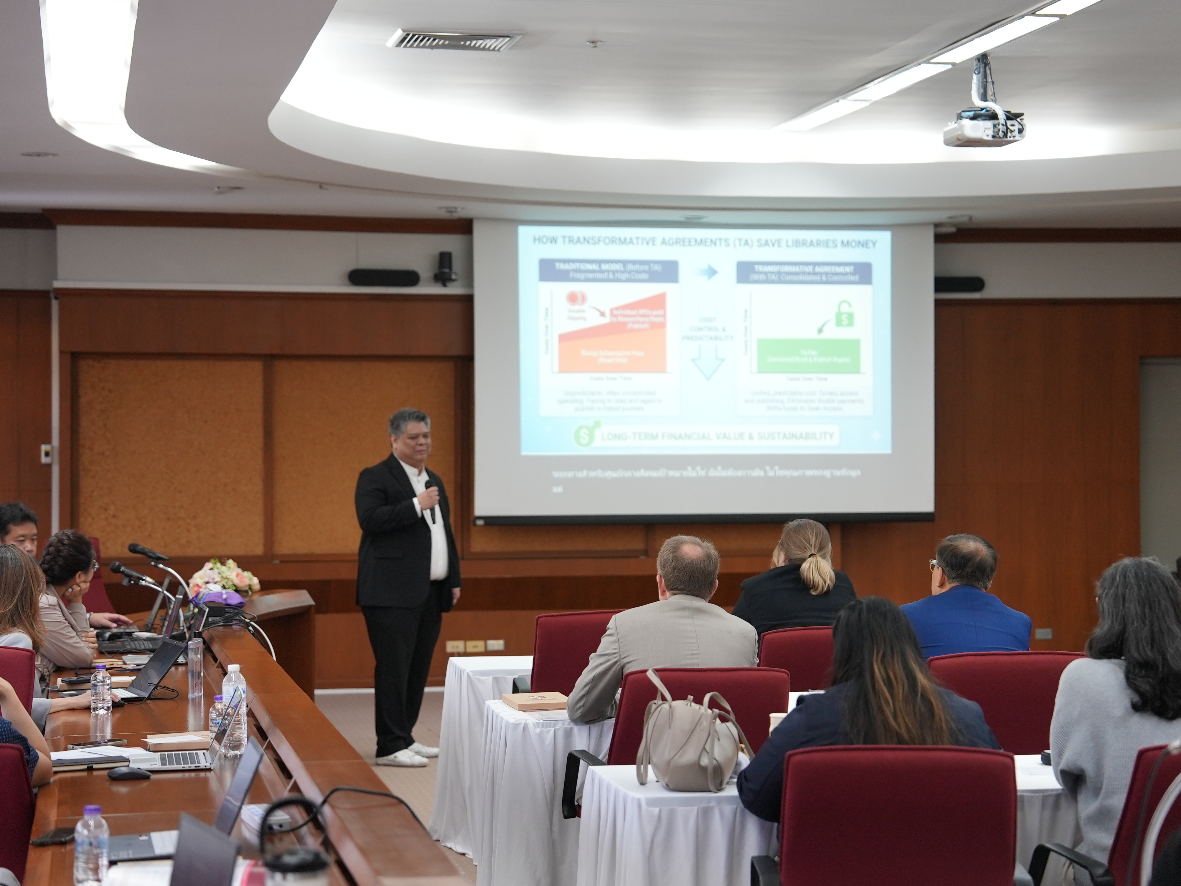 นายปราชญ์ สงวนศักดิ์ ผู้อำนวยการสำนักหอสมุด กล่าวต้อนรับ บรรณารักษ์และผู้อำนวยการห้องสมุดจากประเทศในเอเชียตะวันออกและตะวันออกเฉียงใต้ ตลอดจน Cambridge University Press Asia และให้การบรรยายพิเศษ หัวข้อ "Chiang Mai University's Experience with Transformative Agreements and Open Research: Critical Challenges, Lessons Learned, and Future Directions" ในการจัดงาน Cambridge University Press Asia Librarians Day (CLD) และการประชุม Cambridge Academic Libraries Advisory Board (CALAB) จัดโดย Cambridge University Press ร่วมกับสำนักหอสมุด มหาวิทยาลัยเชียงใหม่ กิจกรรมประกอบด้วย การบรรยายพิเศษ หัวข้อ "The future of Publishing: The evolution of open research, ebooks models, and supporting publishing for future researchers" โดยมี Mr. Chris Bennett, Global Commercial Director, Cambridge University Press, Academic และ Mr Robert Gerrity, University Librarian, Monash University เป็นวิทยากร การอภิปรายเพื่อเสริมสร้างศักยภาพห้องสมุดและสร้างความไว้วางใจ ตลอดจนความสำเร็จในการเจรจาในอนาคต และการประชุมแลกเปลี่ยนความคิดเห็นระหว่าง Cambridge University Press กับพันธมิตรห้องสมุด ตลอดจนเยี่ยมชมบริการสำนักหอสมุด ณ ห้องประชุม 1 ชั้น 5 สำนักหอสมุด ระหว่างวันที่ 4 - 5 กุมภาพันธ์ พ.ศ. 2569