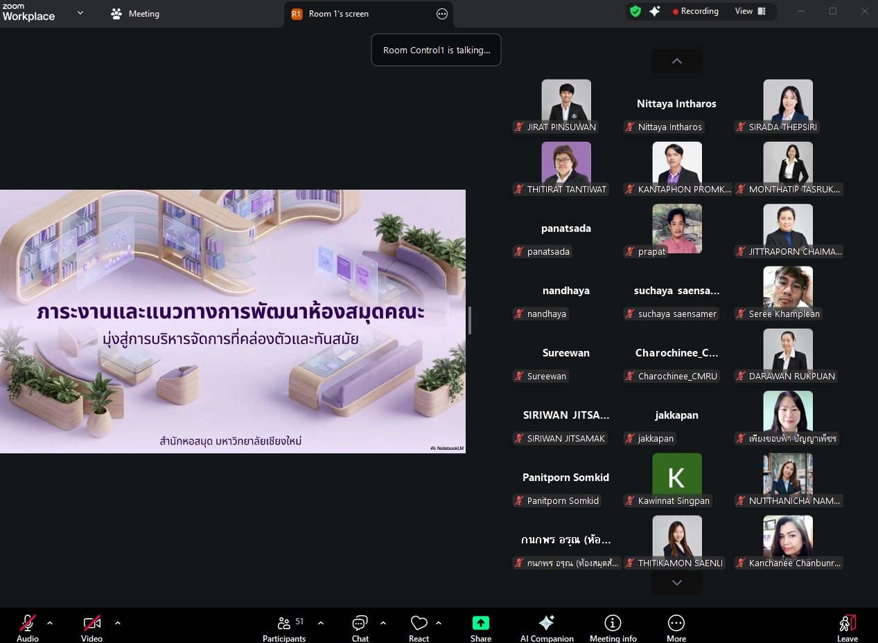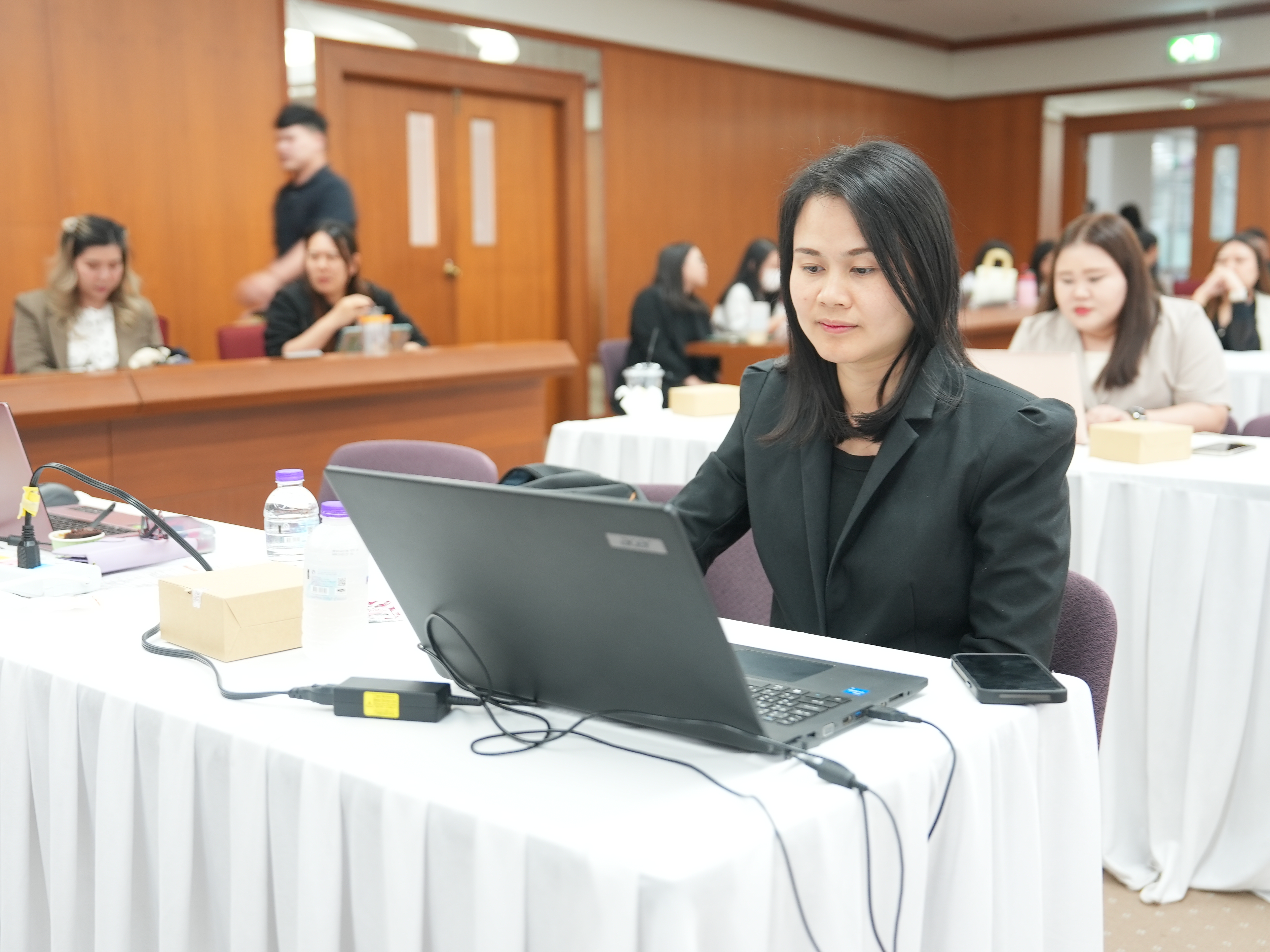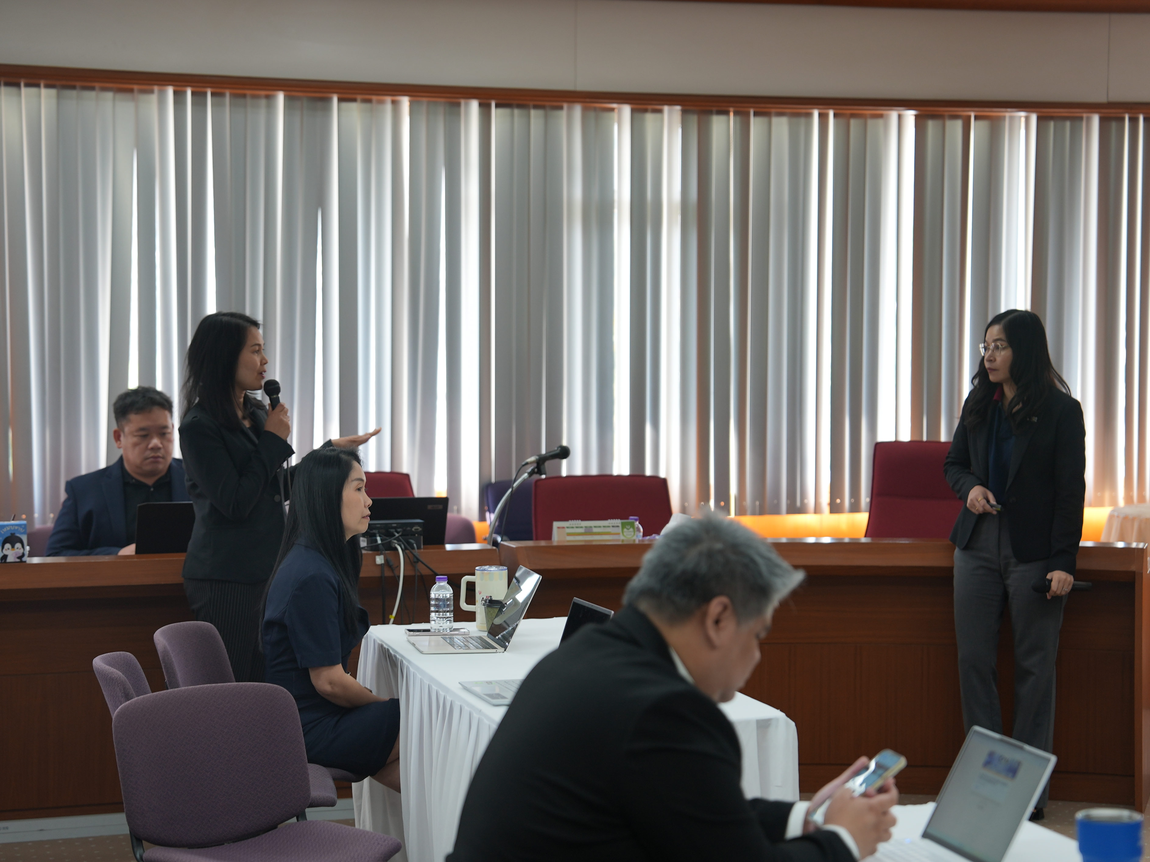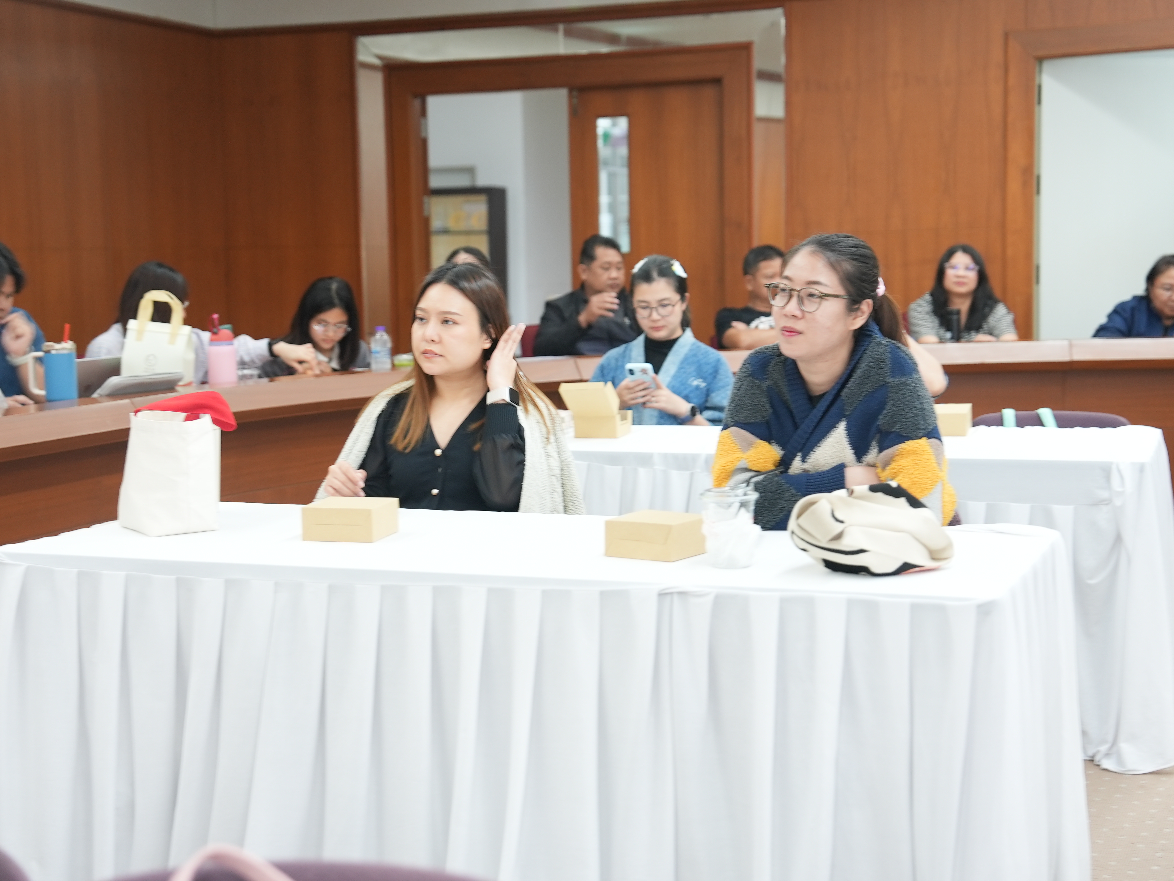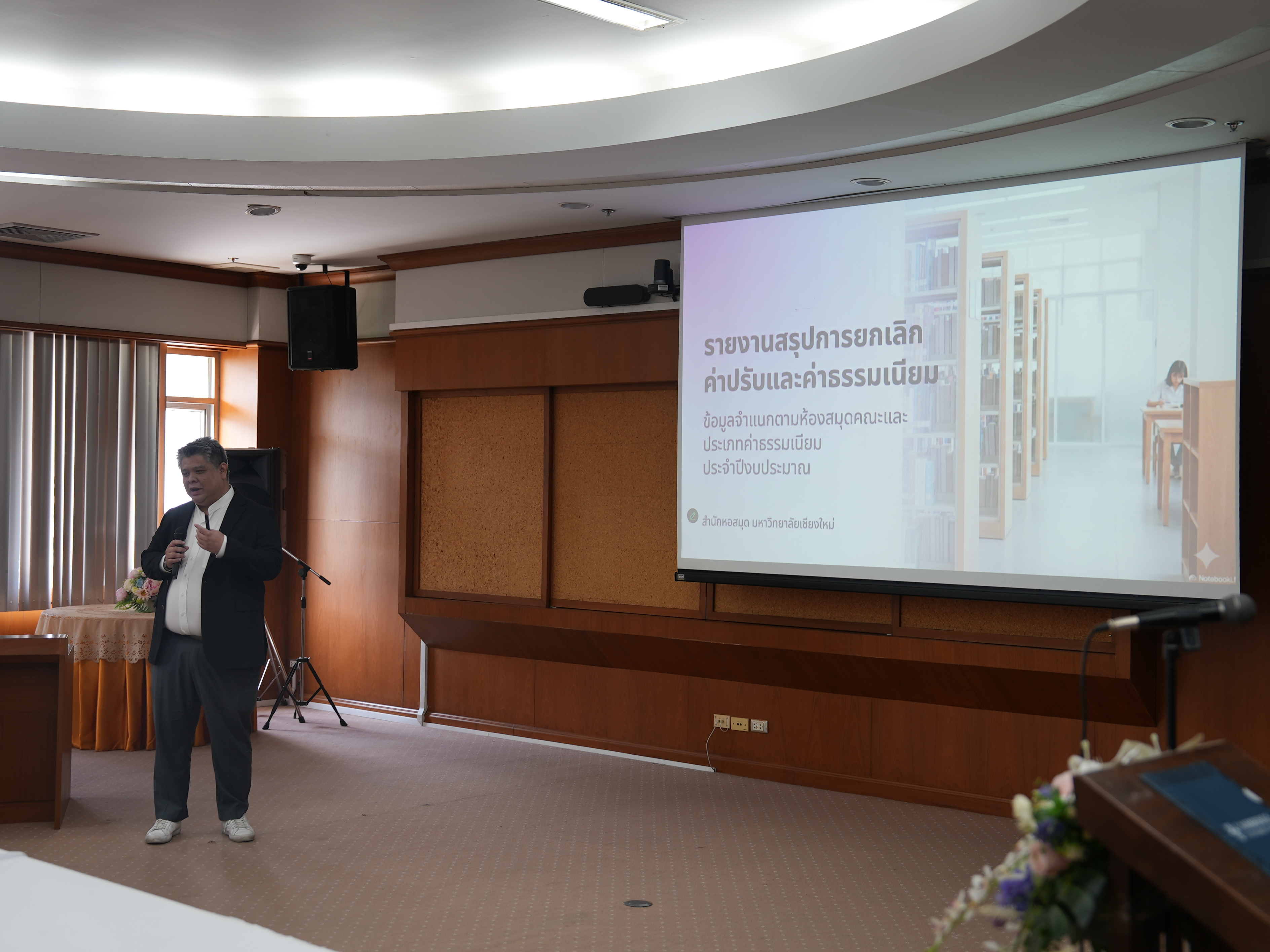 นางสาวฐิติรัตน์ ตันติวัฒน์ ผู้ช่วยผู้อำนวยการสำนักหอสมุด อธิบายรายละเอียดเกี่ยวกับระเบียบมหาวิทยาลัยเชียงใหม่ว่าด้วยการปฏิบัติงานและการลา พ.ศ. 2568 รวมถึงสิทธิประโยชน์ด้านประกันสุขภาพ