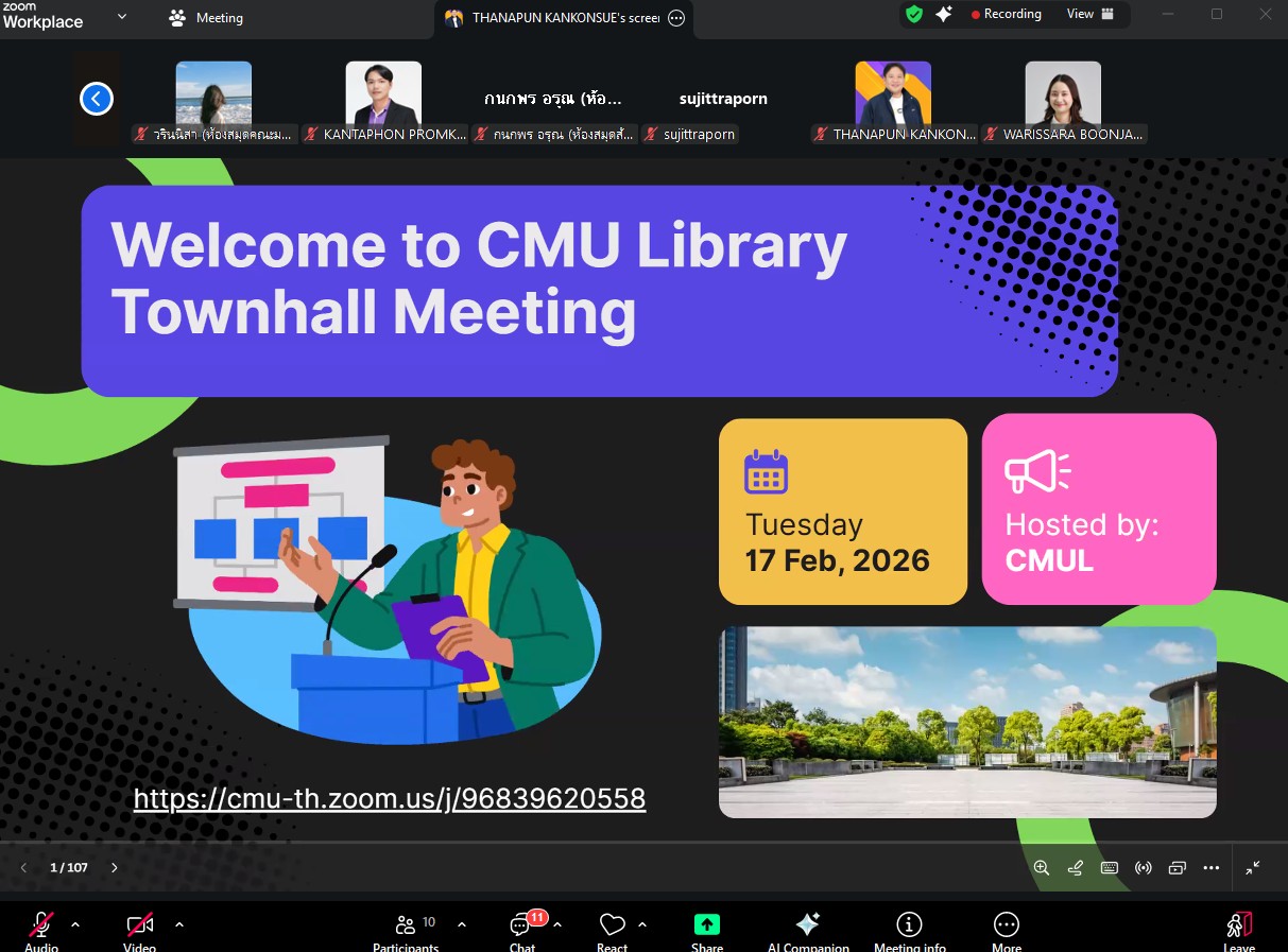 โดยเปิดโอกาสให้บุคลากรได้ซักถามและเสนอแนะแนวทางปรับปรุงการดำเนินงานโดยตรงต่อผู้บริหาร ซึ่งได้รับความสนใจและมีการแลกเปลี่ยนประสบการณ์อย่างกว้างขวาง ถือเป็นก้าวสำคัญในการสร้างความเข้าใจที่ตรงกัน เพื่อเป้าหมายในการพัฒนาสำนักหอสมุดให้เป็นองค์กรแห่งการเรียนรู้ชั้นนำต่อไป ณ ห้องประชุม 1 ชั้น 5 สำนักหอสมุด และผ่านระบบออนไลน์ Zoom เมื่อวันที่ 17 กุมภาพันธ์ พ.ศ. 2569