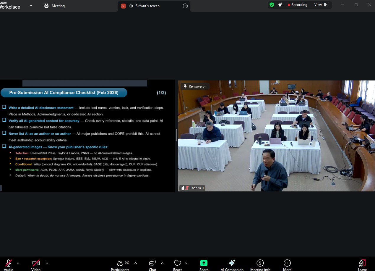 การบรรยายเรื่อง AI กับงานวิจัย และจริยธรรมการใช้