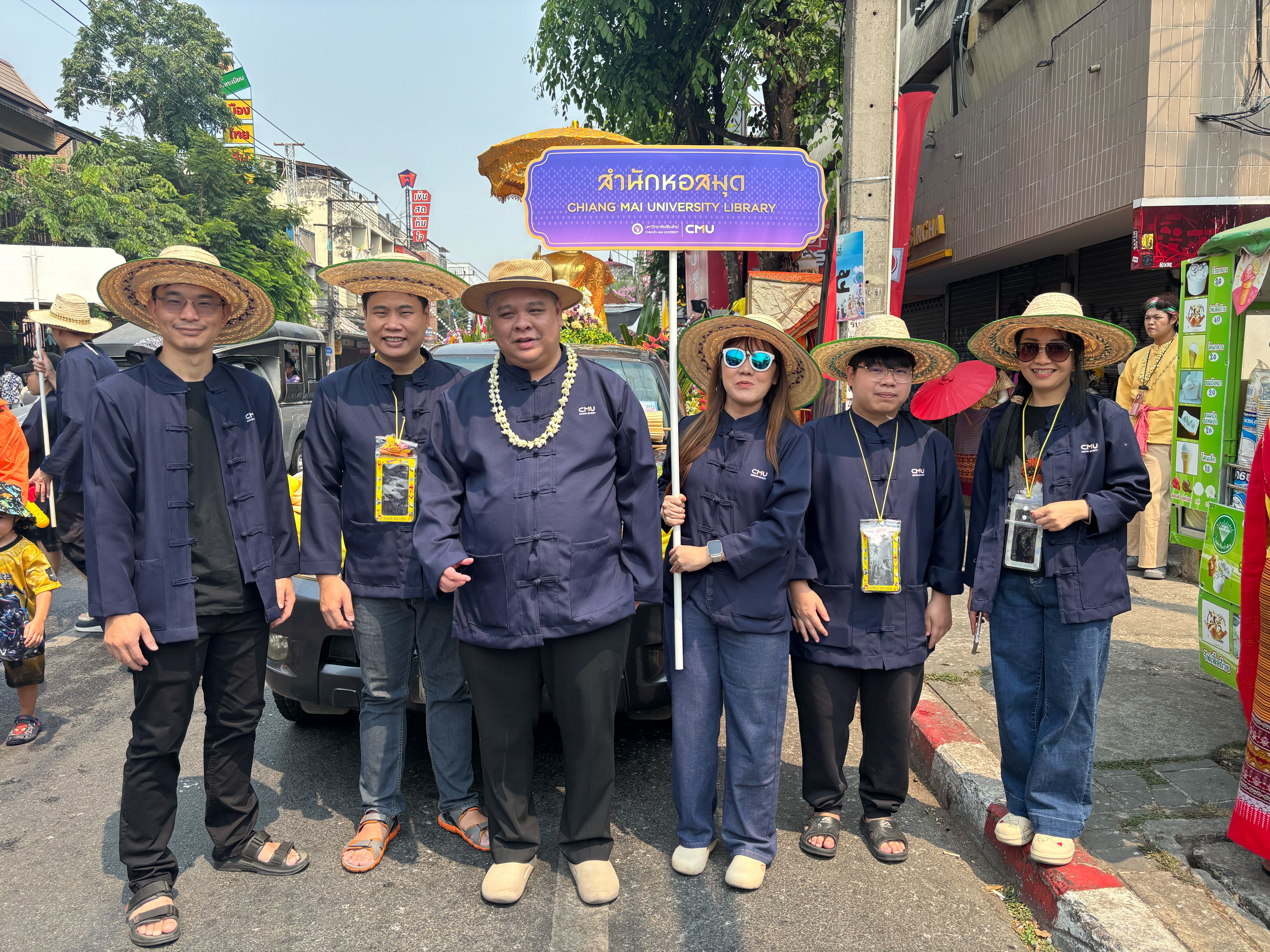 นายปราชญ์ สงวนศักดิ์ ผู้อำนวยการสำนักหอสมุด คณะผู้บริหาร พร้อมบุคลากรสำนักหอสมุด ร่วมเดินขบวนสืบสานประเพณีปี๋ใหม่เมืองล้านนา อัญเชิญพระพุทธรูปสำคัญประจำมหาวิทยาลัย “พระพุทธพิงคนคราภิมงคล” ประดิษฐานบนรถบุษบก ในขบวนรถบุษบกพระพุทธรูปสำคัญของจังหวัดเชียงใหม่ สืบสานประเพณีปี๋ใหม่เมืองล้านนา โดยขบวนมหาวิทยาลัยเชียงใหม่อยู่ลำดับที่ 12 เคลื่อนขบวนจากสะพานนวรัฐ ผ่านประตูท่าแพ ไปยังวัดพระสิงห์วรมหาวิหาร จังหวัดเชียงใหม่ เมื่อวันที่ 13 เมษายน พ.ศ. 2569