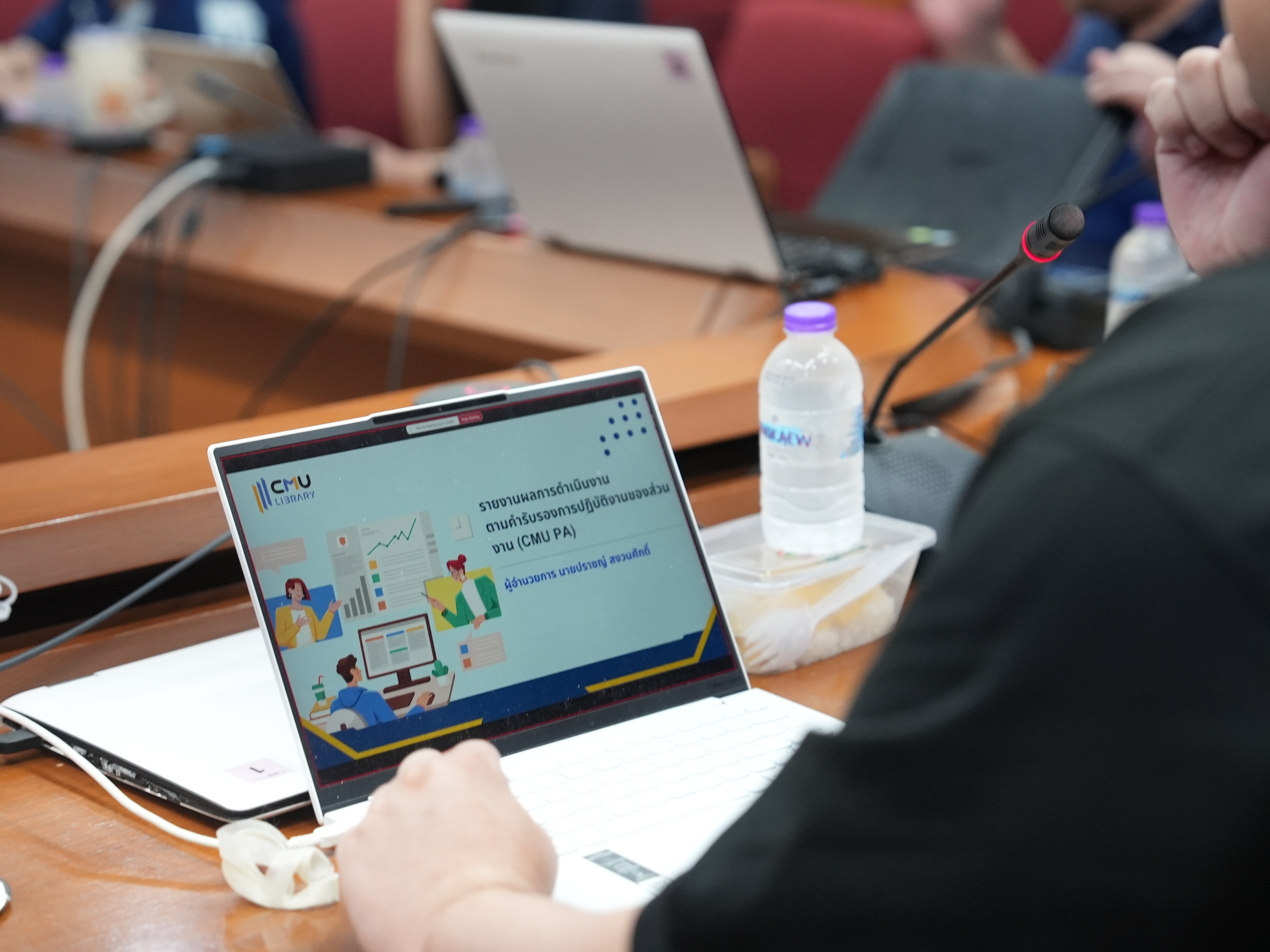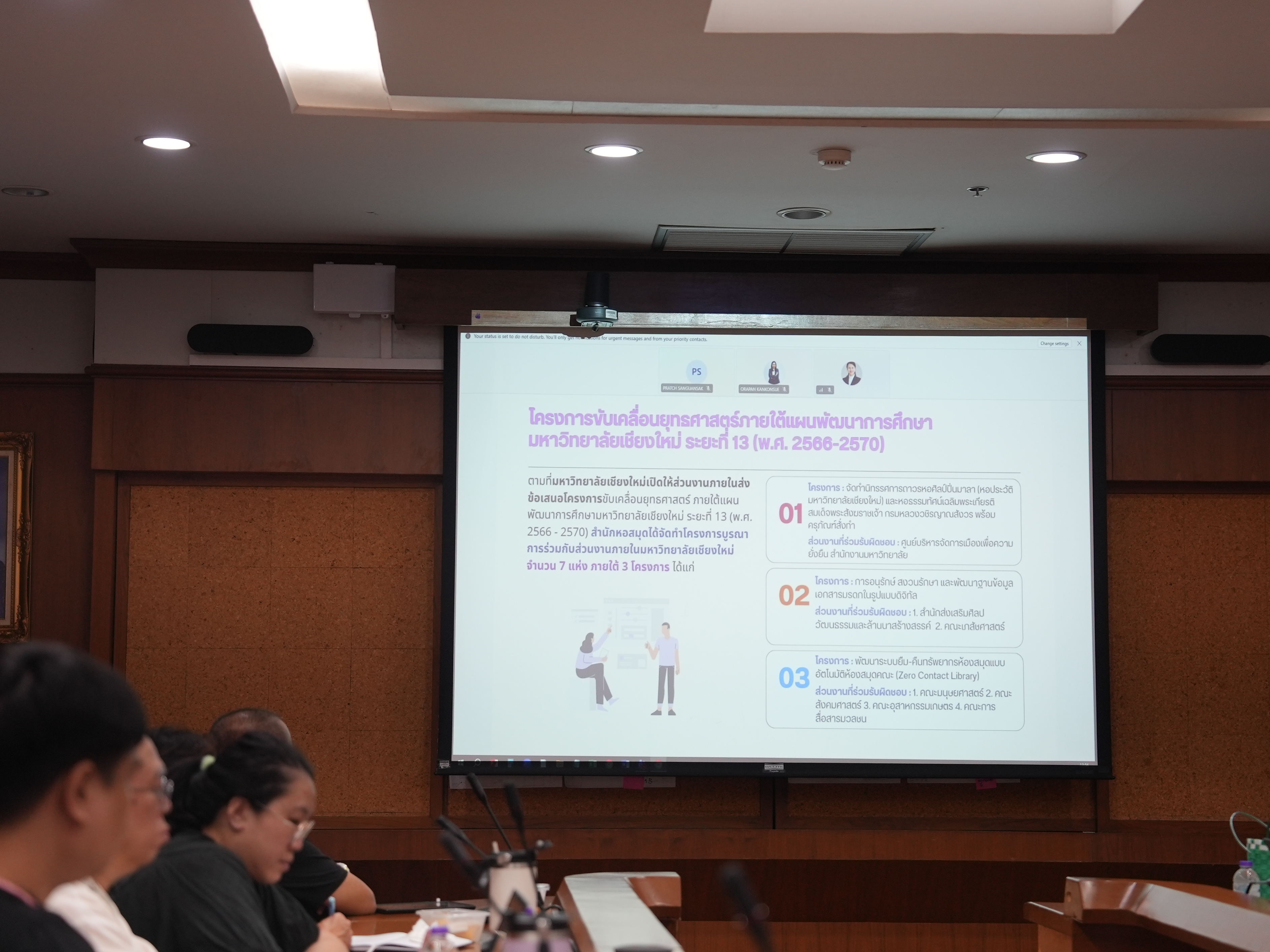 สำนักหอสมุดจัดกิจกรรมผู้บริหารสัญจรฝ่าย ประจำปี 2569 ในโครงการสื่อสารทิศทางองค์กร เพื่อสร้างการรับรู้และความเข้าใจภายในองค์กรสำนักหอสมุด นำโดย นายปราชญ์ สงวนศักดิ์ ผู้อำนวยการสำนักหอสมุด พร้อมคณะผู้บริหารสำนักหอสมุด พบปะบุคลากรฝ่ายเทคโนโลยีสารสนเทศห้องสมุด เพื่อสื่อสารนโยบายและทิศทางองค์กร ประจำปี 2569 ให้บุคลากรมีความเข้าใจที่ถูกต้องและชัดเจน เพื่อเป็นเวทีแลกเปลี่ยนข้อเสนอแนะ ปัญหาและอุปสรรคในการปฏิบัติงานระหว่างผู้บริหารและบุคลากร ตลอดจนเพื่อเสริมสร้างความสัมพันธ์ที่ดีและความรู้สึกส่วนร่วมของบุคลากรภายในองค์กร ณ ห้องประชุม 3 ชั้น 5 สำนักหอสมุด เมื่อวันที่ 23 เมษายน พ.ศ. 2569