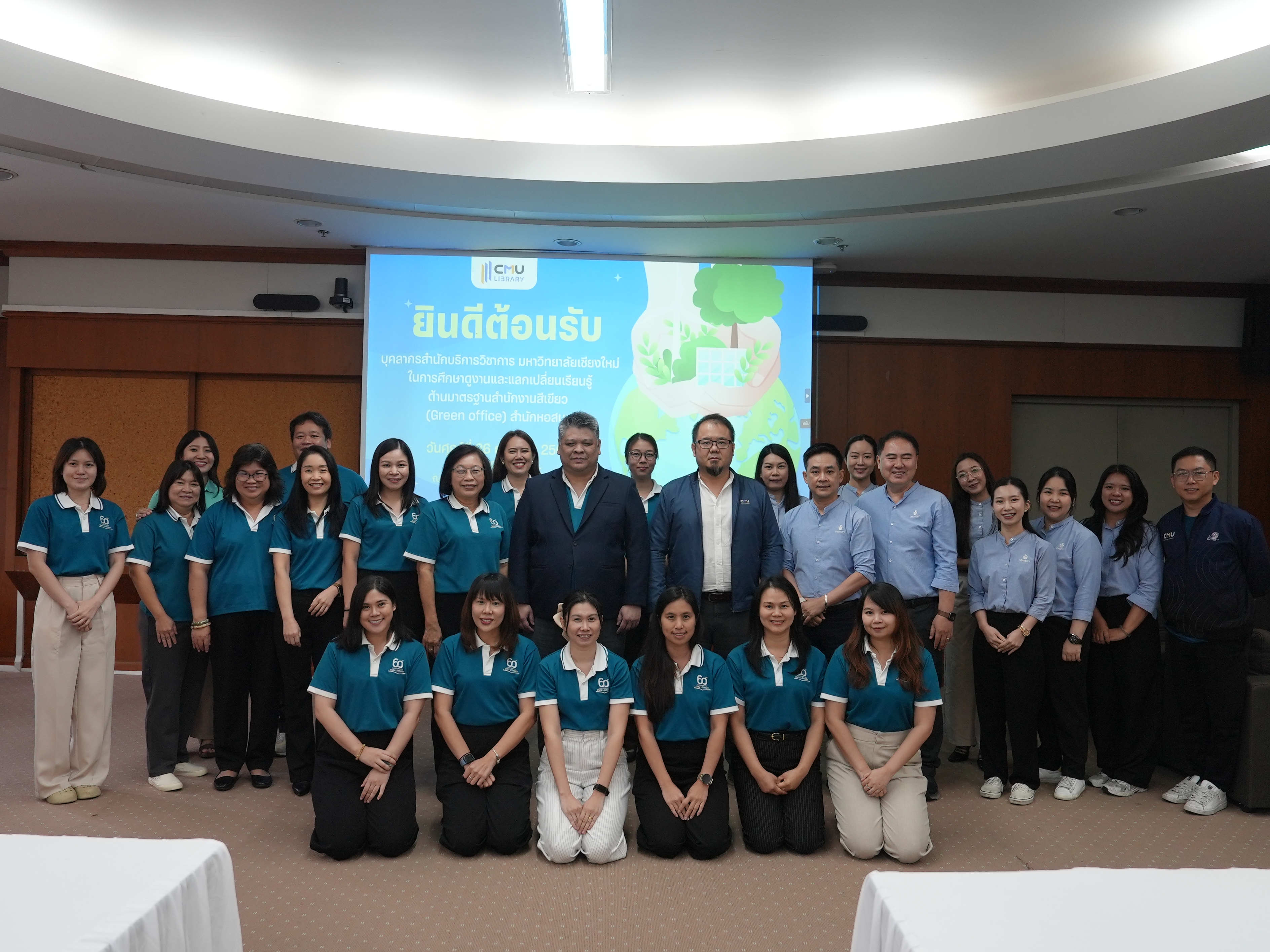 นายปราชญ์ สงวนศักดิ์ ผู้อำนวยการสำนักหอสมุด คณะผู้บริหาร พร้อมคณะทำงานบริหารจัดการสิ่งแวดล้อมตามระบบมาตรฐานด้านสิ่งแวดล้อมสำนักหอสมุด ให้การต้อนรับและให้การบรรยายคณะผู้บริหารและบุคลากร สำนักบริการวิชาการ มหาวิทยาลัยเชียงใหม่ ในการเข้าศึกษาดูงานและแลกเปลี่ยนเรียนด้านมาตรฐานสำนักงานสีเขียว (Green Office) ณ ห้องประชุม 1 ชั้น 5 สำนักหอสมุด เมื่อวันที่ 26 กันยายน พ.ศ. 2568